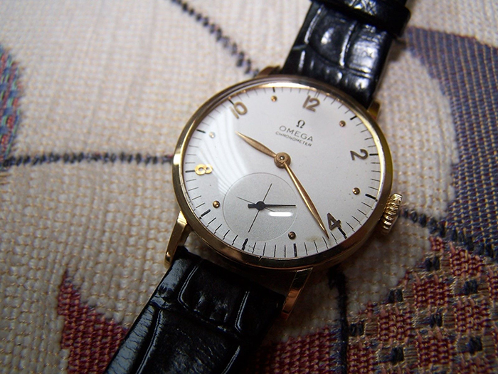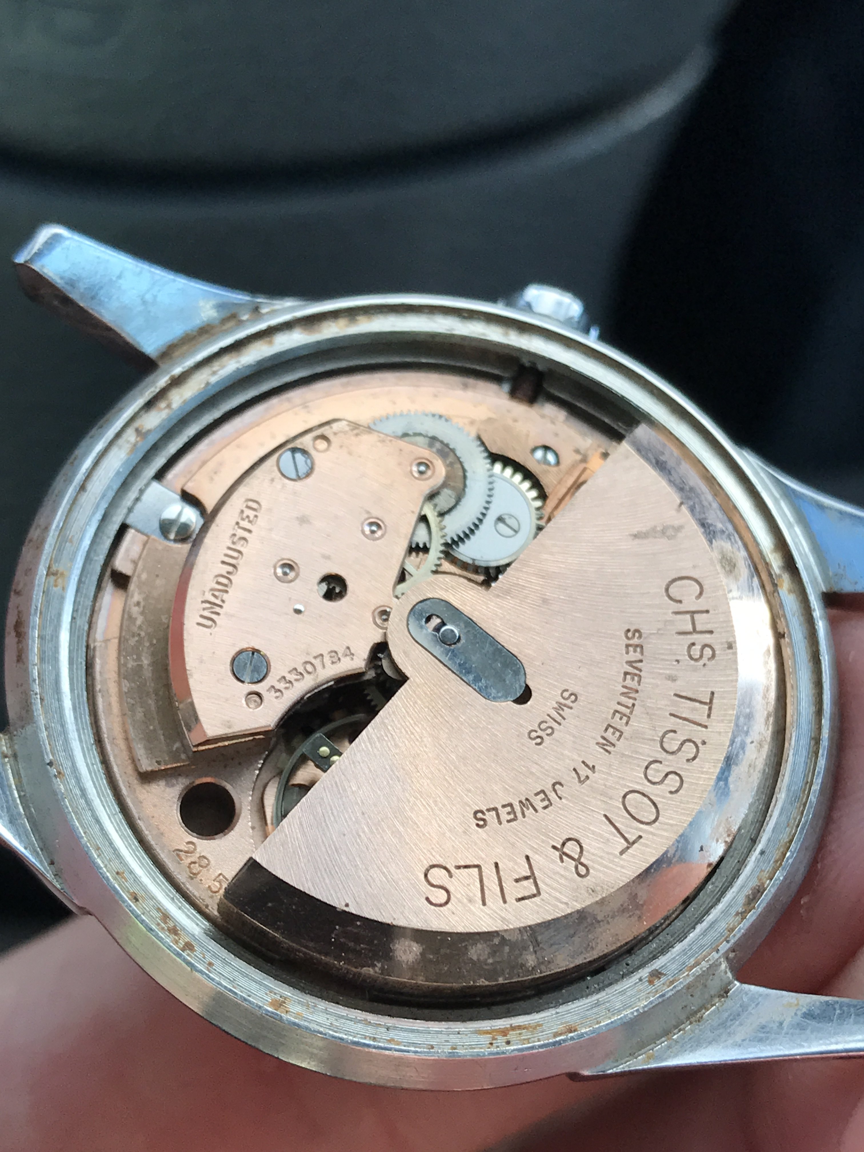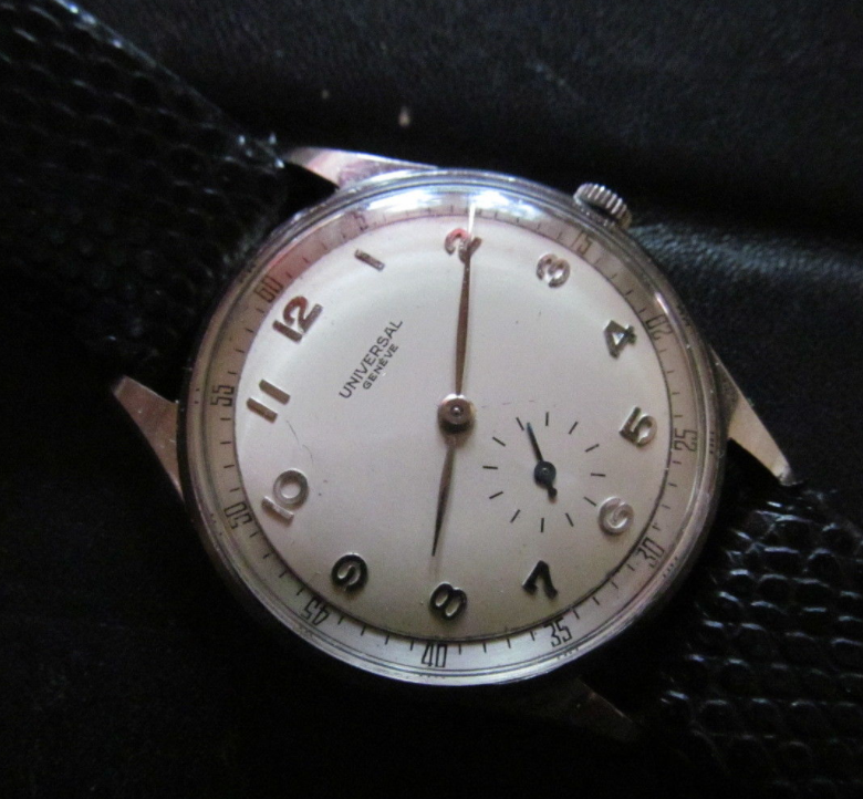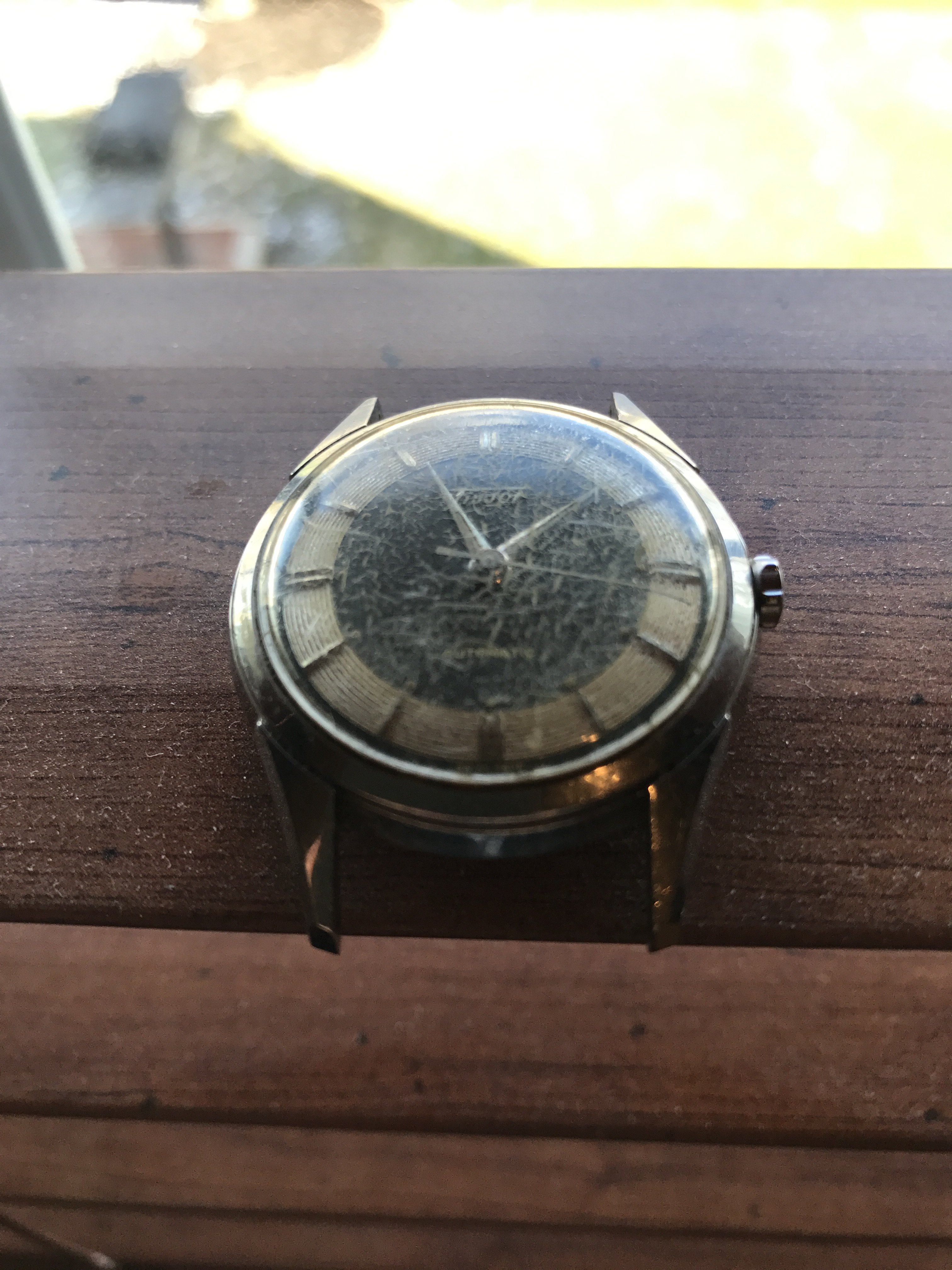 This one has a refinished dial (script discrepancies due to crystal distortion) but the watch is in very nice shape and the dial fairly close to original designs and has no blemishes. So dial be dammed I bought it.