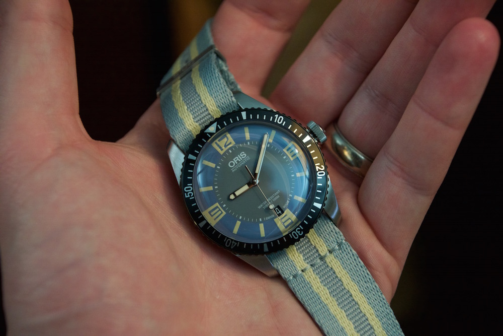 Should I shell out the $100 for the beautiful light blue/yellow stripe NATO (with special ORIS signed clasp that allows the end to be tucked inside instead of out) seen with this watch in the pic?