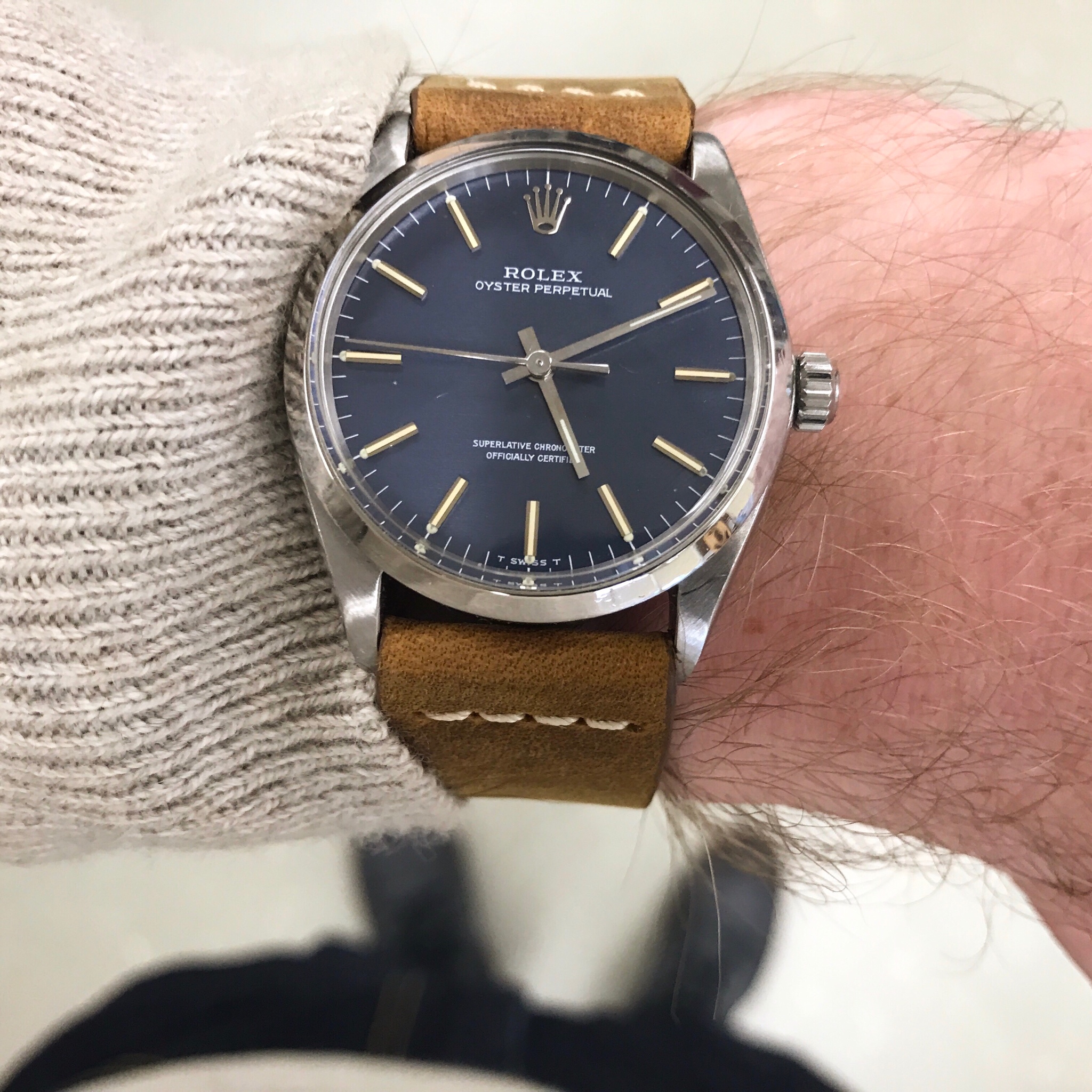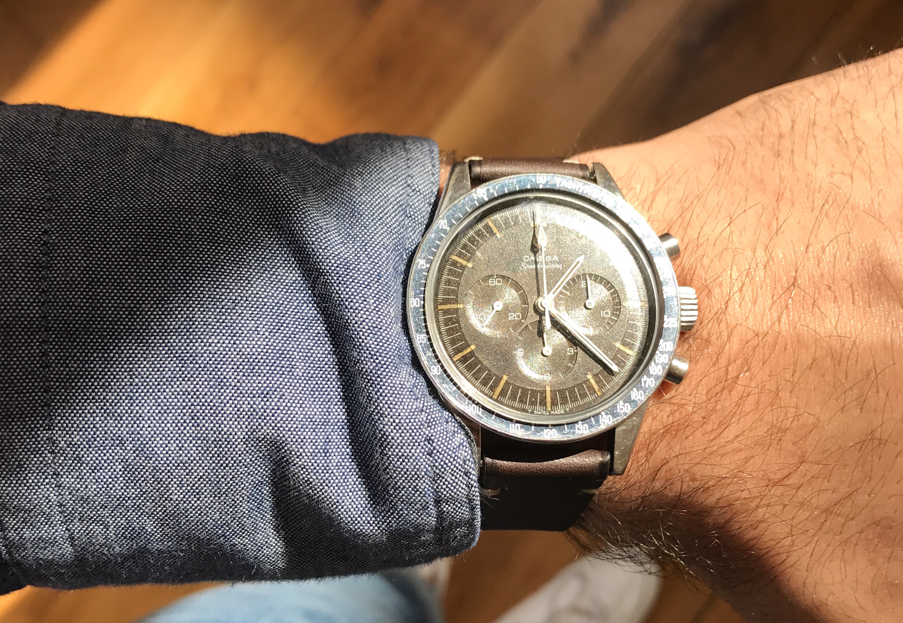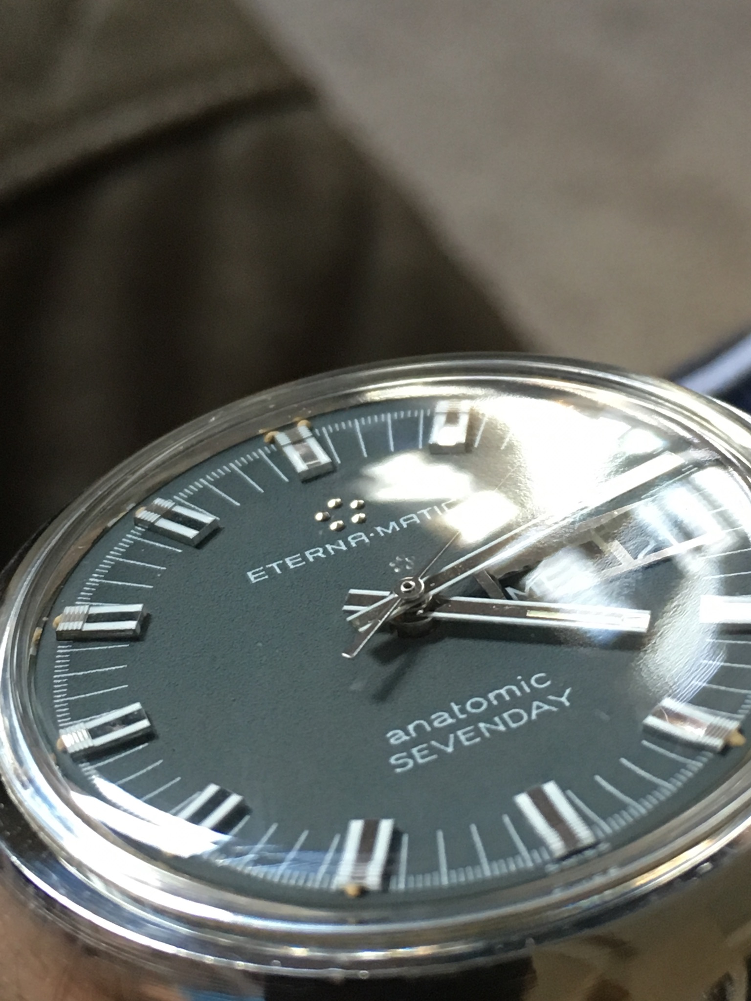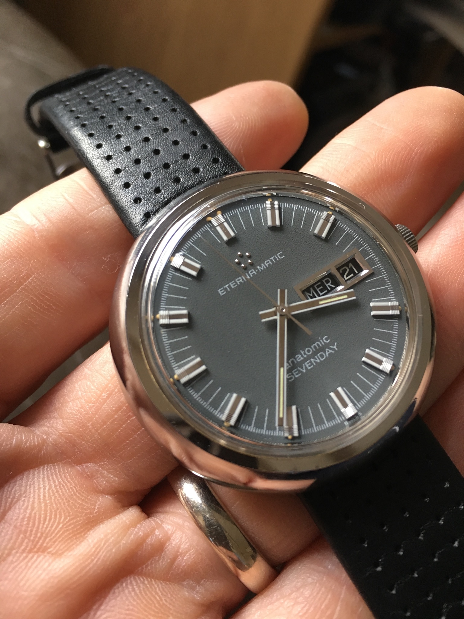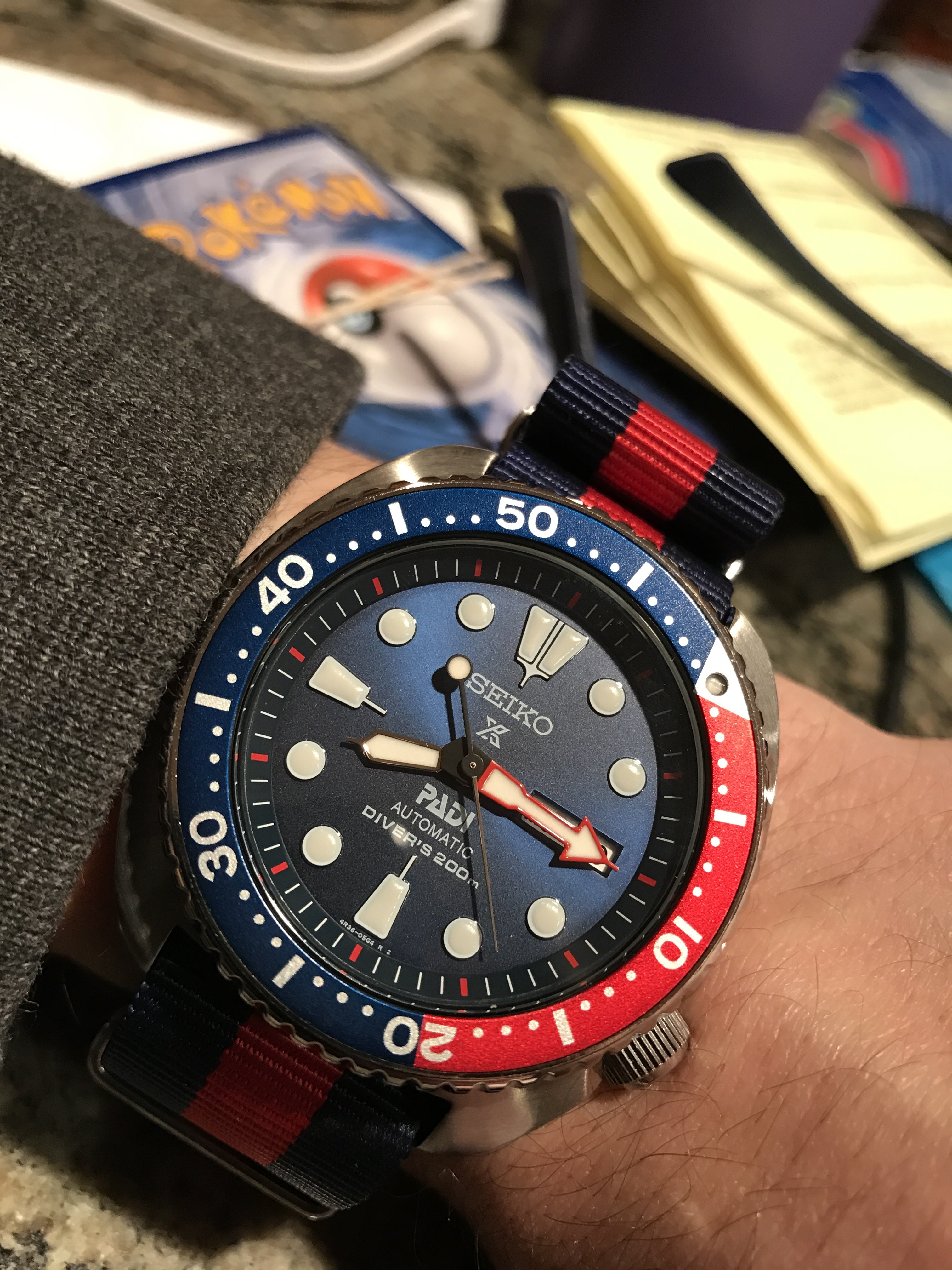 Okay well, I didn't buy this one, nor did it happen today. BUT! It did arrive today. Last month my gf bought me a watch for Valentine's Day. Great gesture and she's perfect and she knew without me saying anything that I didn't like it. It was a Bulova Marinestar chrono. Just not really my style, and she paid MSRP for it. We returned it with the intent of swapping it for something else but I said no to her paying full retail price because that's just too much to be spending on me(especially at this point in our lives, we are young and both still in school with loans etc) But when I stumbled across this sales posting and she saw it over my shoulder she asked how much he was asking(she knows I've been in love with this watch). She told me to message him and get it as the replacement. So here it is. And I'm in love! Need to get the bracelet sized down but for now, NATO.