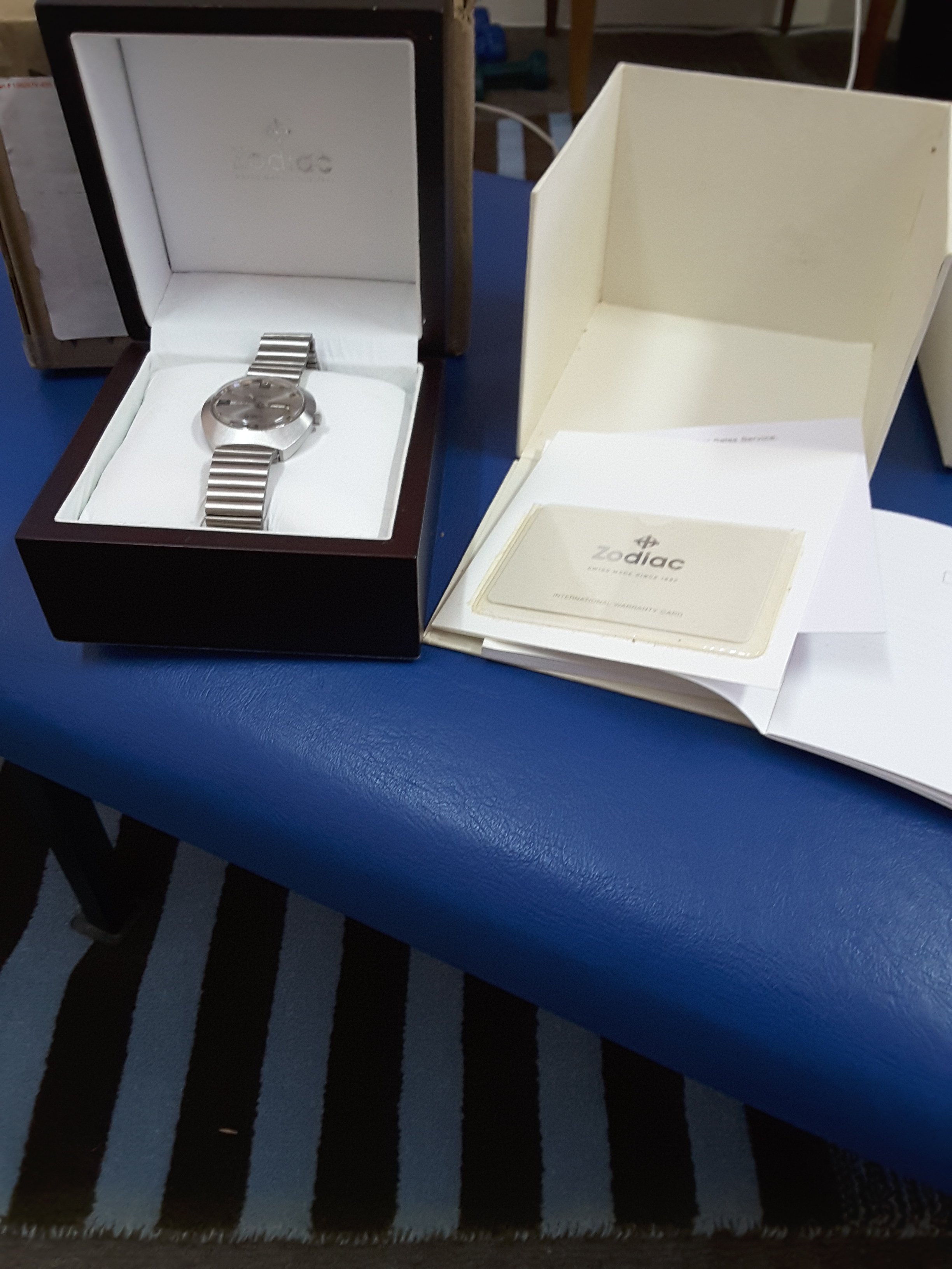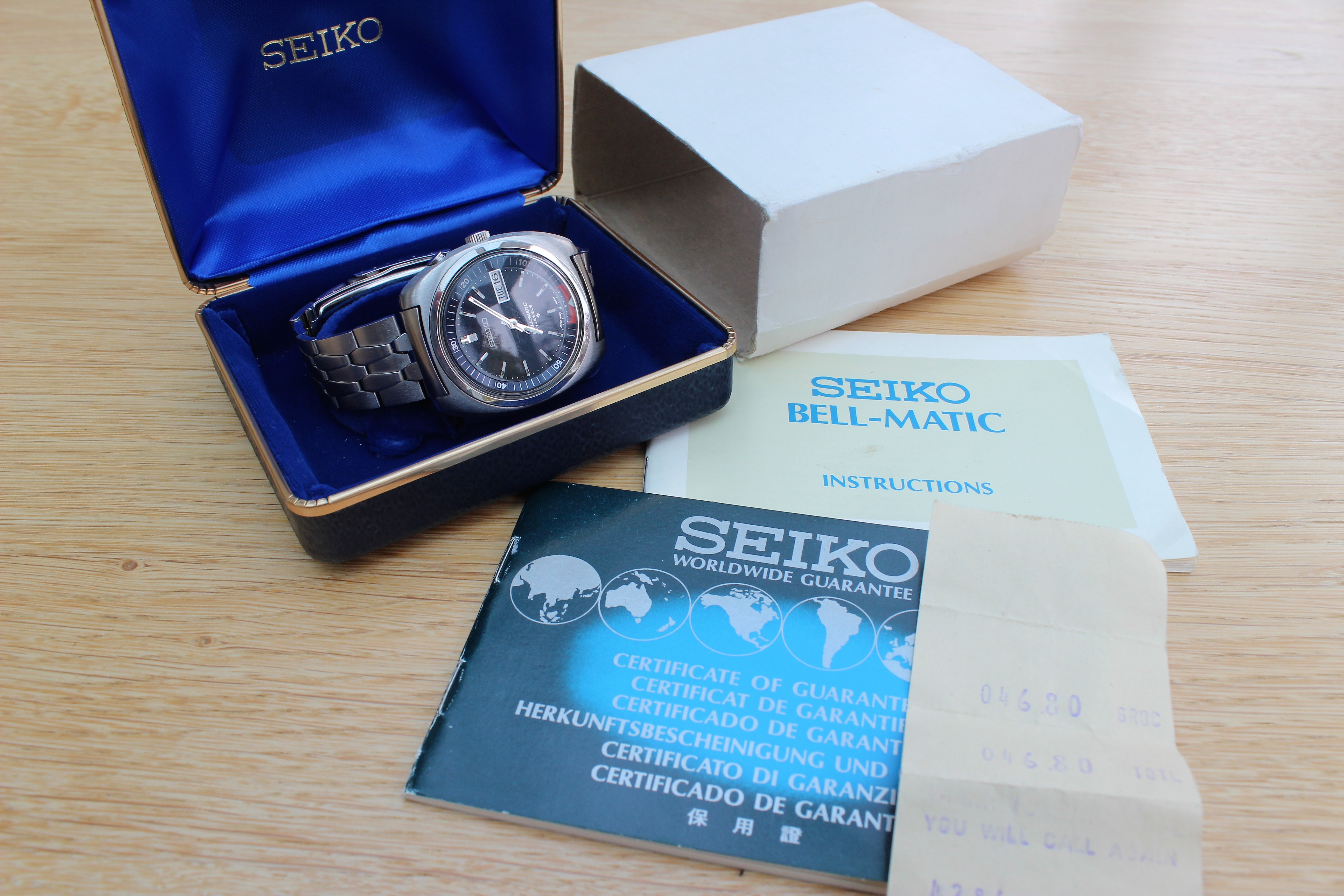 There are a few light scratches on the crystal and case/bracelet, but only really visible under magnification. Original cost price in April 1975 was £46.80, or equivalent to about £450 today...