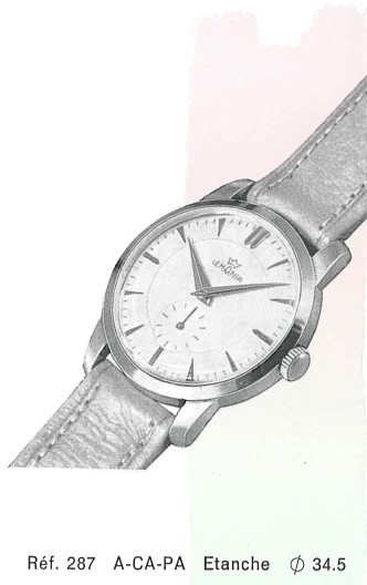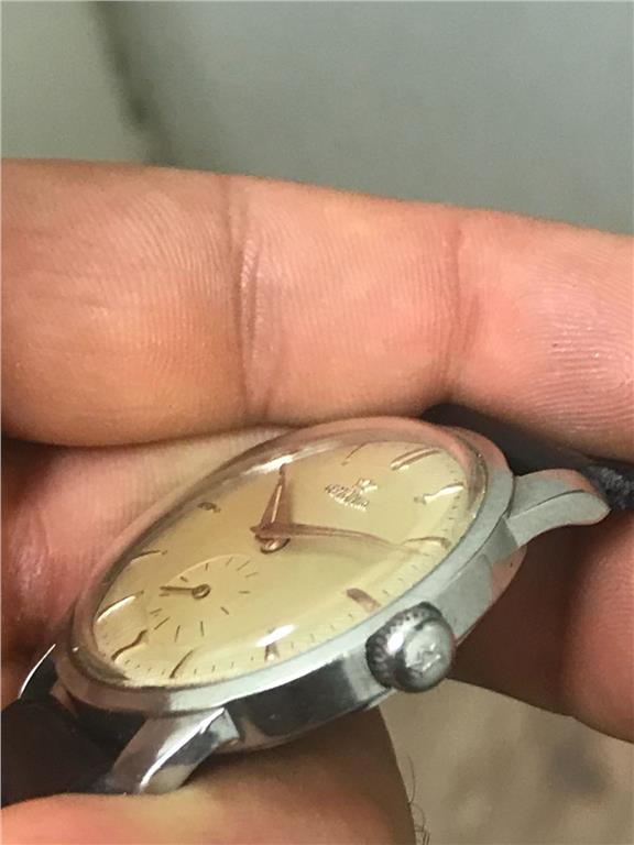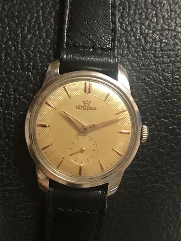 Could not resist this lovely, mid 1950s Lemania cal 3000. The structured outer section of the dial is not too often seen. It was featured in the 1956 dealers catalog with just this configuration.