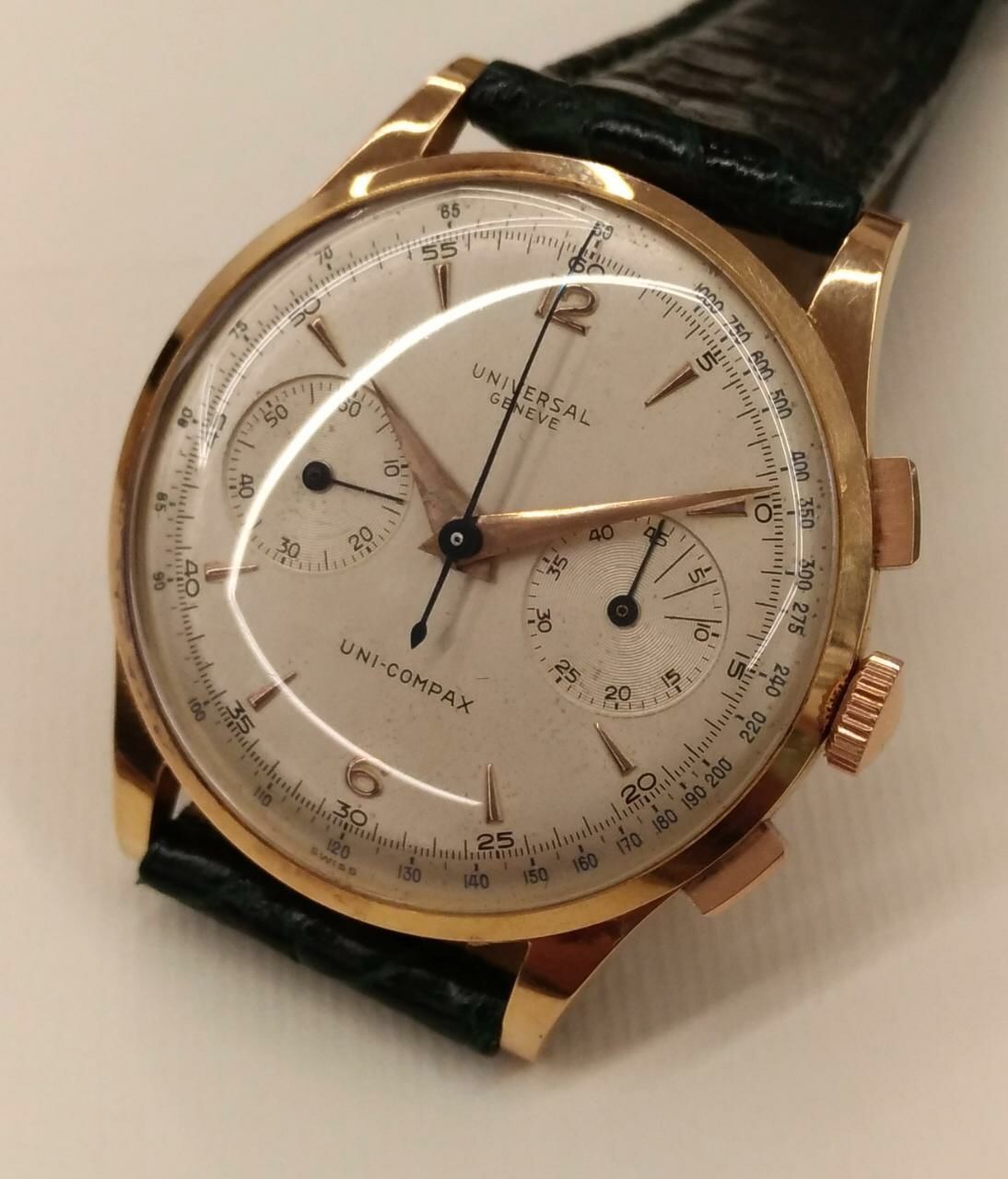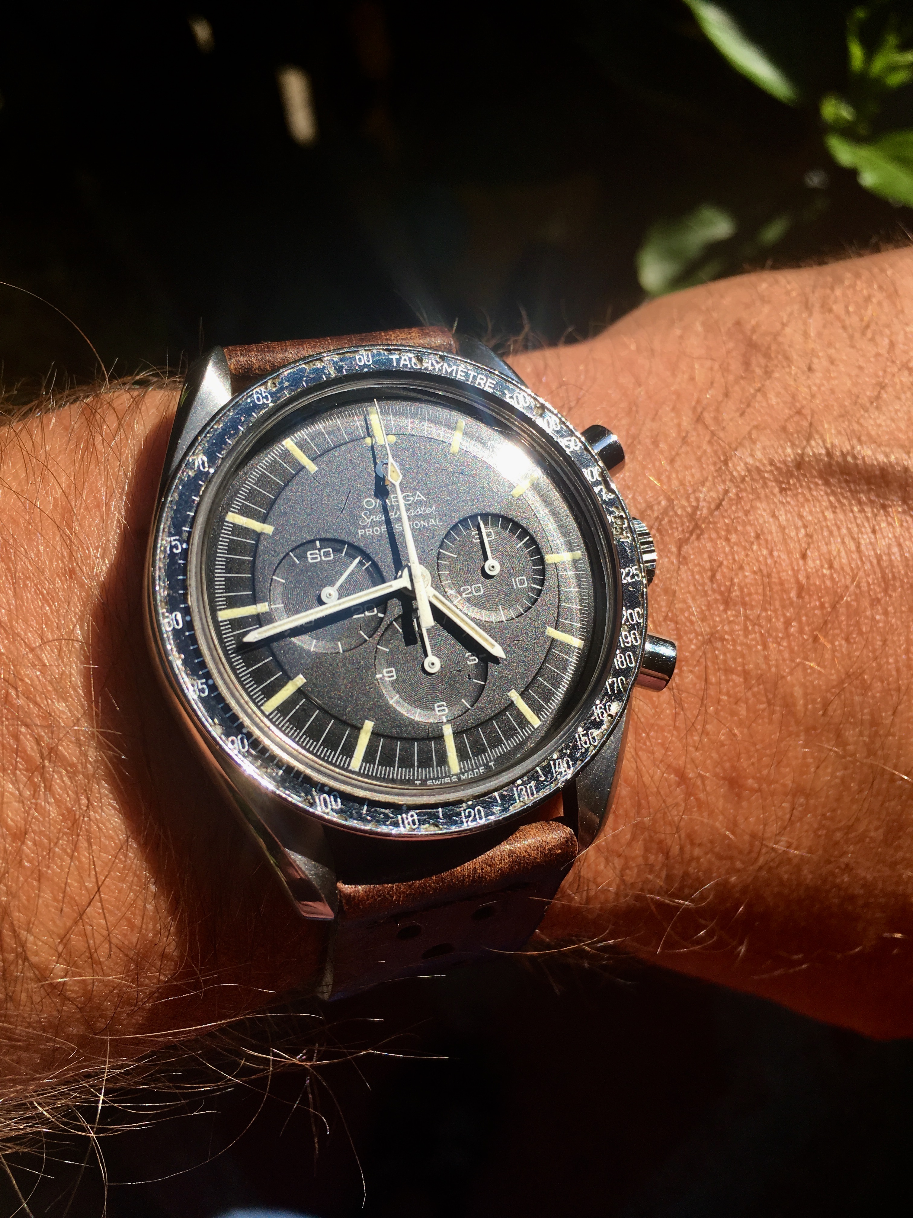 Was I swearing not to buy another watch this year? Yes. Was I looking for a 38mm Uni? Hell no. Did this sing to me? Yea it did. I need to have an EU friend carry the UG signed NOS strap to me since it is lizard skin. Won't see that till late Sept. It's coming in with a leaf hand for my 38mm Tri that will hopefully fit.