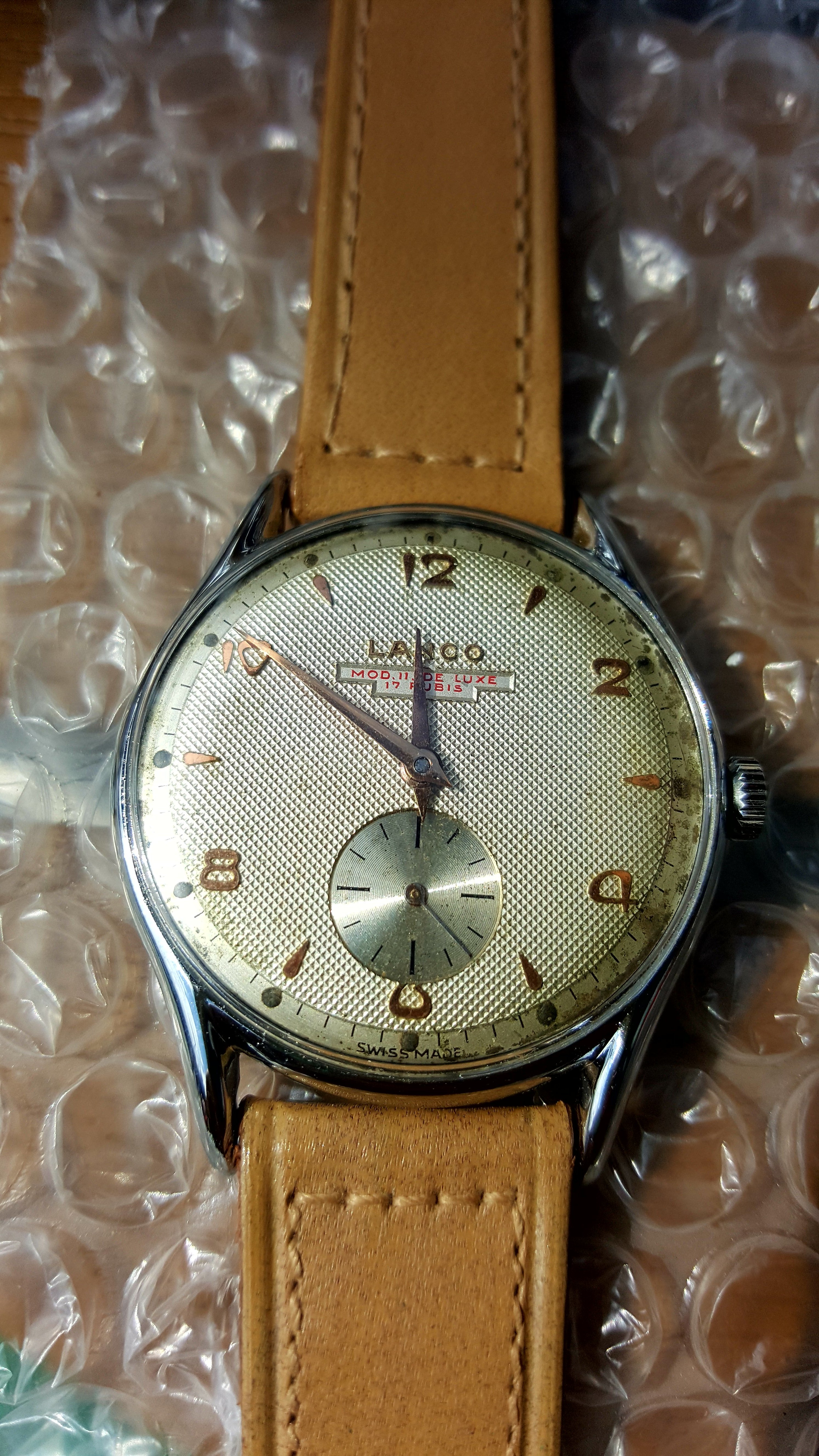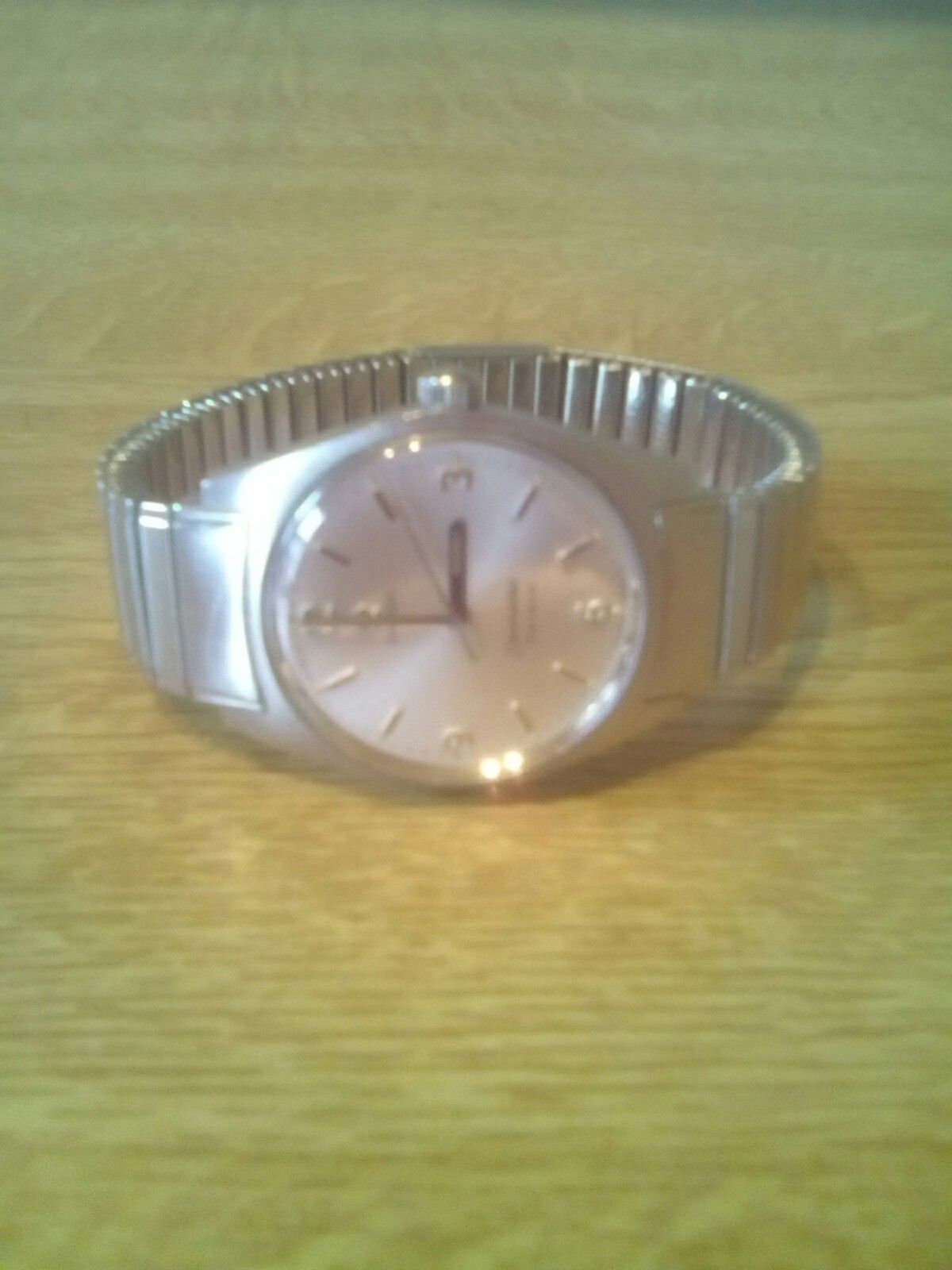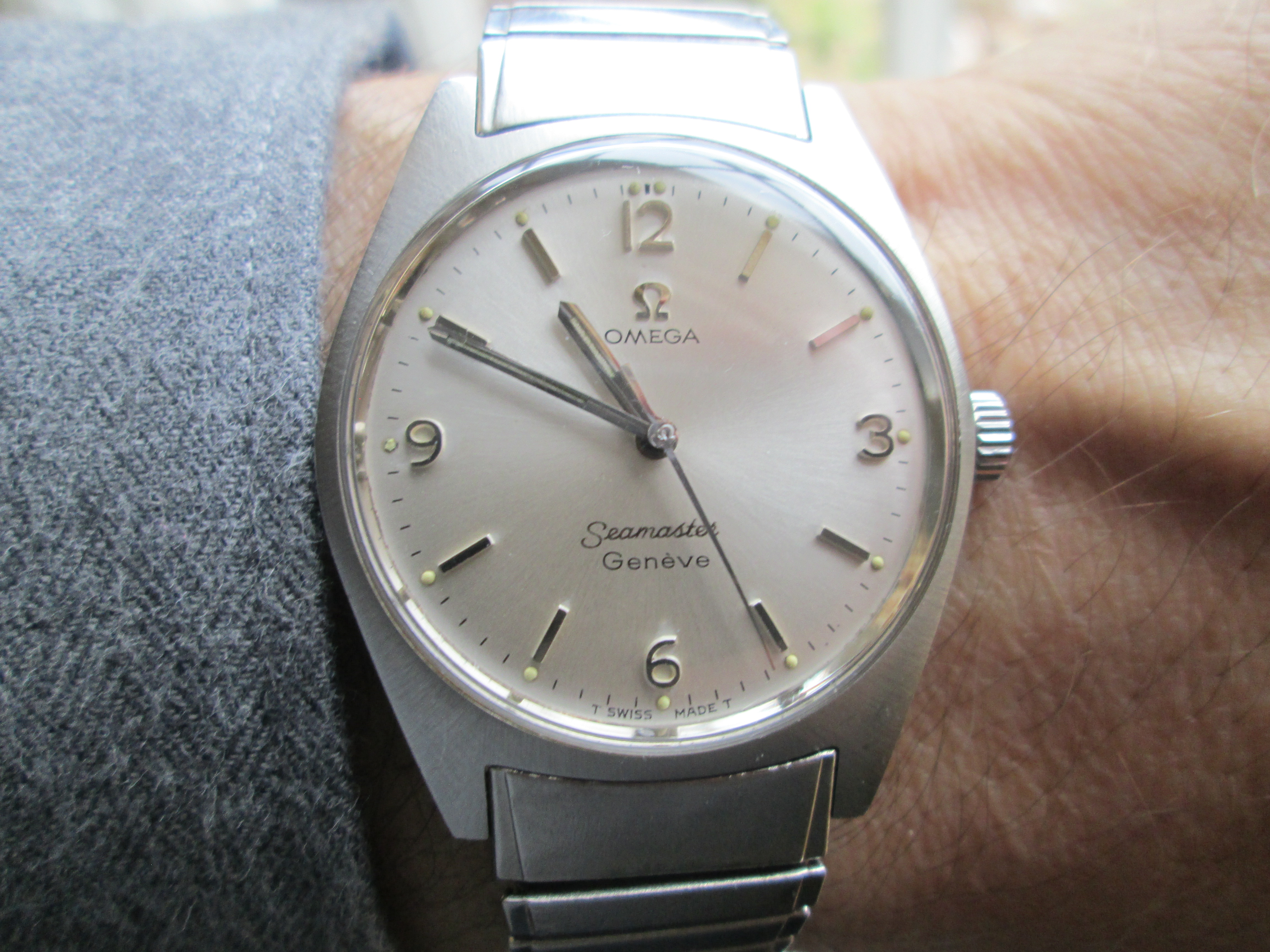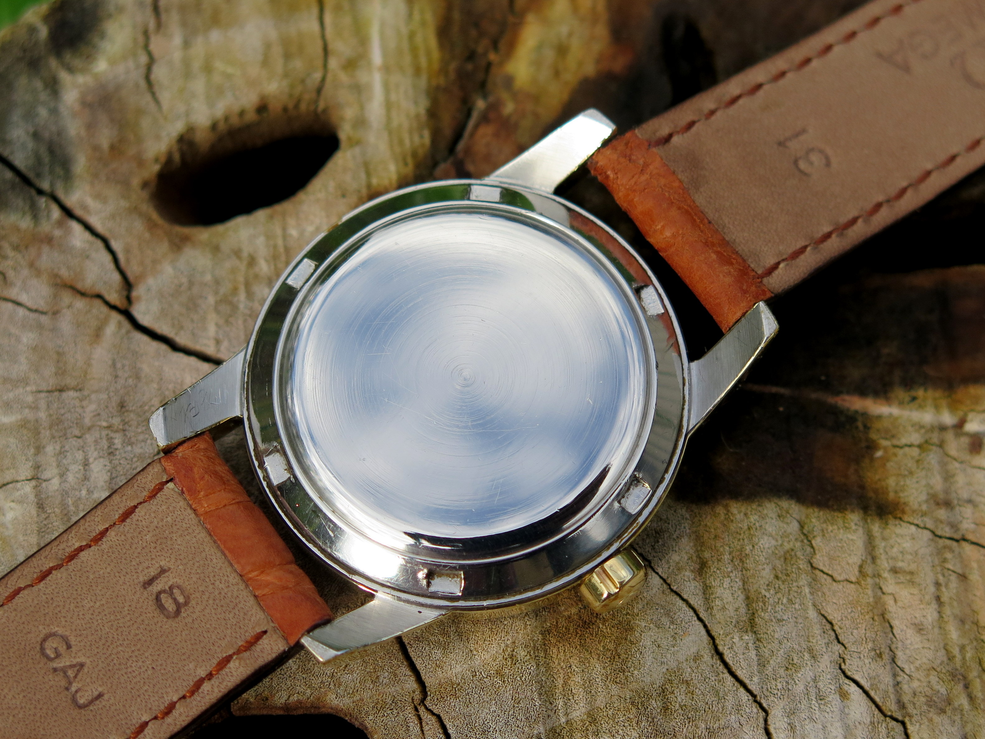 On my wrist. Presumably it's a 600 or 601. I like this! Running nicely so far, winds like silk. Sadly I might have to replace the bracelet as it's a bit tight, don't suppose anything can be done about that. Original dial, hands, crystal, crown.
