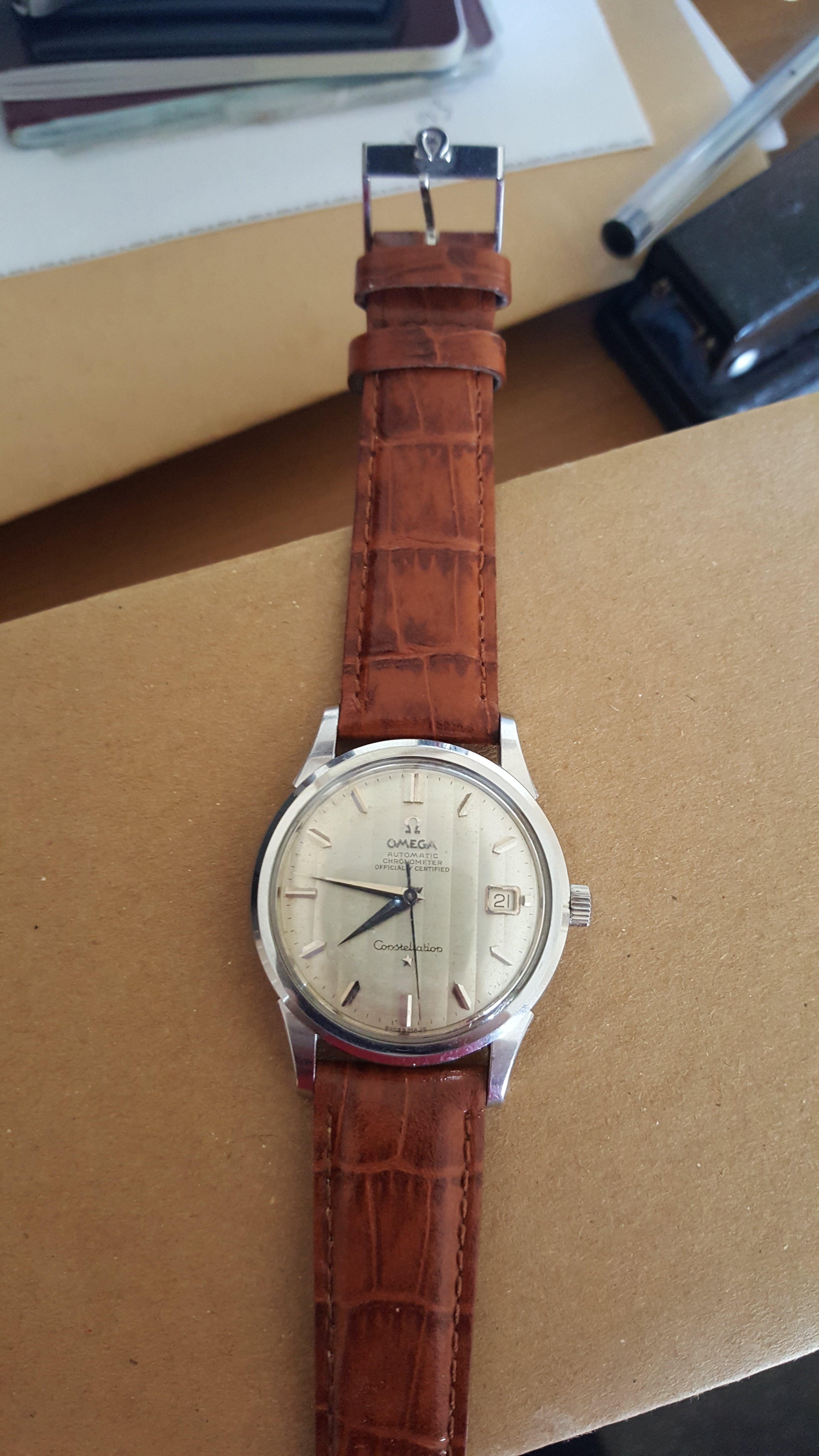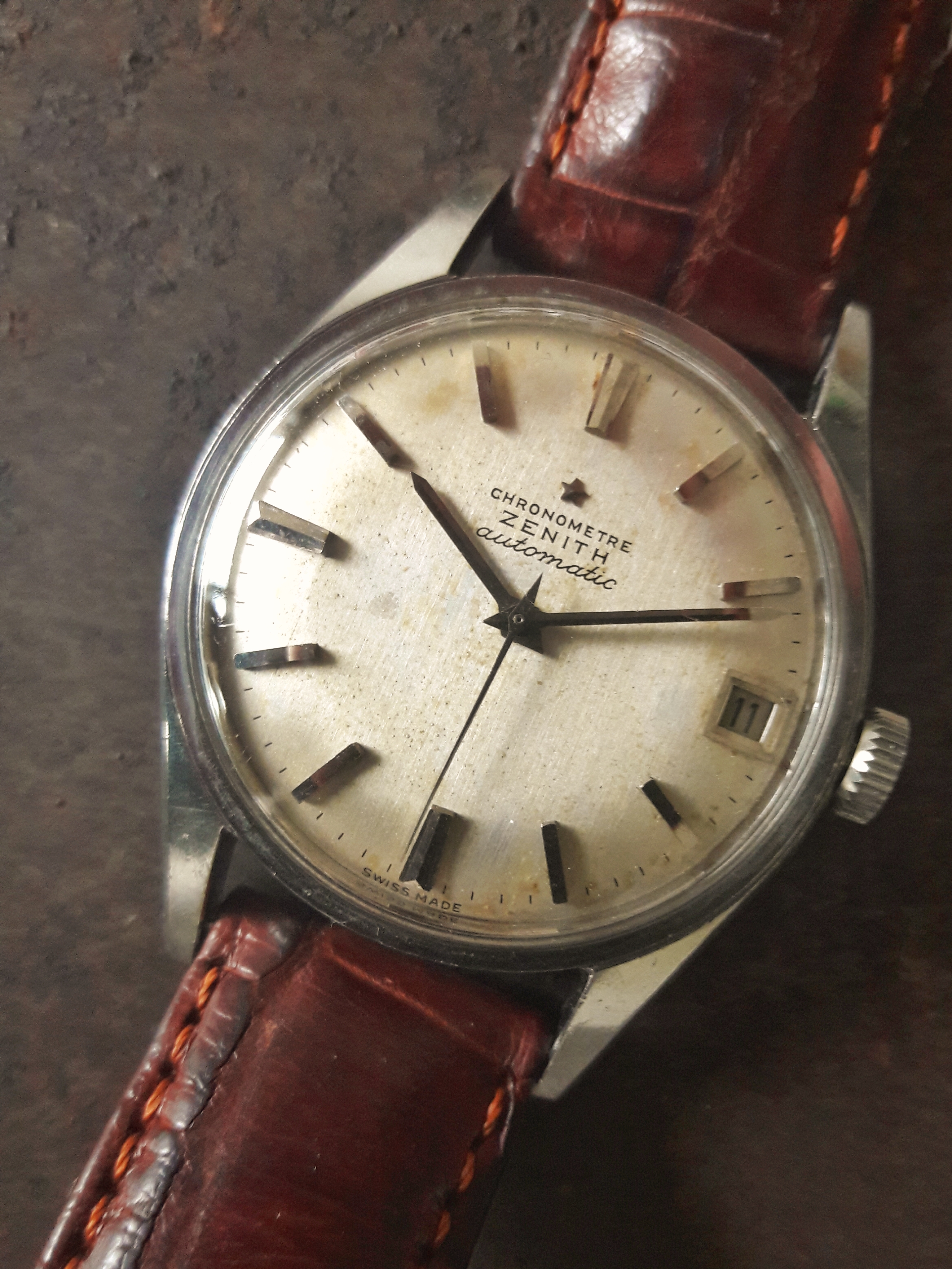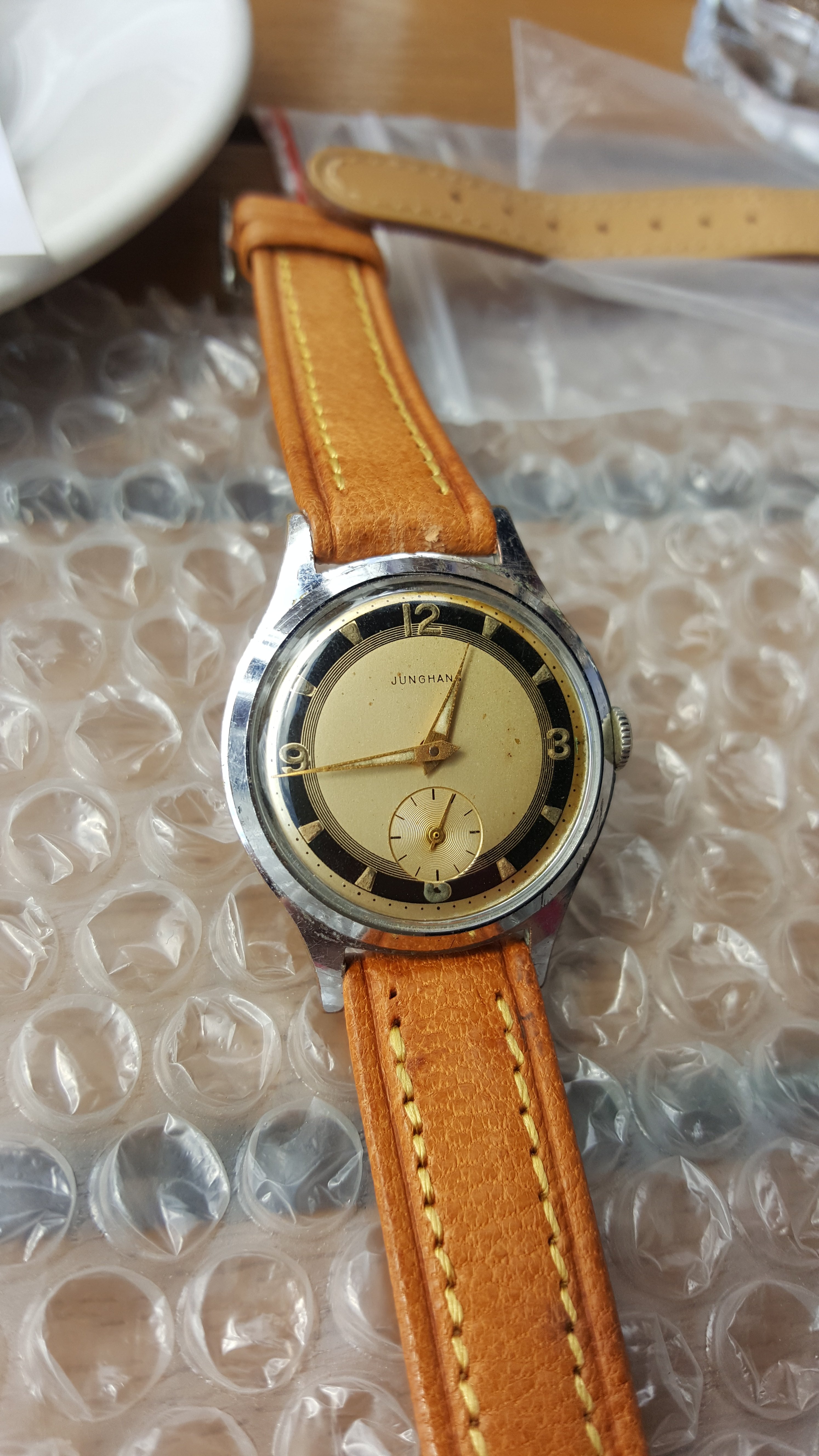 On my wrist. Presumably it's a 600 or 601. I like this! Running nicely so far, winds like silk. Sadly I might have to replace the bracelet as it's a bit tight, don't suppose anything can be done about that. Original dial, hands, crystal, crown.