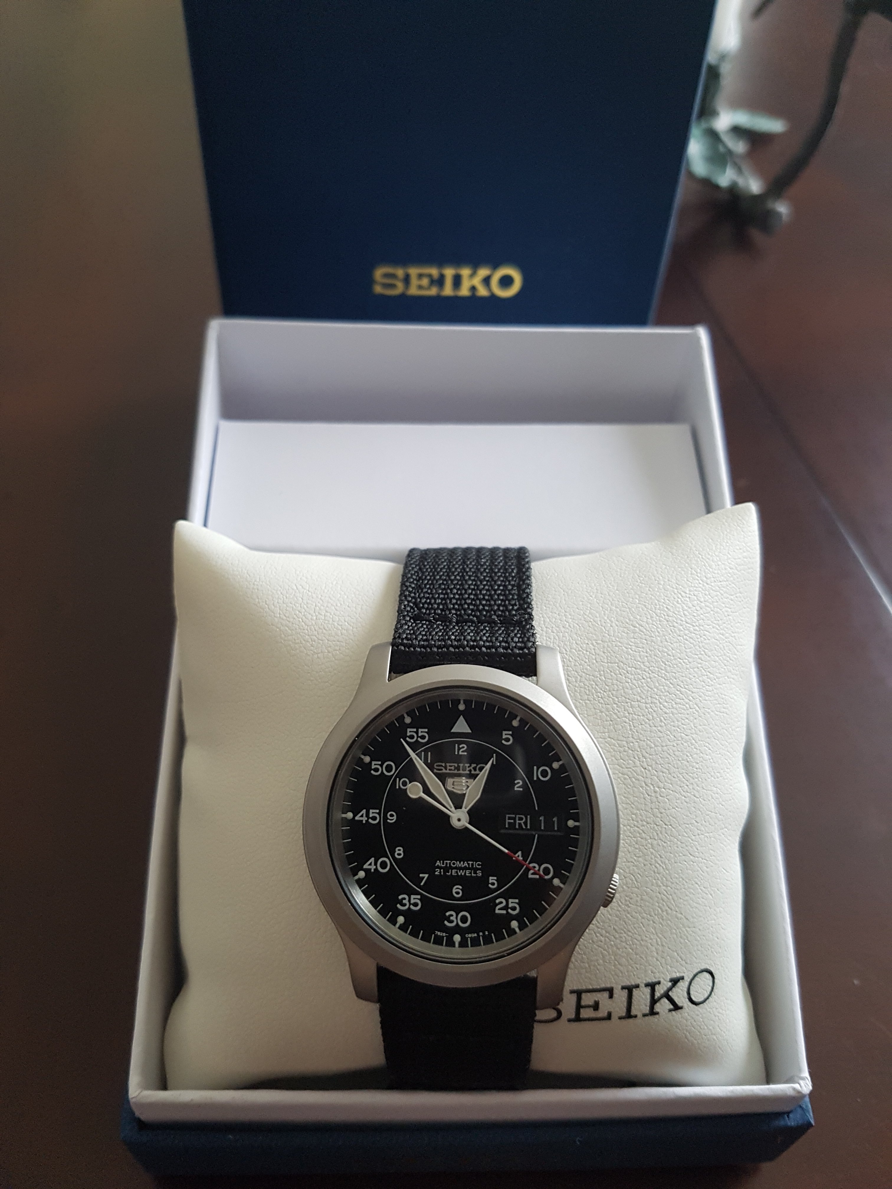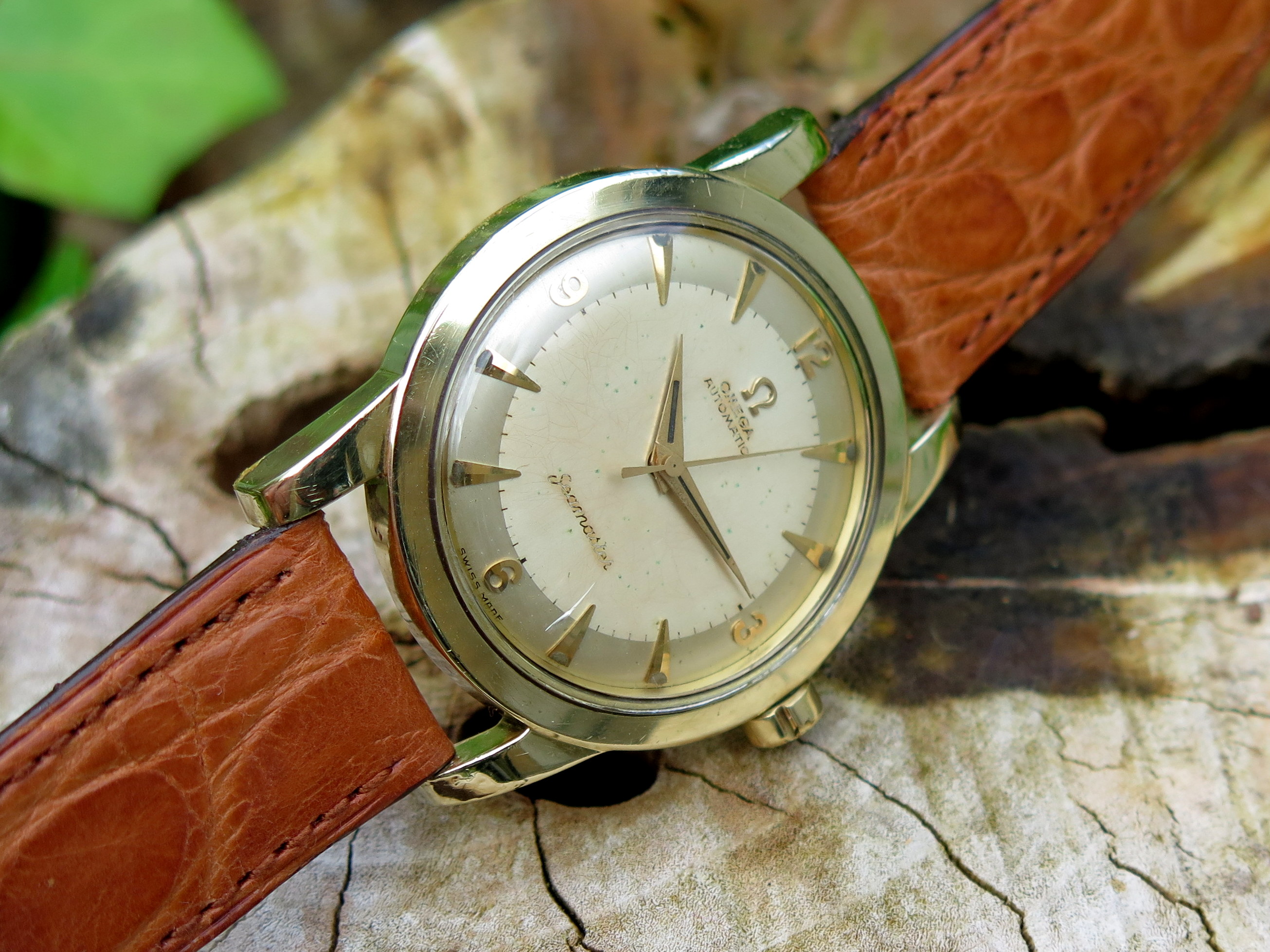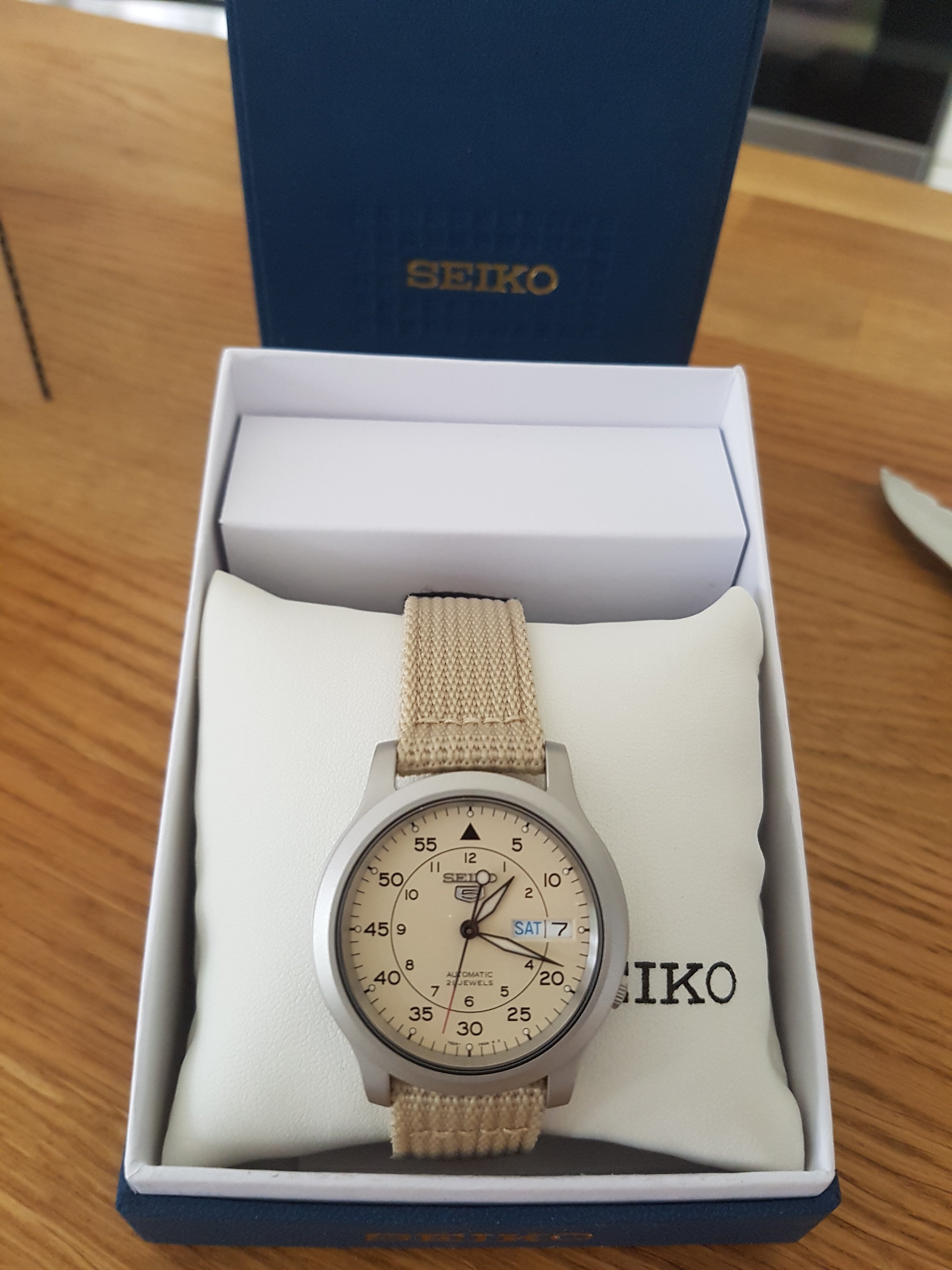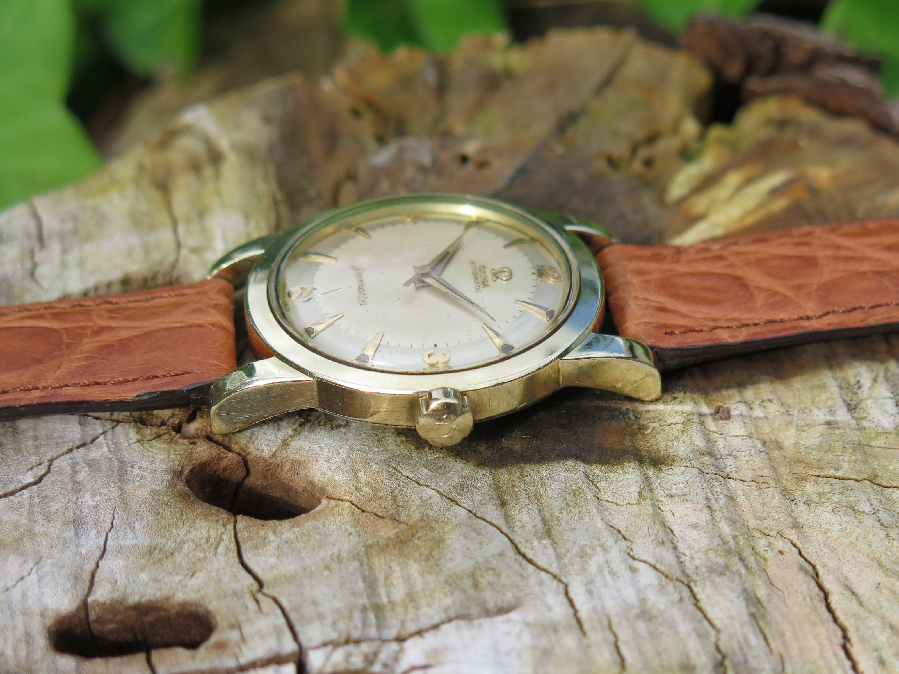 On my wrist. Presumably it's a 600 or 601. I like this! Running nicely so far, winds like silk. Sadly I might have to replace the bracelet as it's a bit tight, don't suppose anything can be done about that. Original dial, hands, crystal, crown.