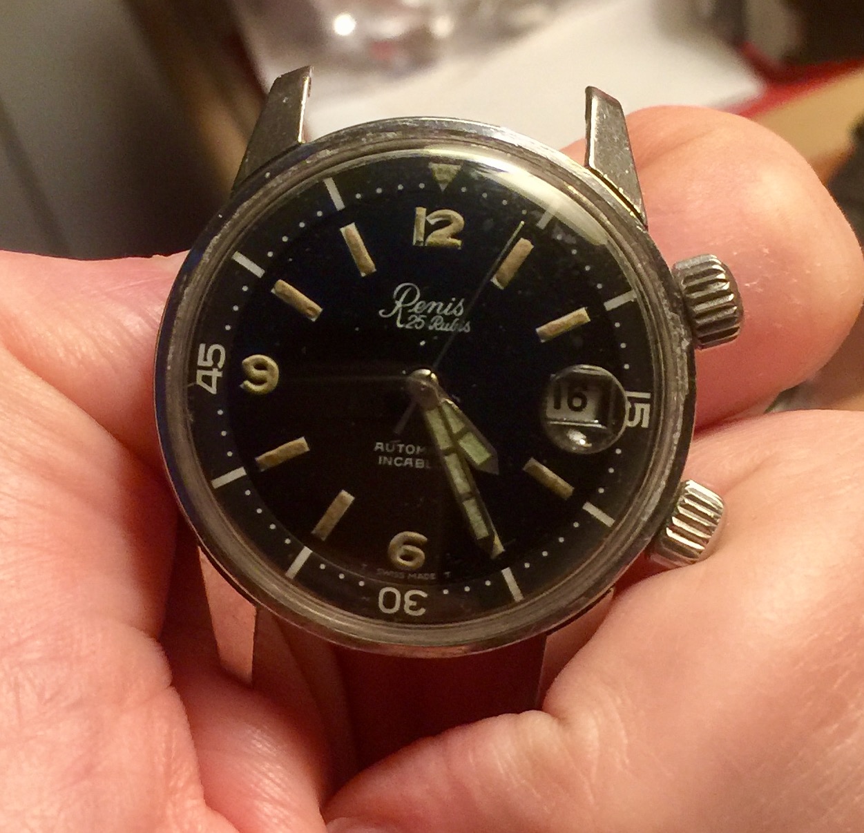 Some of the OF family saw and commented on this over the weekend. But I can happily say I have officially bought this today as it’s now been posted to me via courier. Sweep hand has been replaced by seller. A few marks on the dial (1 & 2) but, then again, who of us 50 or older doesn’t sport a few wrinkles?? 😎