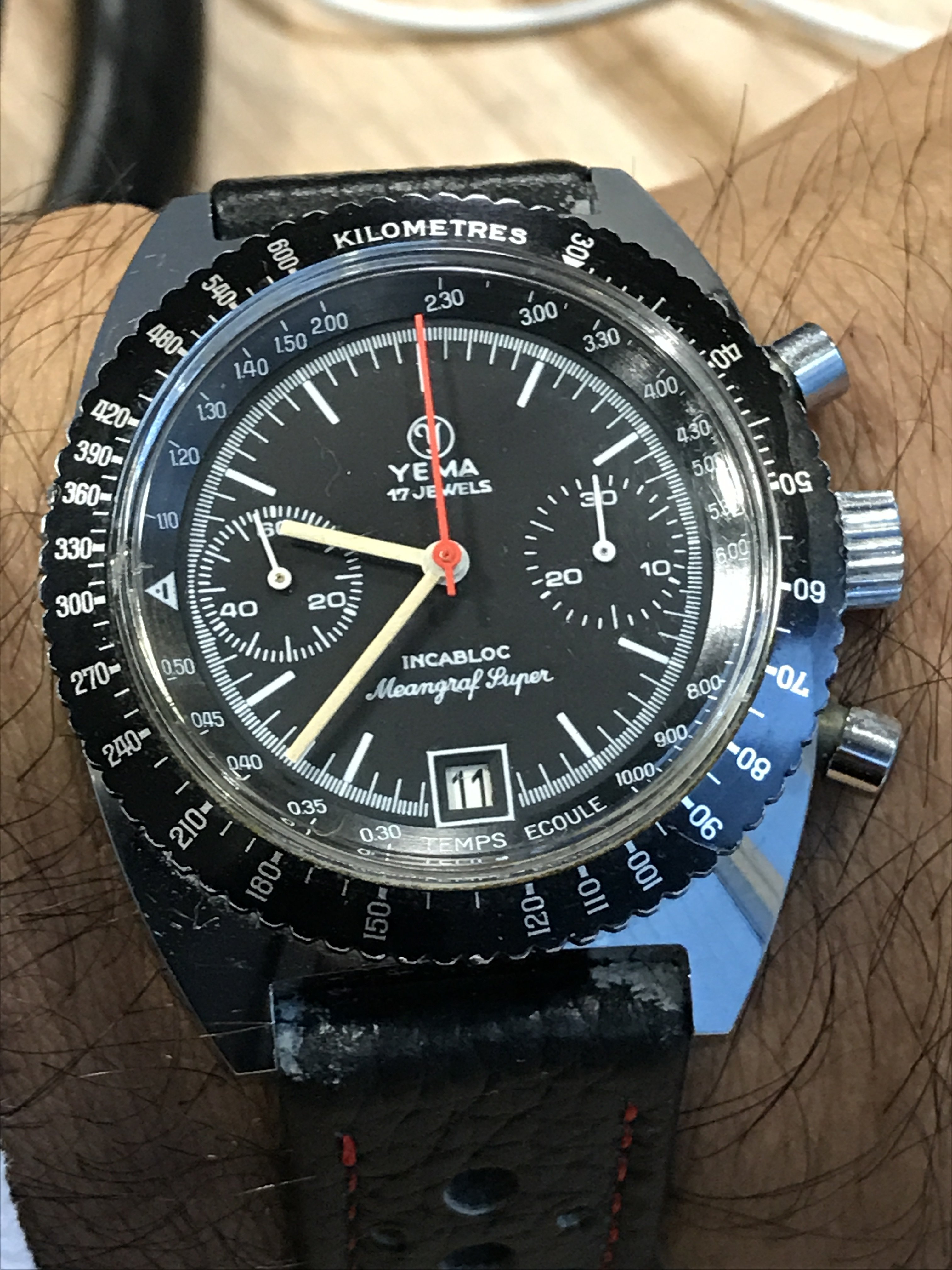 Arrived today. Onyx Pie Pan 167.005. I lost my discipline when this went up for sale. I love these dials and dog leg cases. With its pain in the ass to set but lovely stablemate.