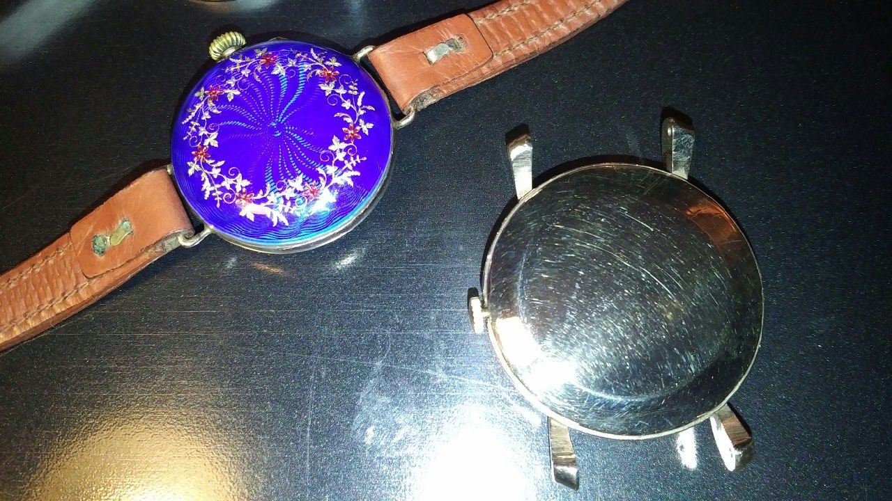 The Garrard is in 9ct gold with an ETA 1280 17j engine and dates to 1956; the ladies driver is more intriguing - the case is made by Fauvette and my brief research says they stopped making watch cases in 1880. It's got a sweet cloisonne enamel back and a swiss cylinder escapement movement that doesn't carry any visible name. Both need to be introduced to a cape cod cloth and want a service ... then we'll see about finding them a new home.