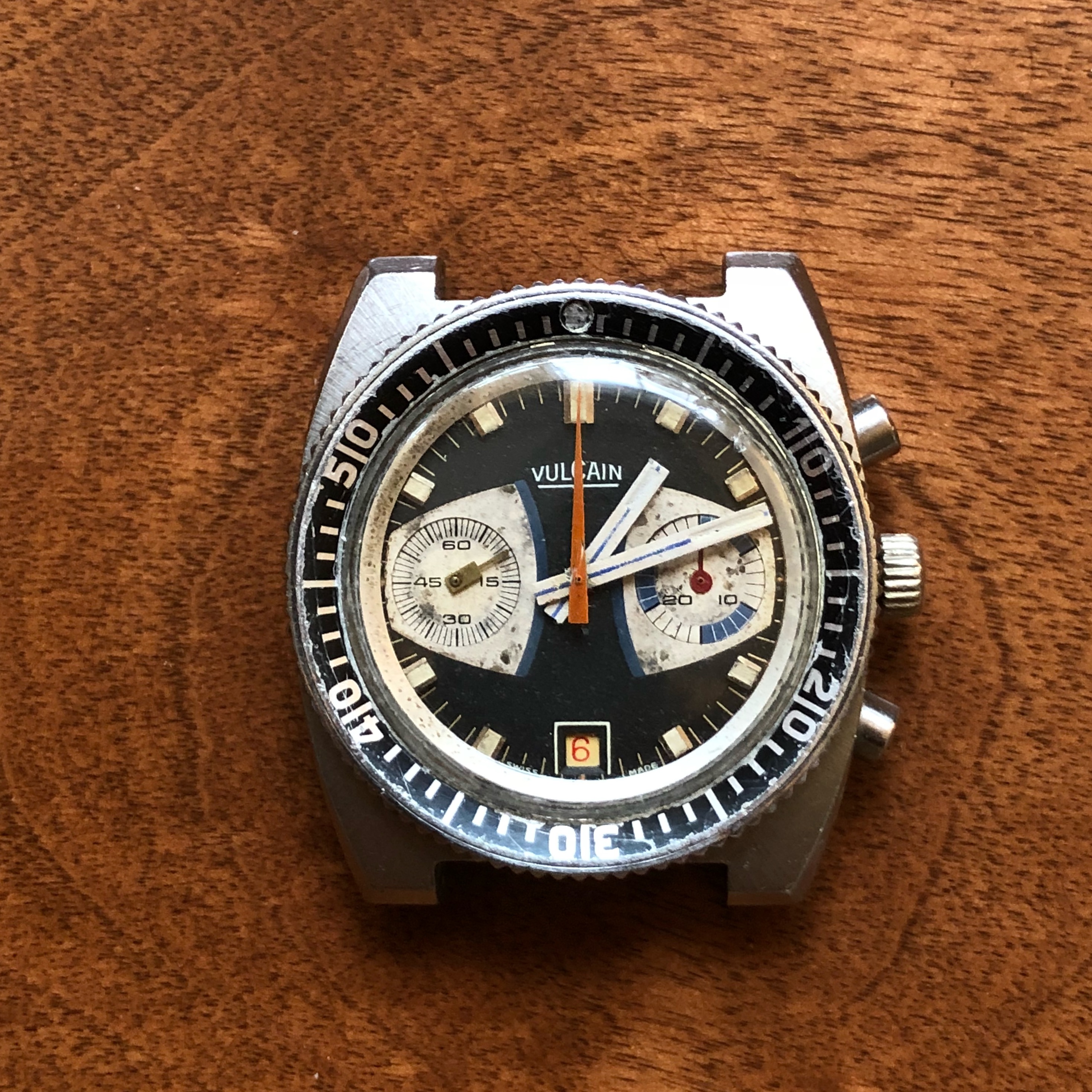 This arrived from ebay today! I really like vintage watches that are well worn. This one didn鈥檛 have the chronograph runner but I quickly found it on eBay. My friend pointed out how is the minute counter hand staying on!?