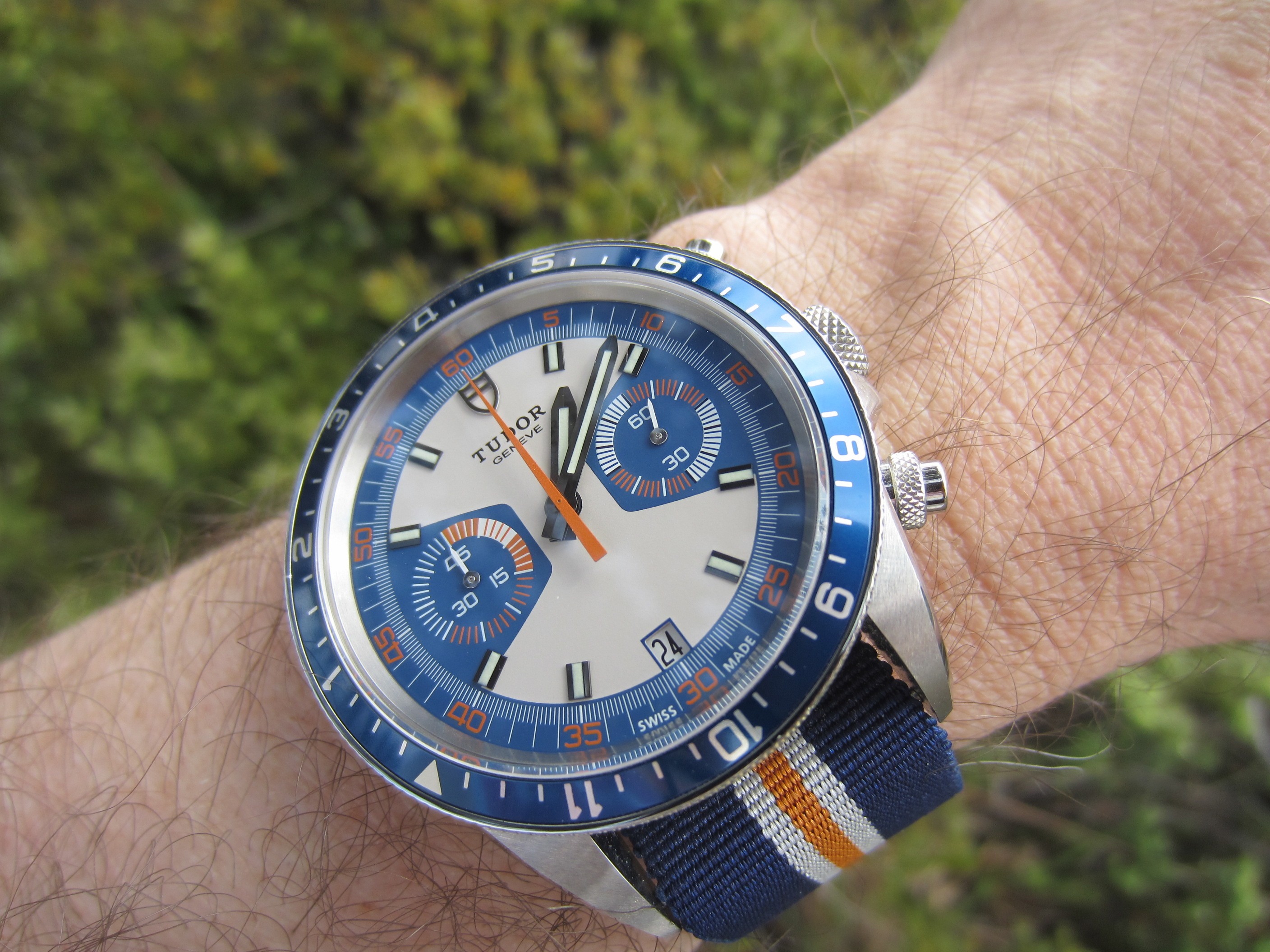 For my Tudor Heritage Chrono Blue, as a thicker alternative to the attractive multi-colored nylon strap...I still wanted something waterproof and lighter than the bracelet.