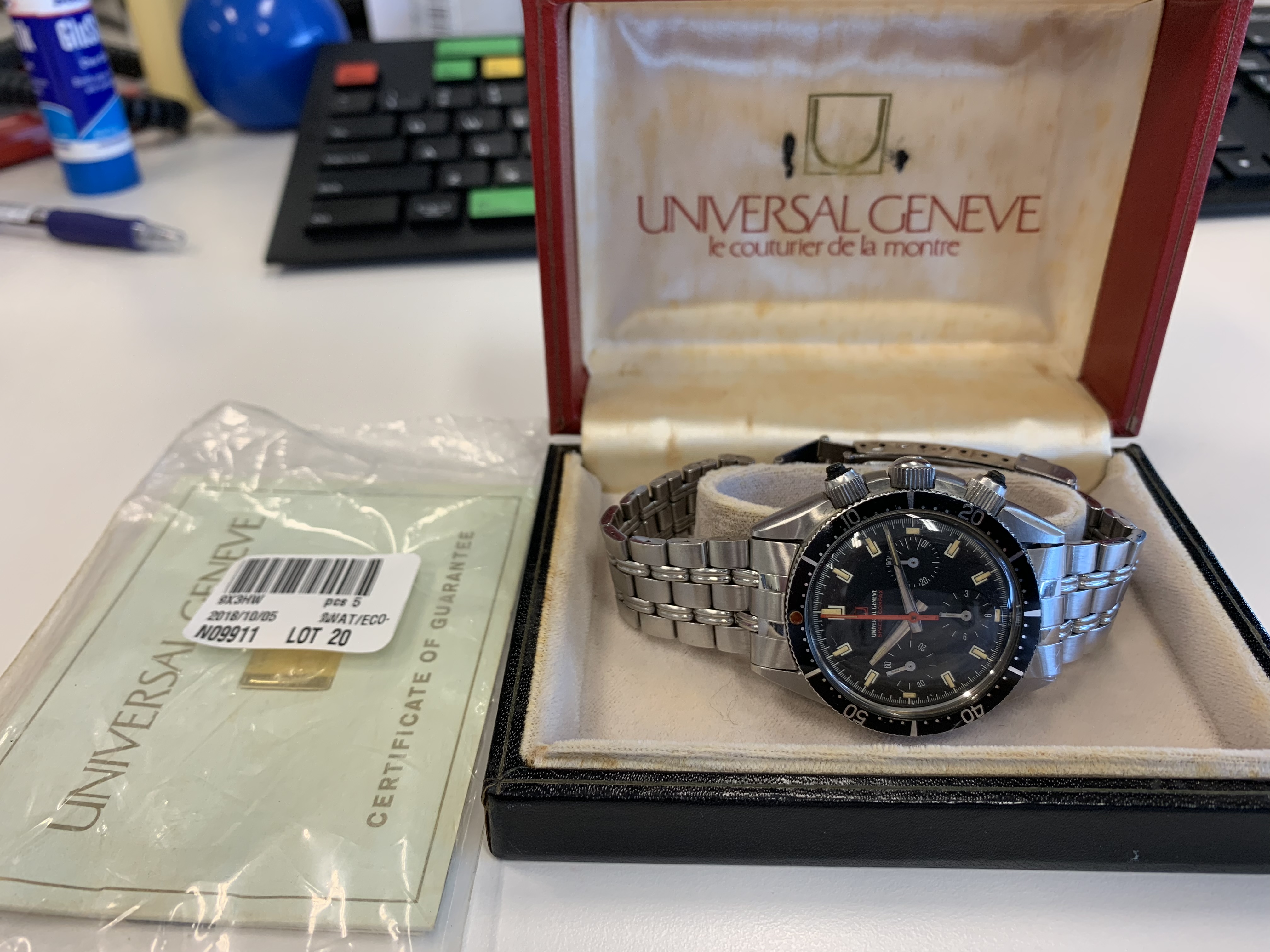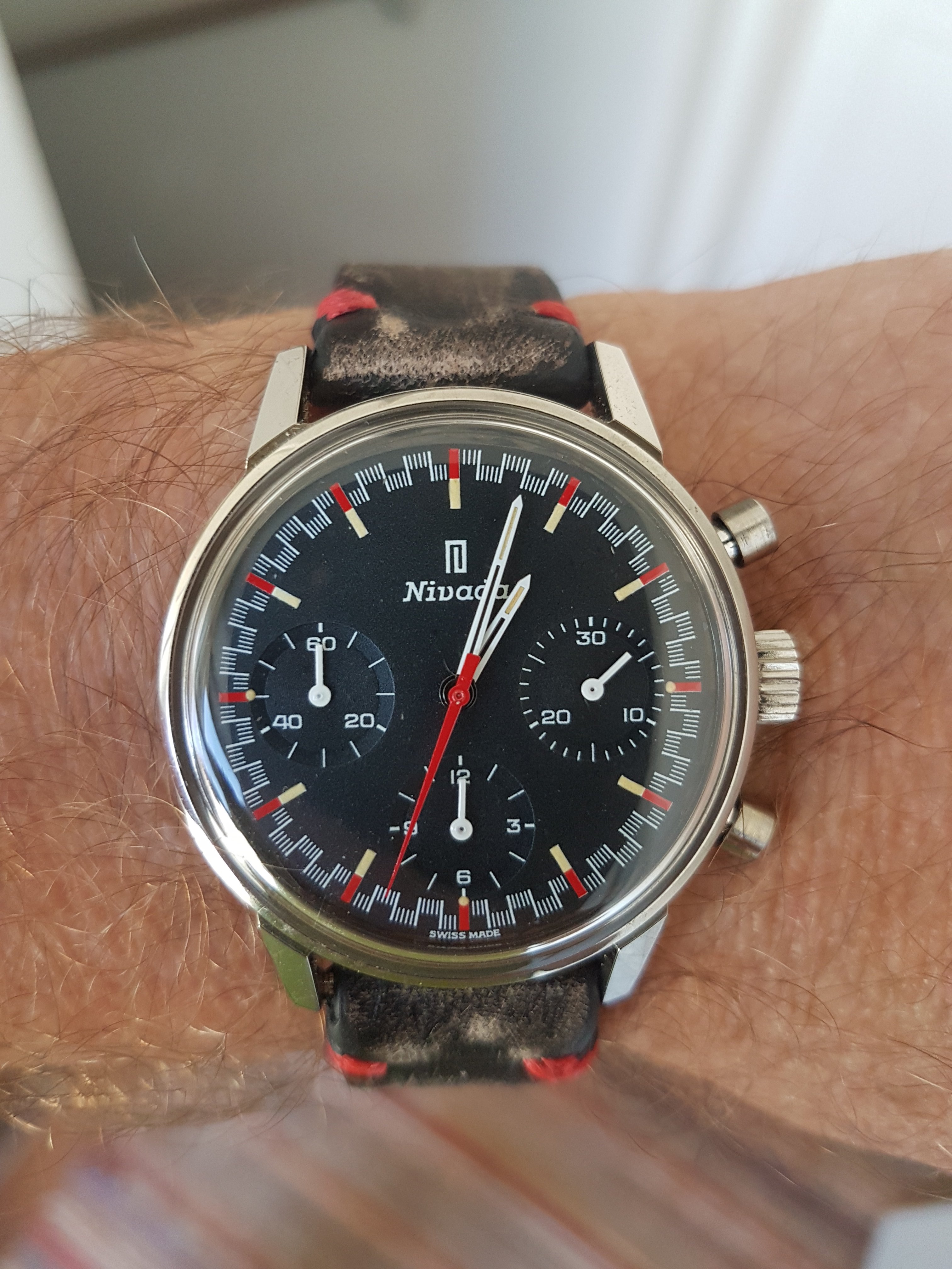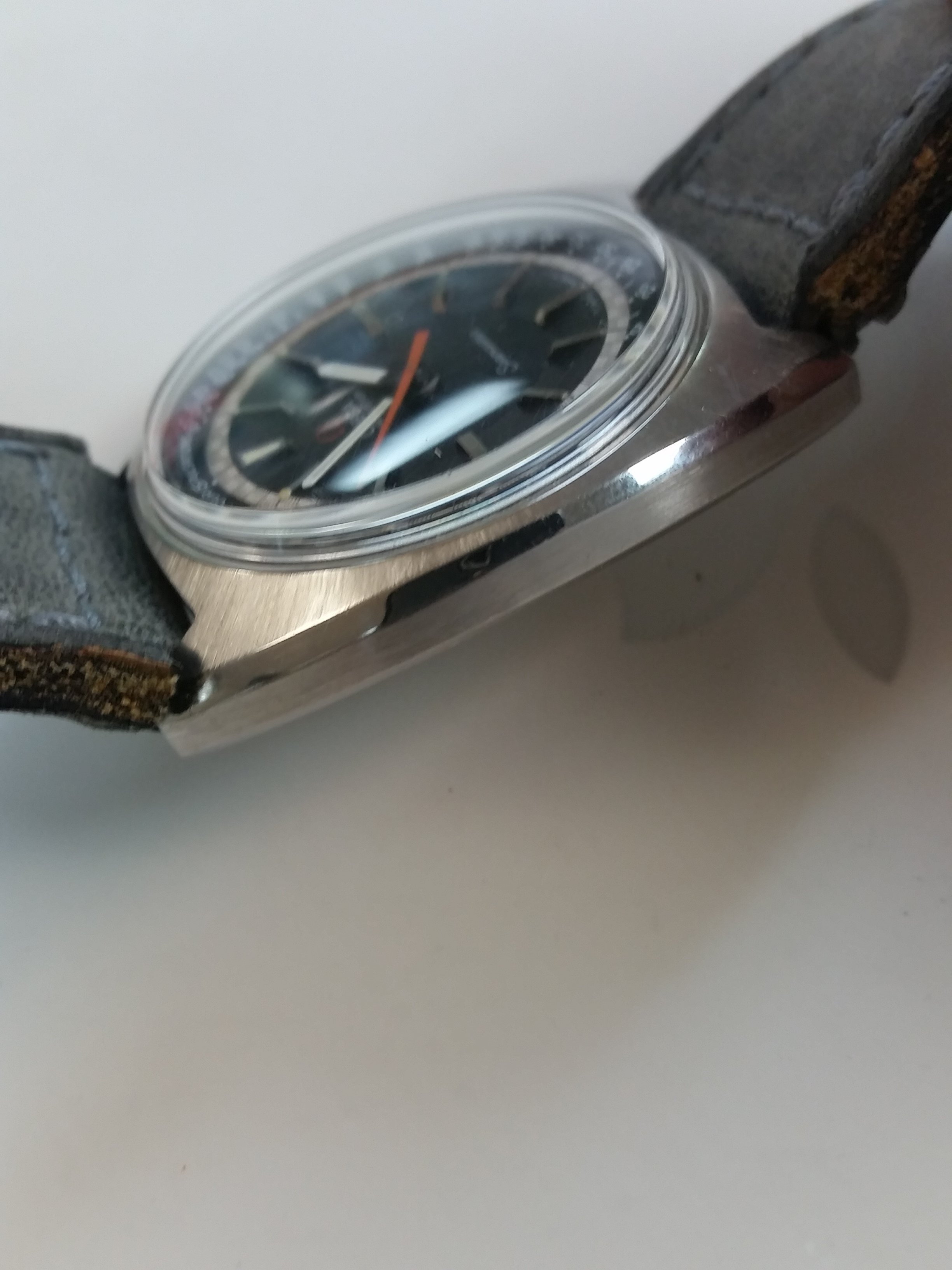 My search was complicated by the fact that due to the monocoque case, I would occasionally find a picture of a watch that looked like it might have a similar monocoque case, but the person posting the picture didn't go through the bother of pulling the crystal to provide pictures of the movement inside. There were plenty of pictures of Girard-Perregaux watches having easily removable case backs, and pictures of the movements hidden inside, but I still hadn't found one with a G-P 130 (AS 1900) movement. Moreover, while I found G-P cases that looked somewhat similar to mine, none of them were lugless with integrated bracelets.