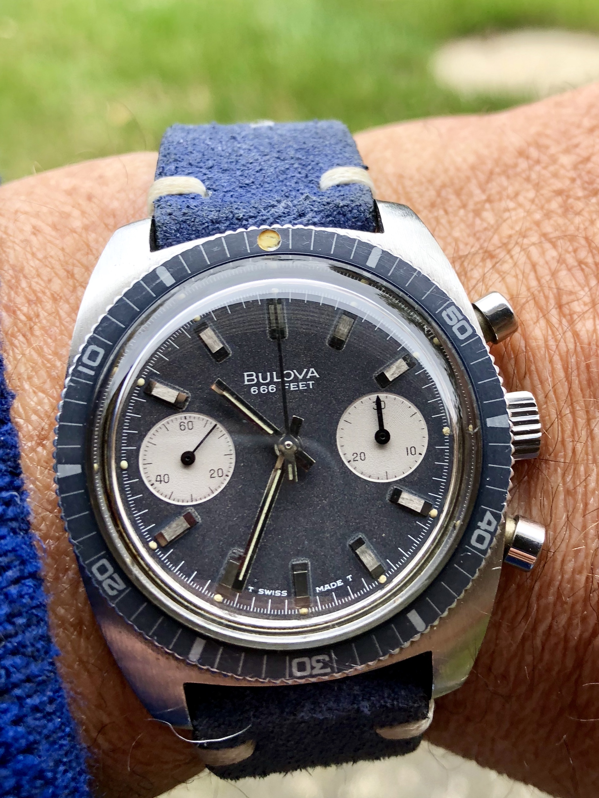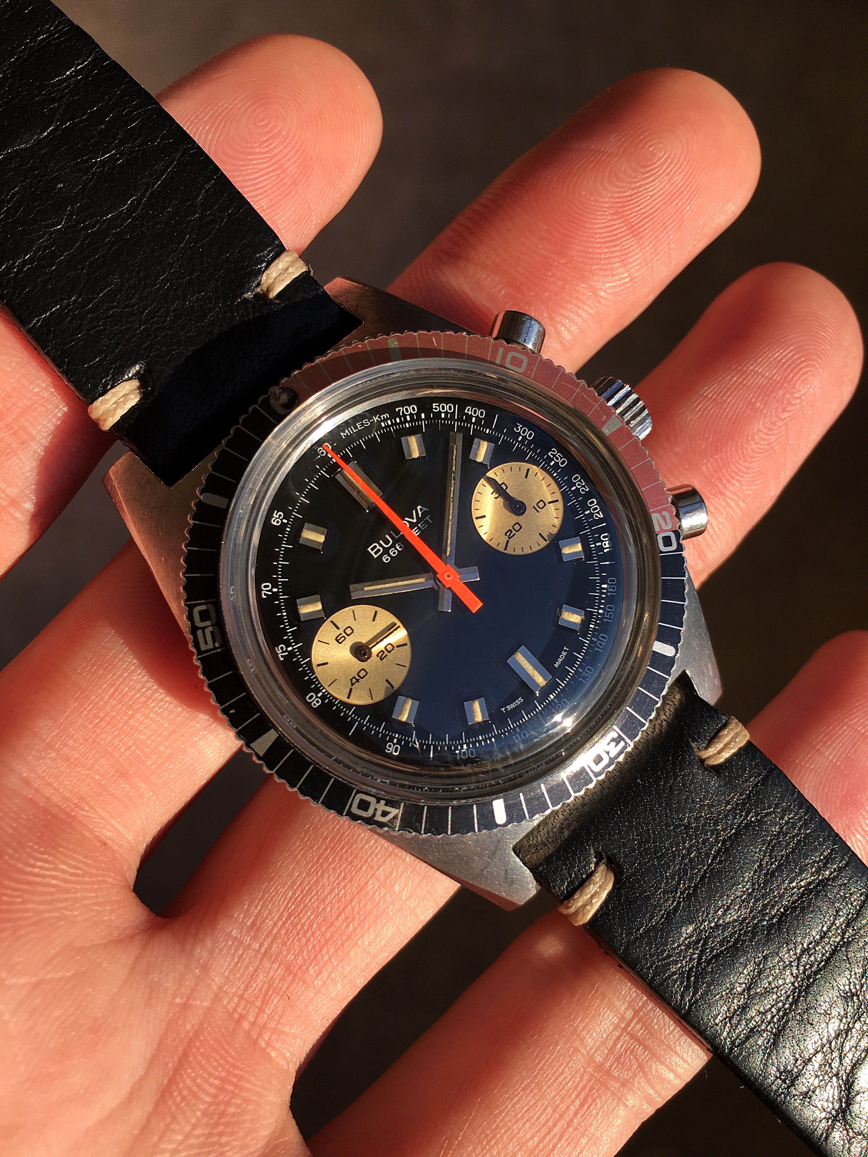 So ... I get a call about a fairly expensive watch yesterday. Nice watch but... I have concerns, so I do some research and I reach out to an expert. He agrees with me. Ultimately I pass. I however go to his website since he always has amazing stuff and boom! Now this is on my wrist...1971 Deep Sea 3100, V7733, it’s flawlessly beautiful and fiendishly hard to photograph. Shows what this brand was back in the day. Over the moon.