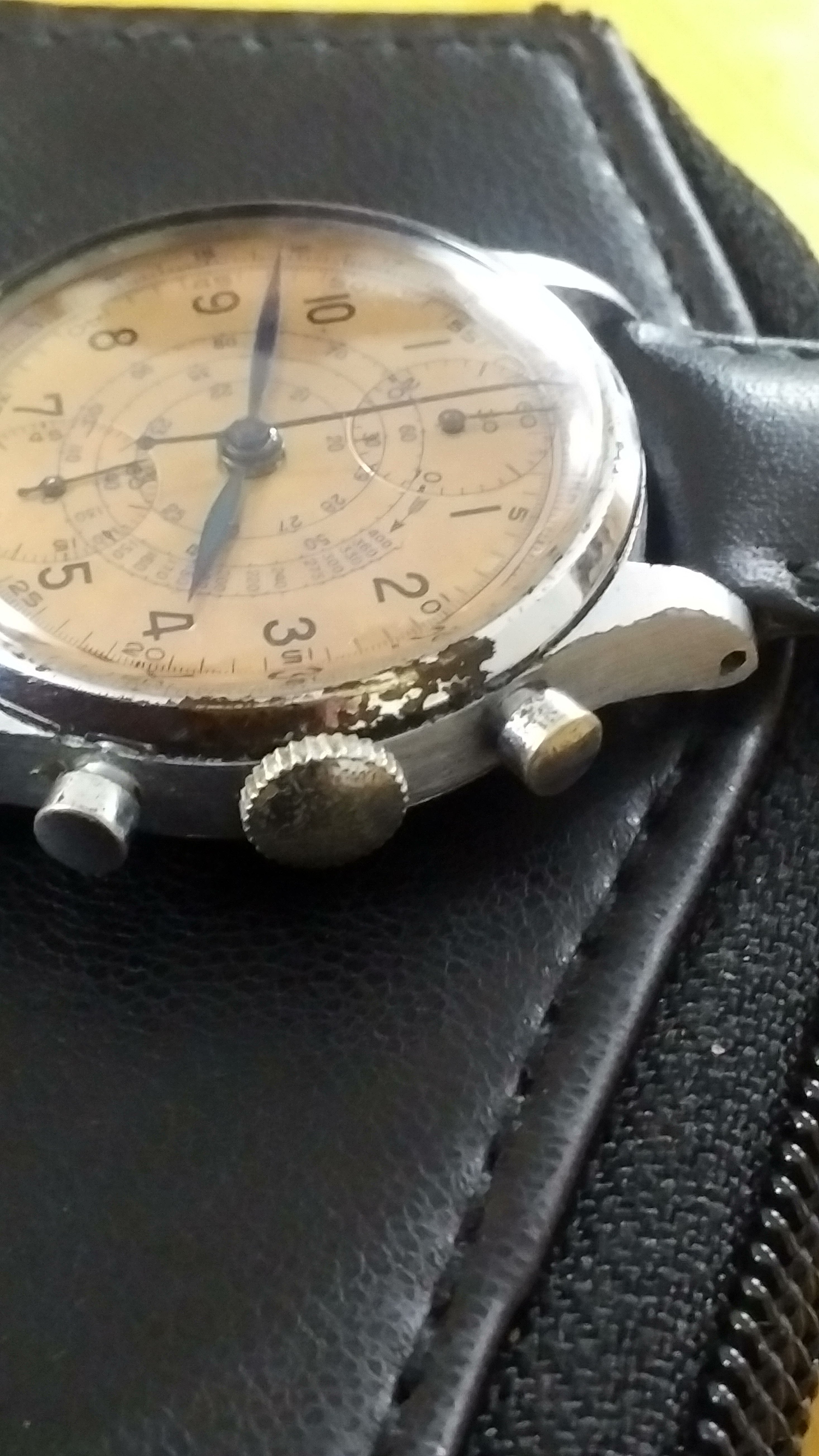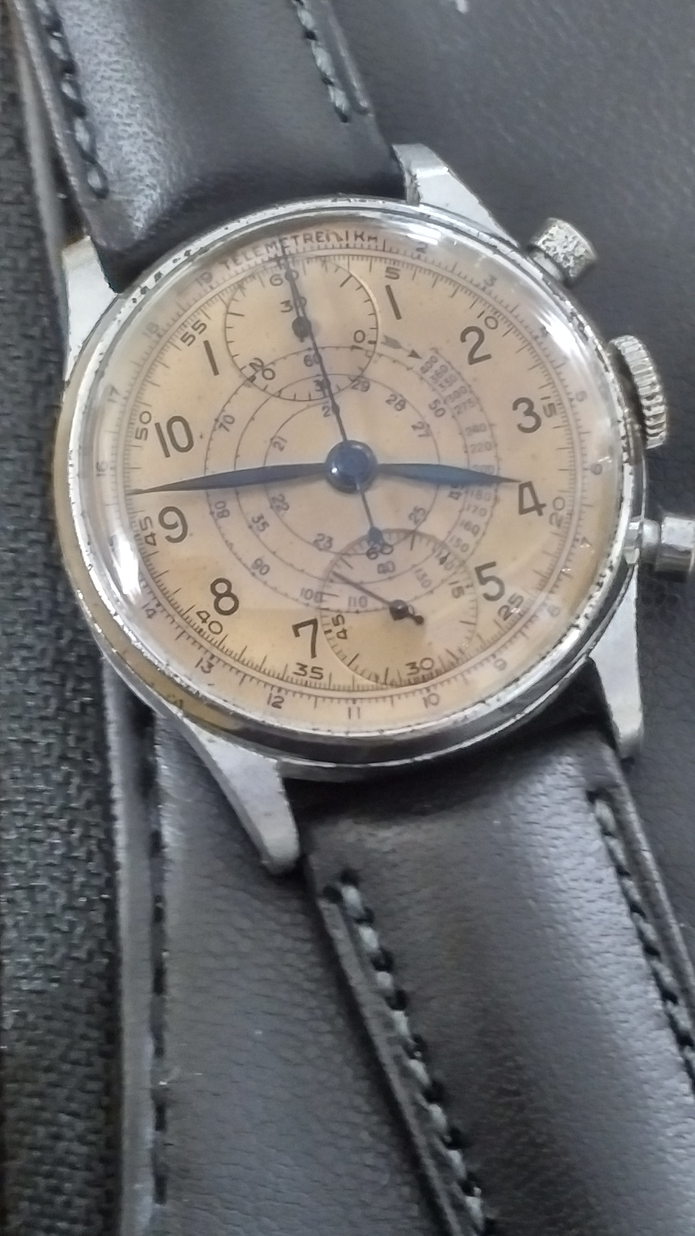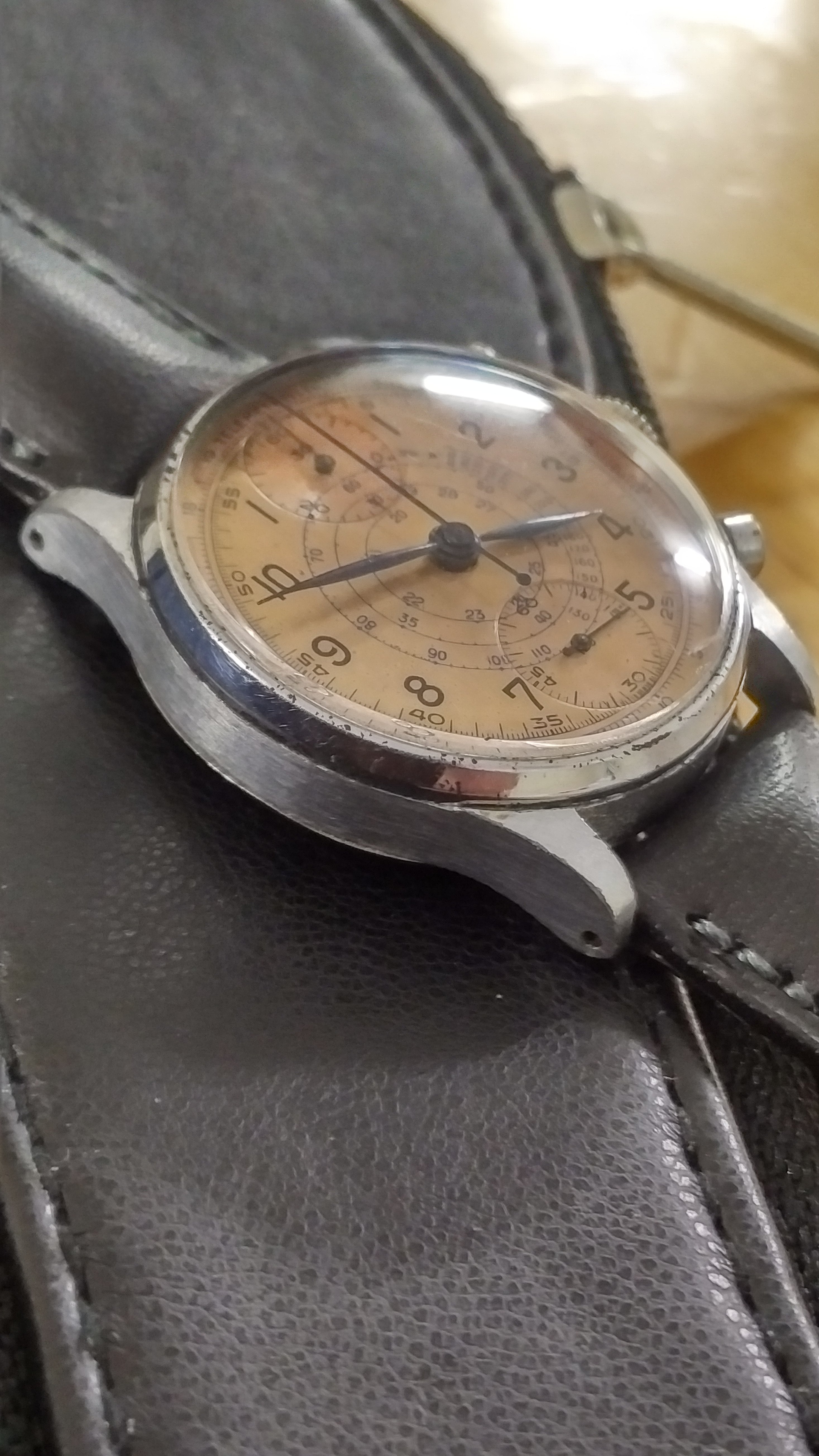 Breitling Top Time 2002, waterproof, circa 1967. The sunburst dial is flawless - all those scratches and marks are on the glass. One dealer looked at it, looked at me and asked "I didn't think you liked pristine dials?" .