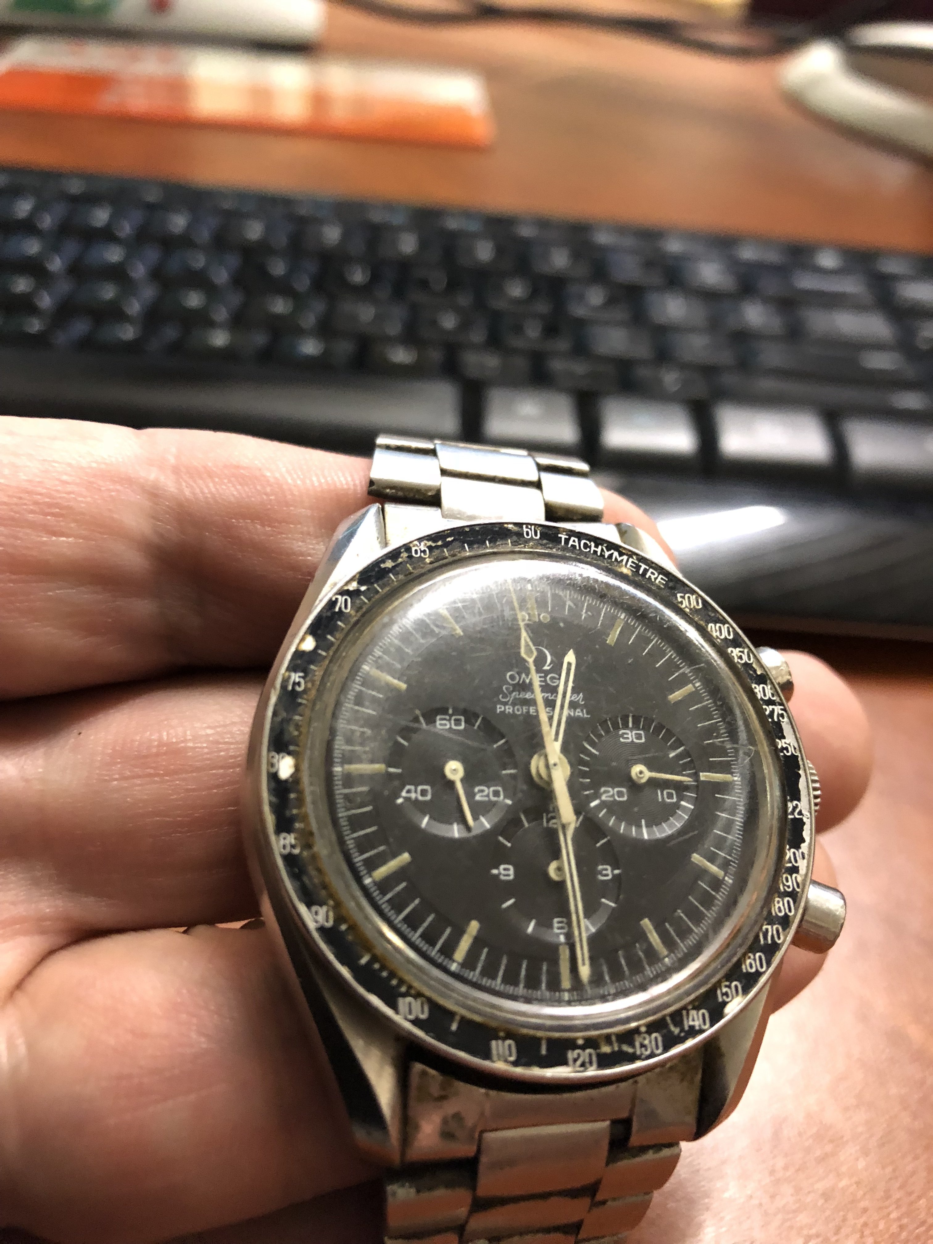 Usually I wear my watches. Buying it unseen I was surprised about the condition when I got it. "Sadly" it has springbars which can't be removed without breaking them (not fixed but they are tightly set) and the strap is old (but original) so either I destroy the strap to be able to wear it or leave it be and just keep it in the watch box...