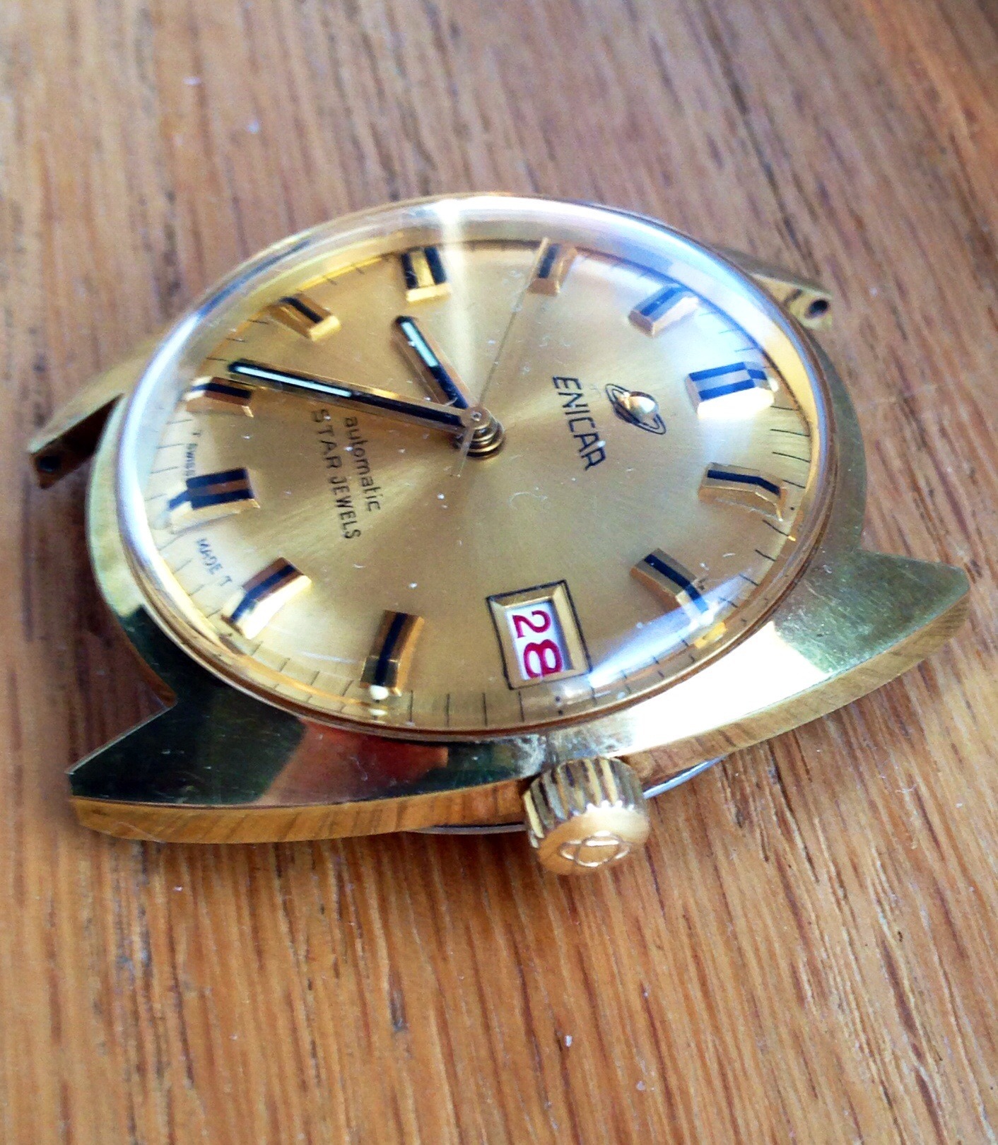Needed a "donor watch" for a work in progress (base caliber 165). So, I put a snipe on a "running" watch. The seller included a couple of photos with the listing which made me question whether this watch actually worked (or, not). OK, 50 bucks later all-in this watch shows up at my doorstep and it was a mess.