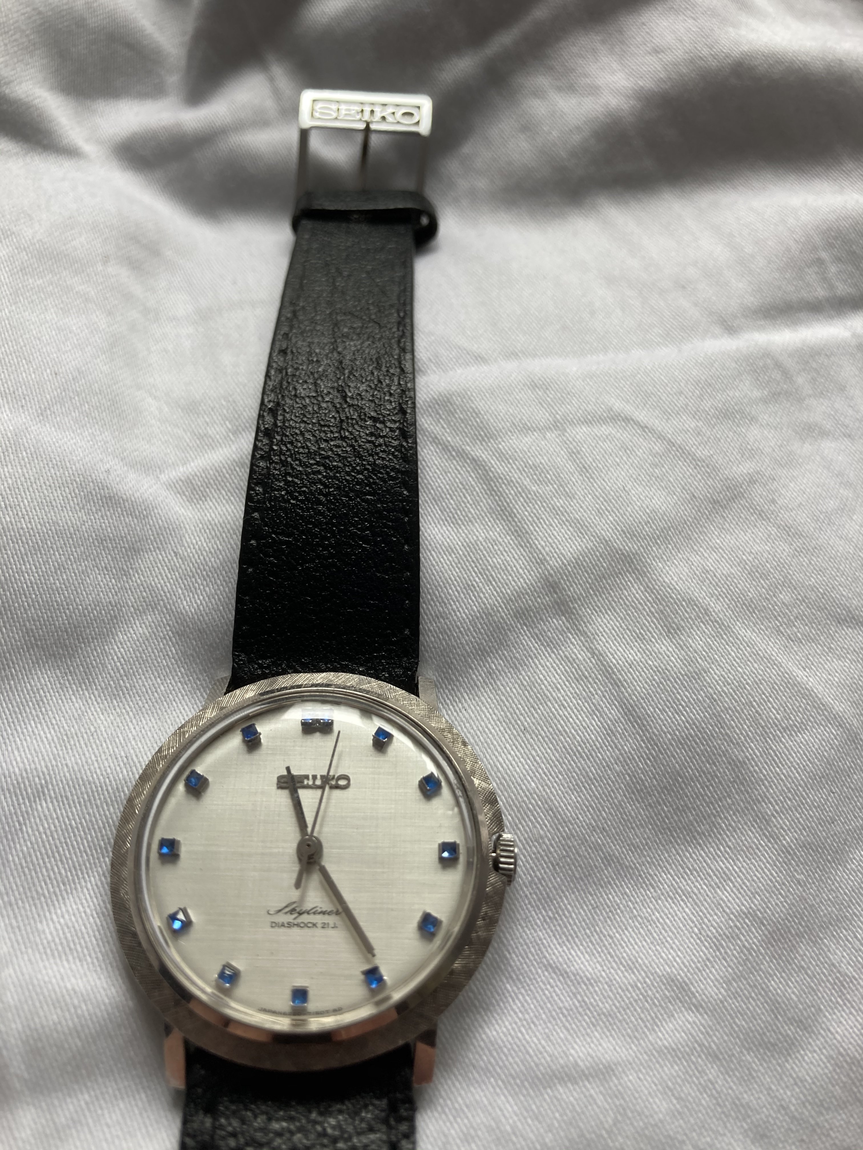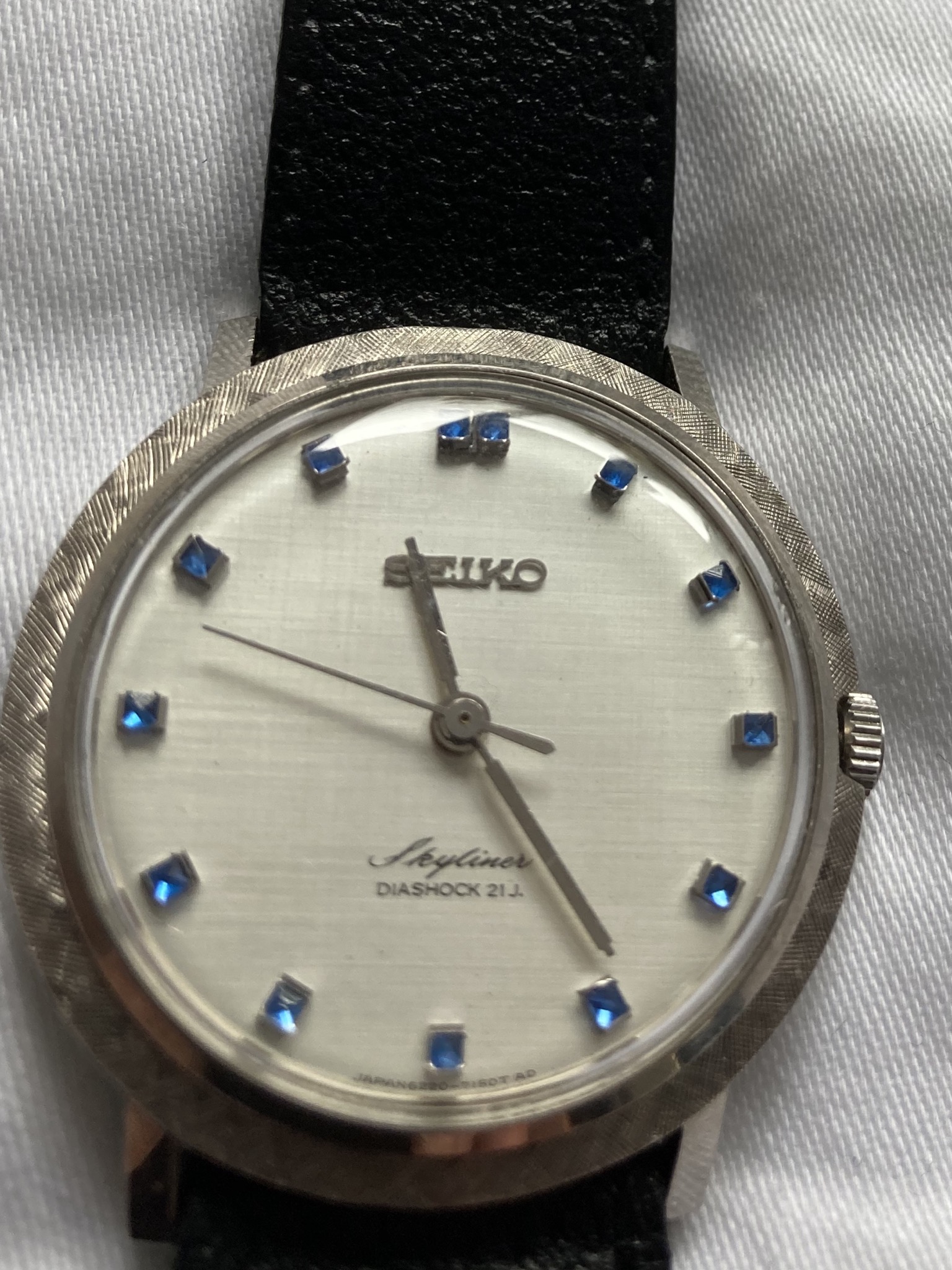 I was fortunate to receive this beautiful Seiko LordMatic 5606-7190 (1972) day-date with printed Roman indices on a light silver linen dial. The watch was shipped from Hong Kong on July 8 and arrived today, not too bad considering all that is going on with international deliveries. I think this watch has an incredibly beautiful dial. What is nice is the quick set day can be in either English or Kanji (Japanese) - so very cool. I am sooo pleased to add this to my collection. Thanks for looking.