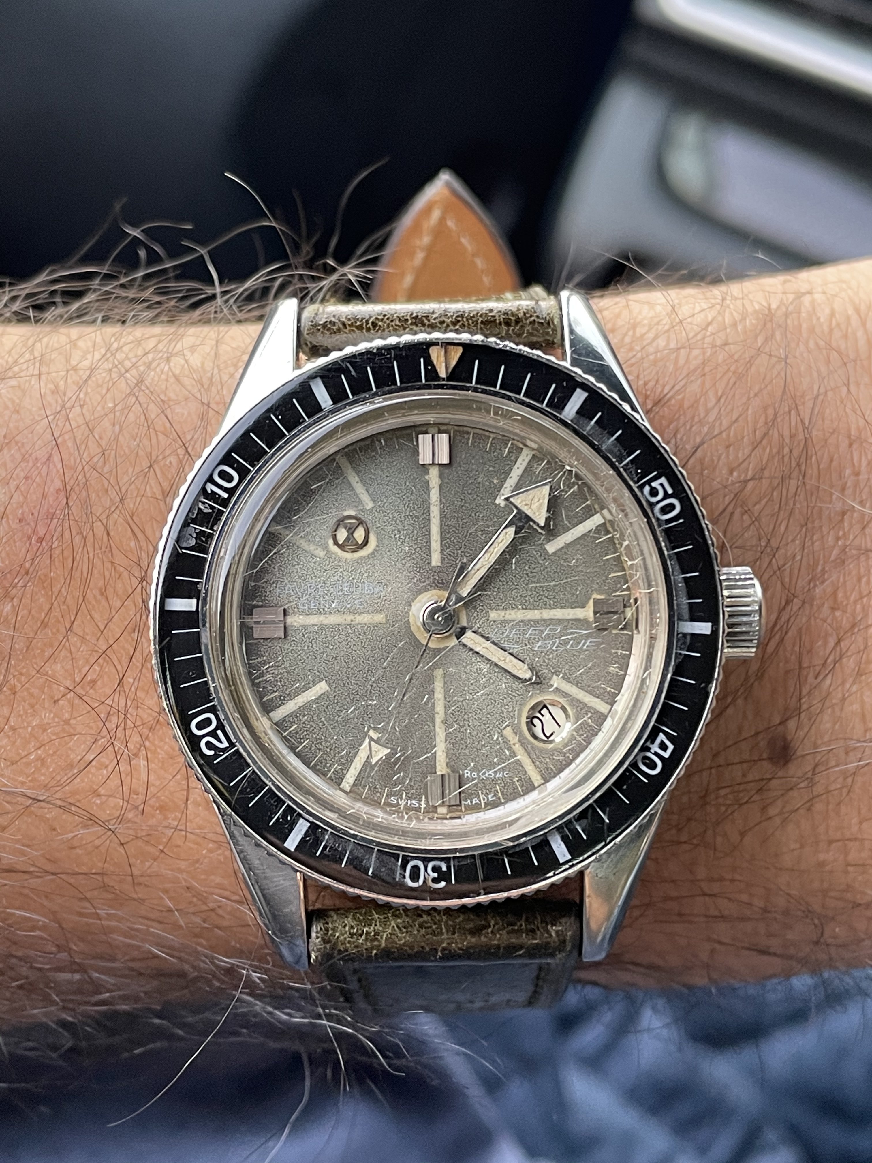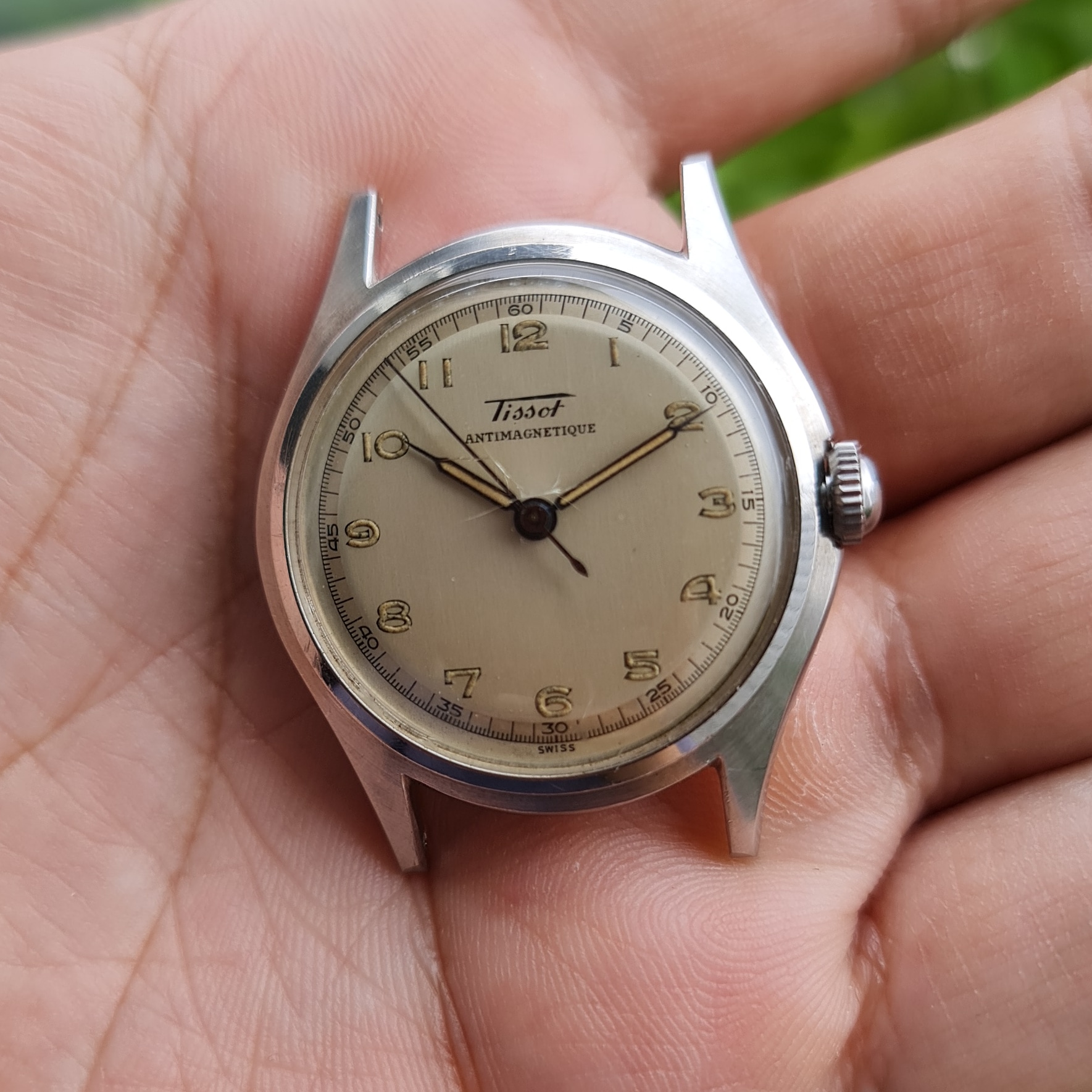 33-34mm Tissot Antimagnetique, currently at service to replace the cracked crystal and movement check. The dial and hands really rock