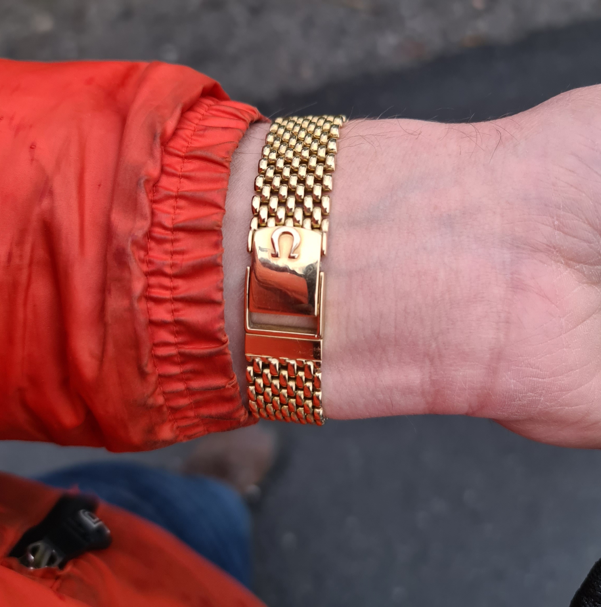 Fitted at the jeweller's where the watch was purchased as a cheaper alternative to the Omega-produced option. Omega-produced gold bracelets are fairly rare while these are much more common.