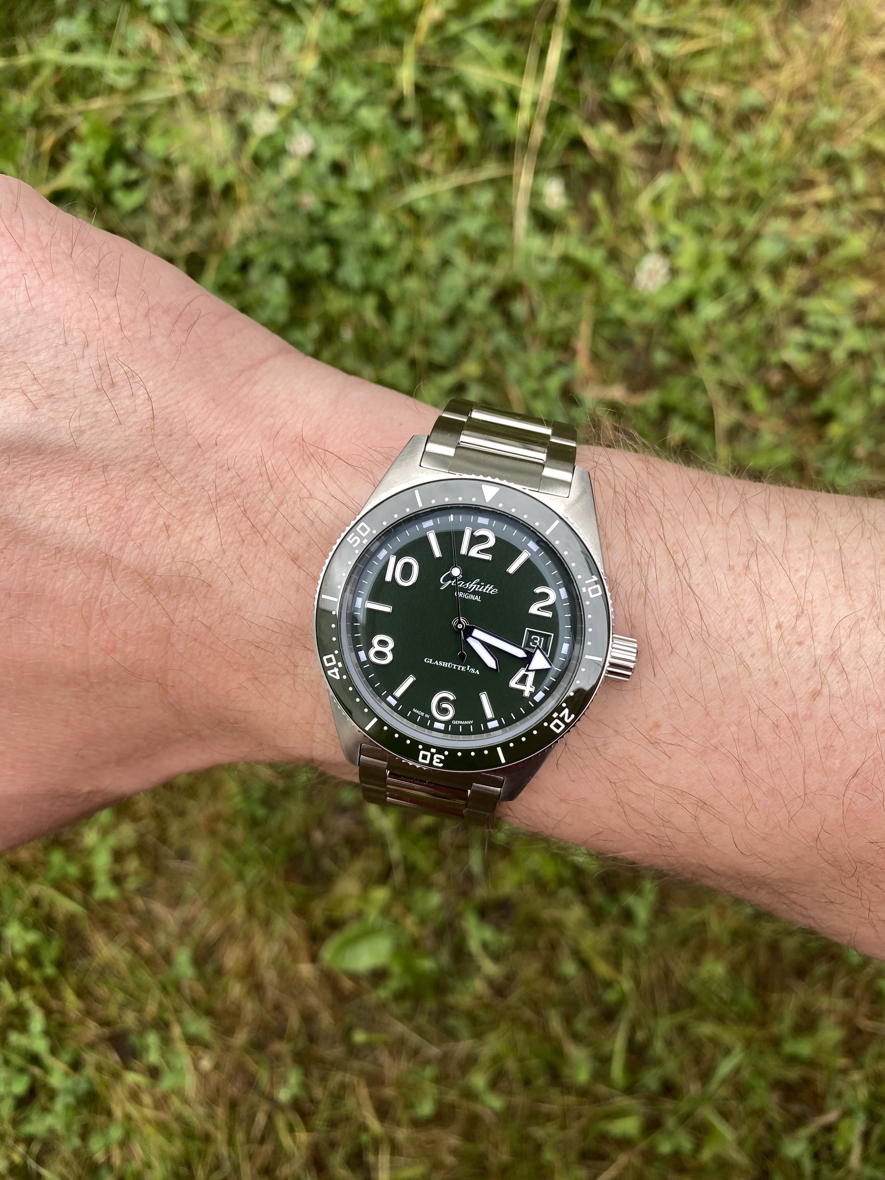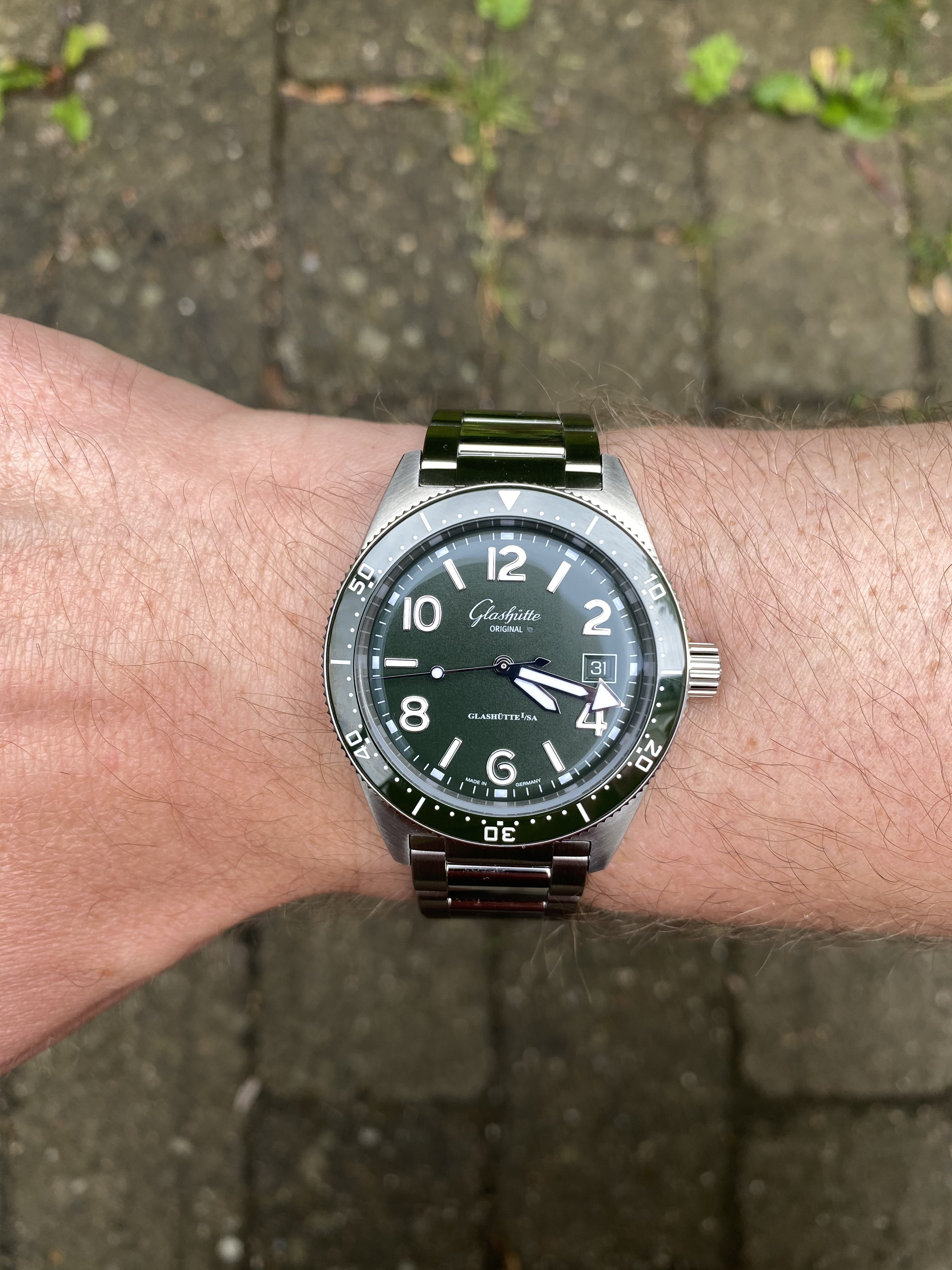 For about a year I have had my eyes firmly fixed on a Glashütte Original SeaQ. First I was in love with the blue but then this spring, the reed green SeaQ was announced. After 3-4 trips to the AD trying it on, going home thinking about it, trying it on again, going home thinking... finally it happened.