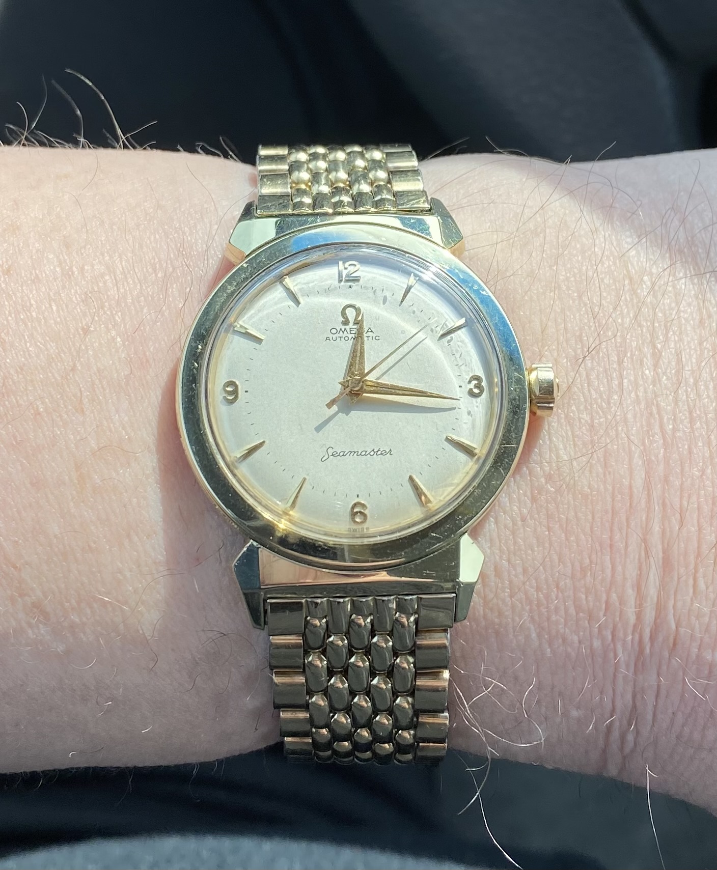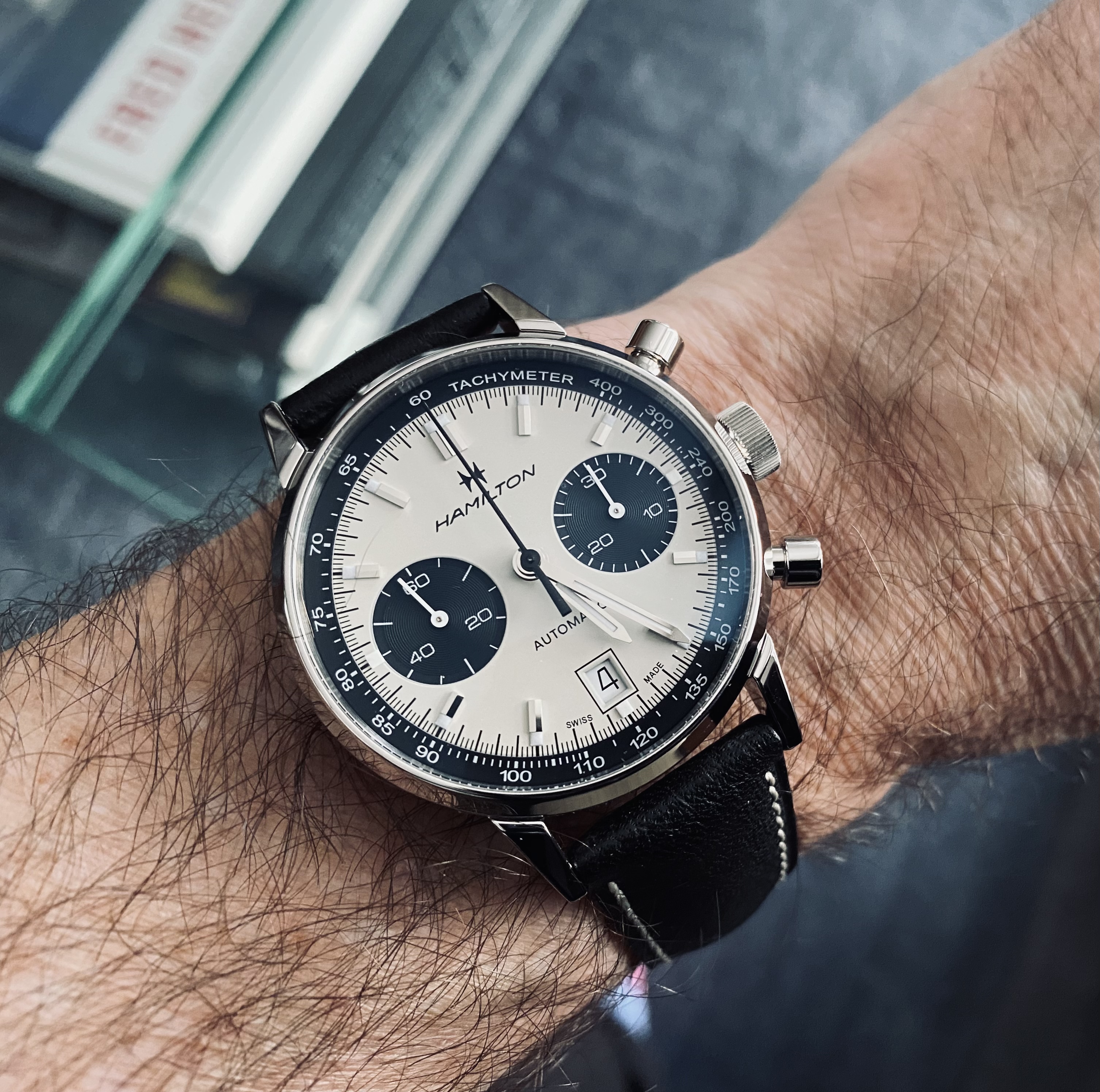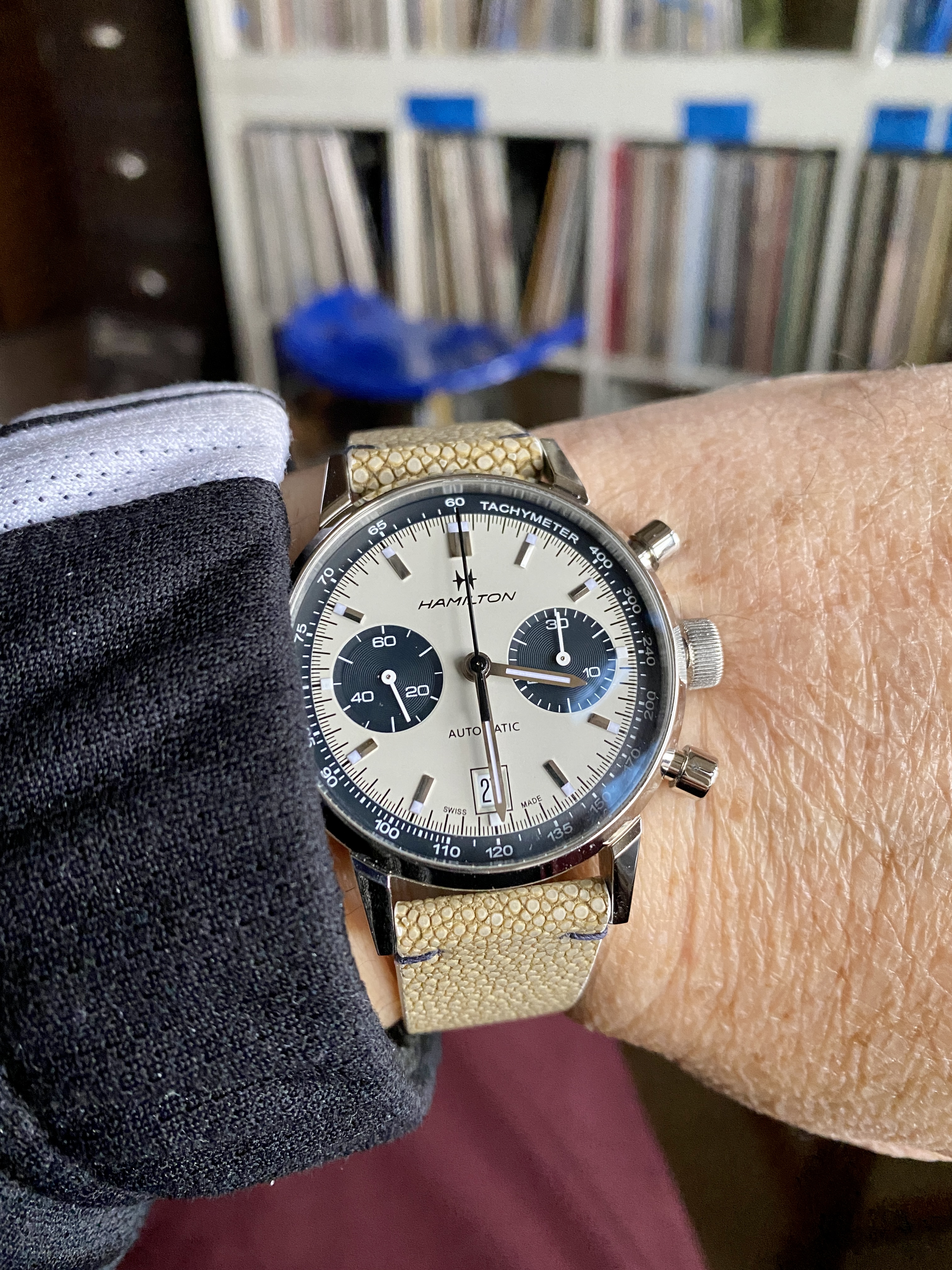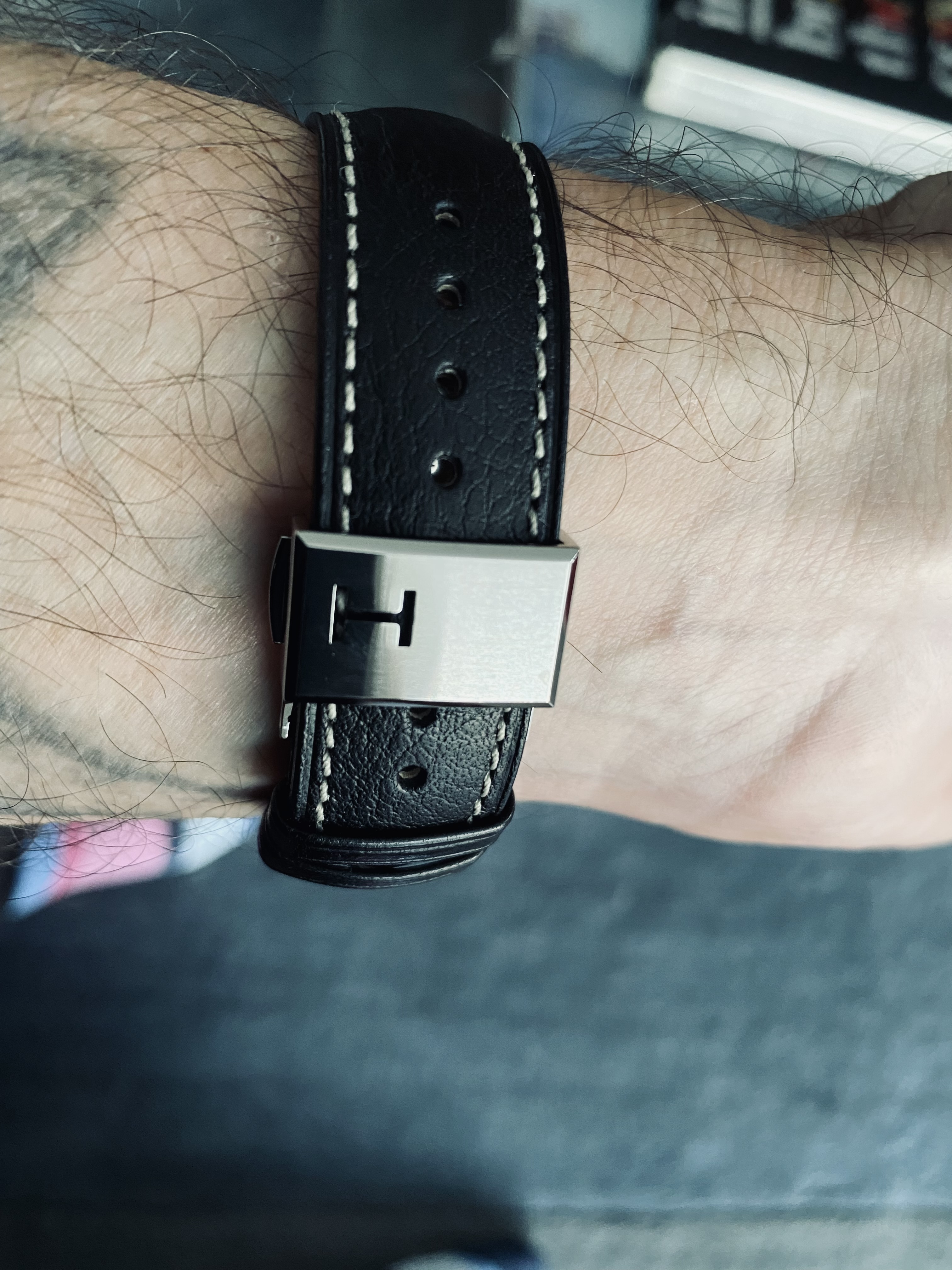 I bought this Hamilton a few weeks back. My AD ordered the correct deployant and gifted me the padded Hirsch strap. Both arrived today and voila! As much as I love the mesh bracelet, the leather is the way to go day to day.