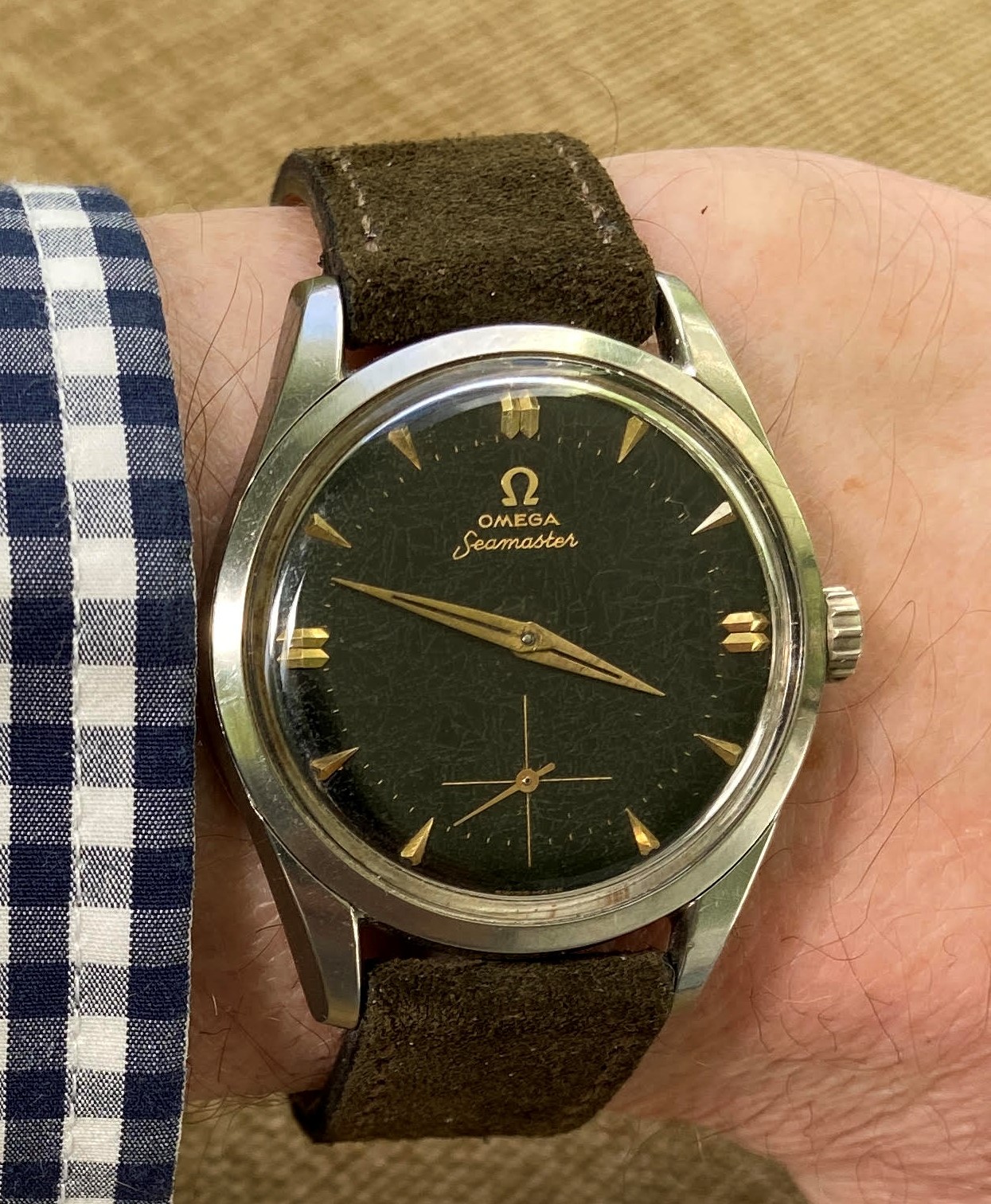 I bought a beautiful blue AT 38 about a month ago. But based dial colors in the rest of my watch fleet, I really wish I’d gotten it in white. The AD threw in the rubber deployant strap - since unworn, as I’m between holes.