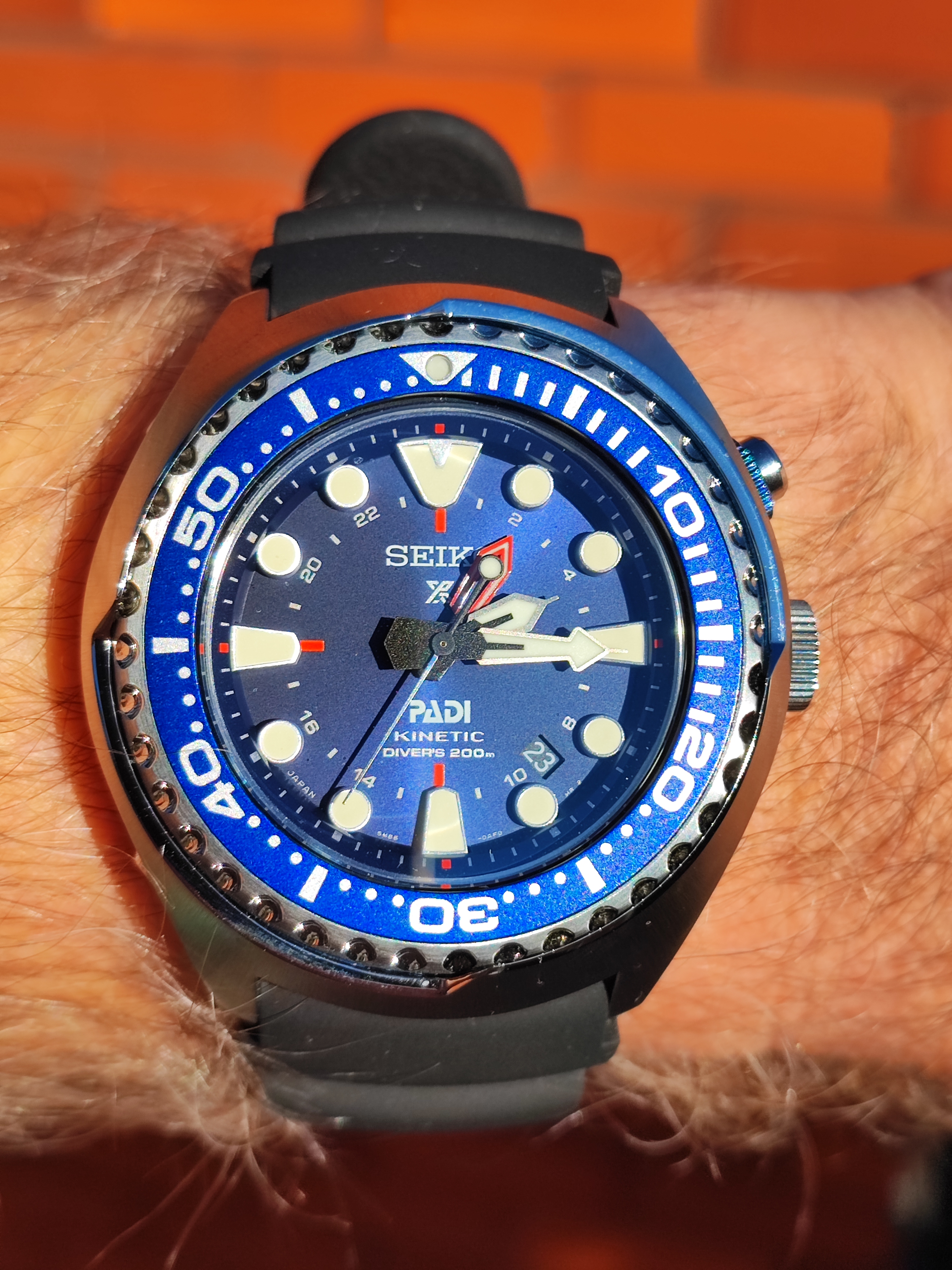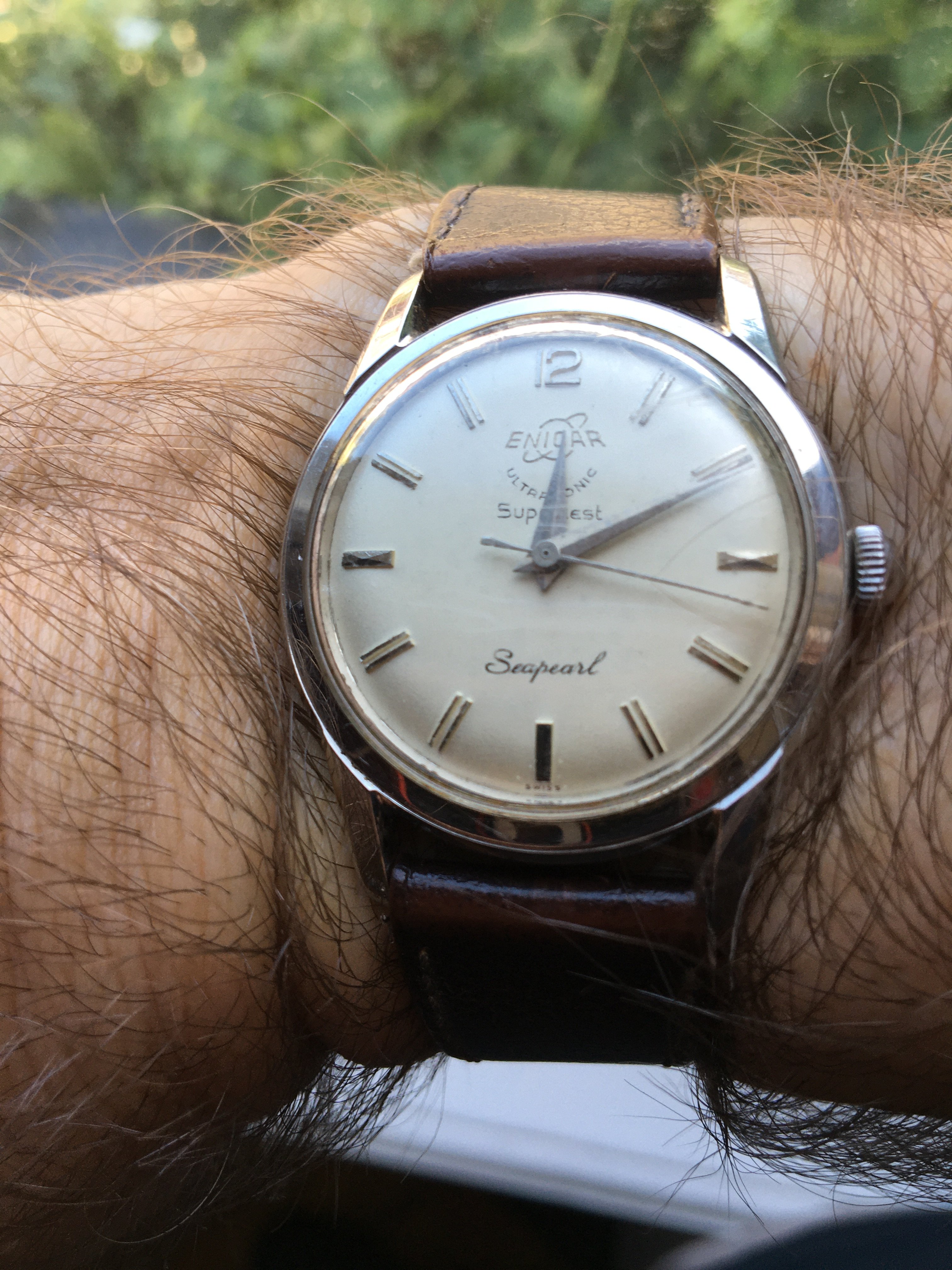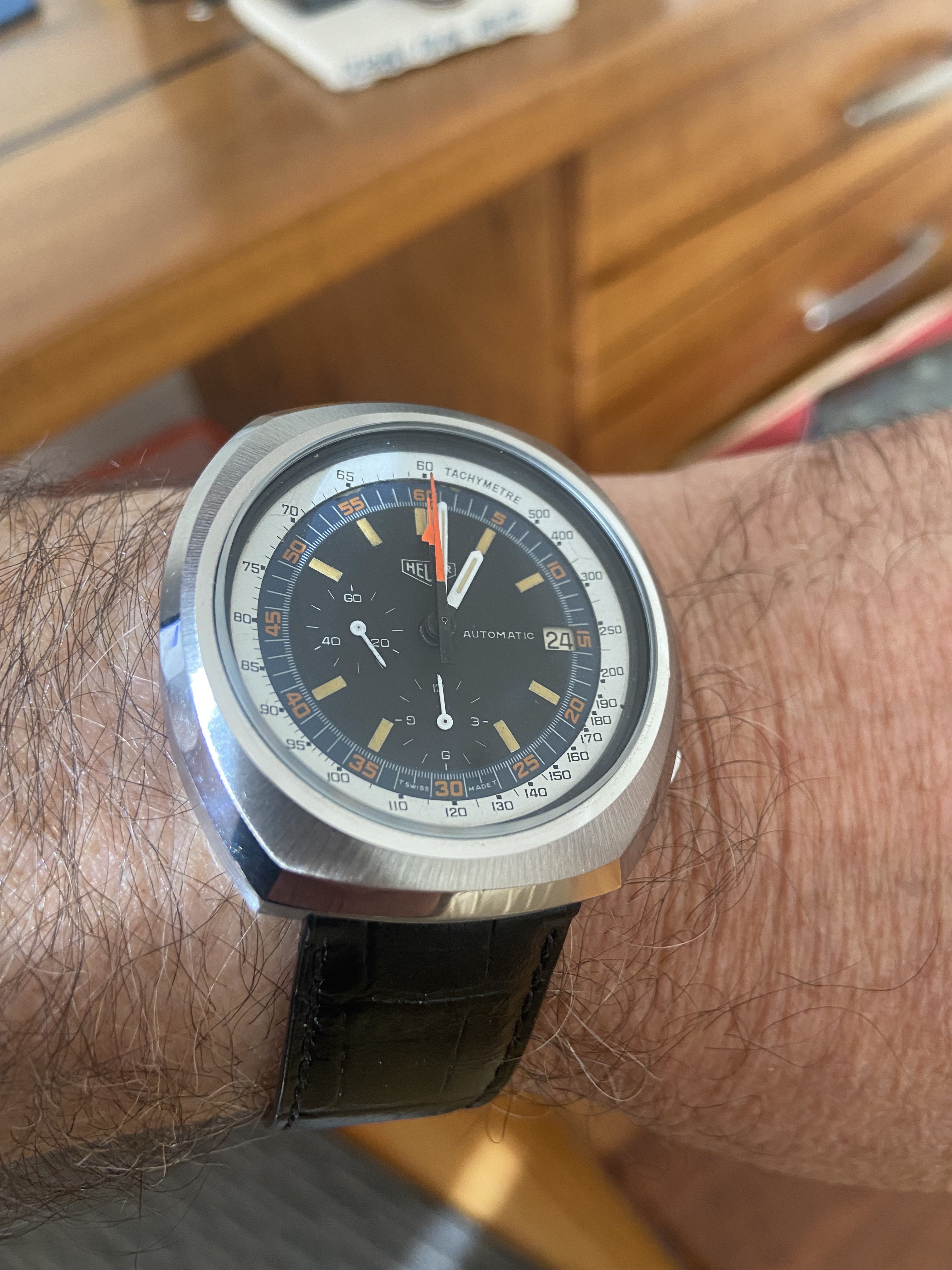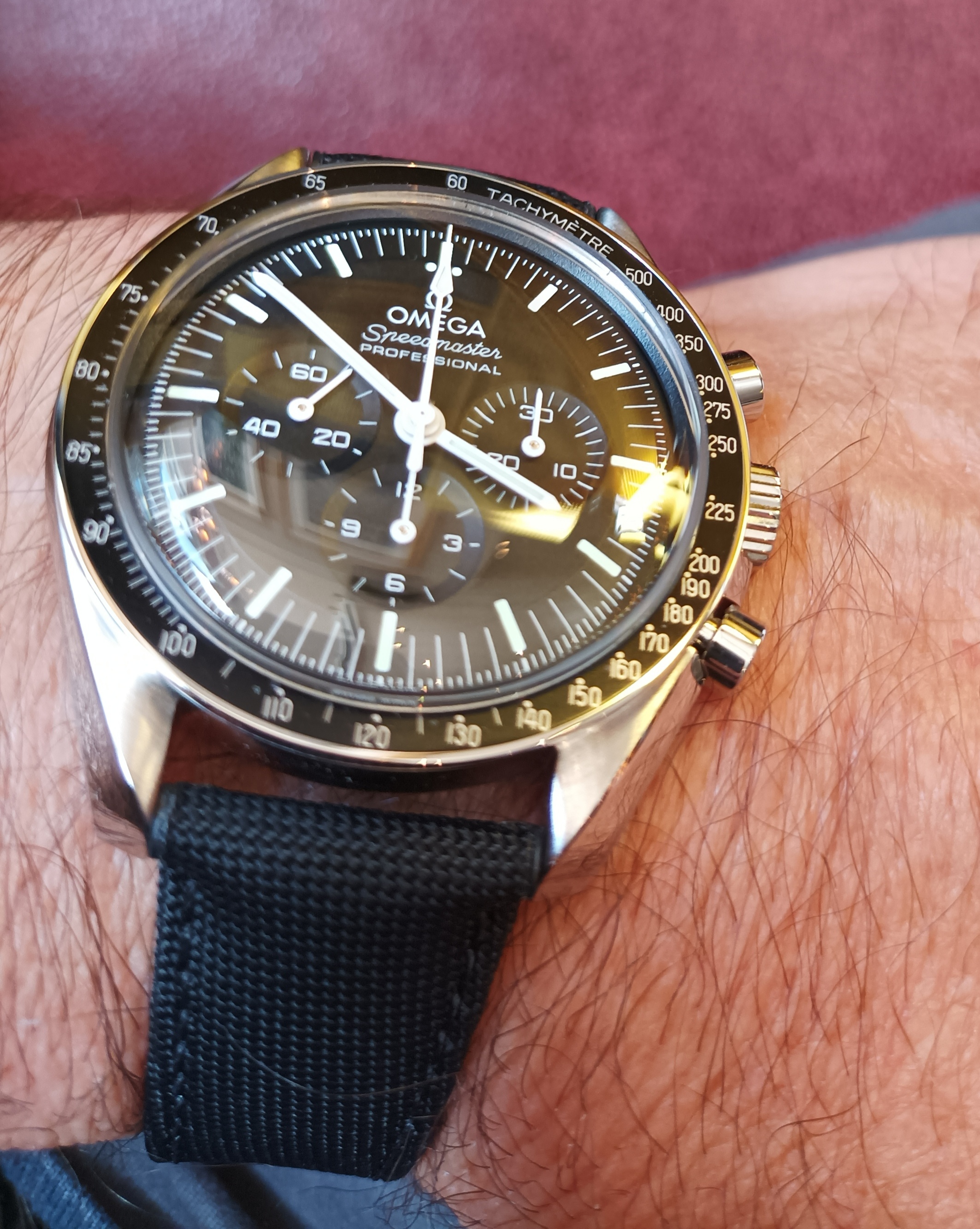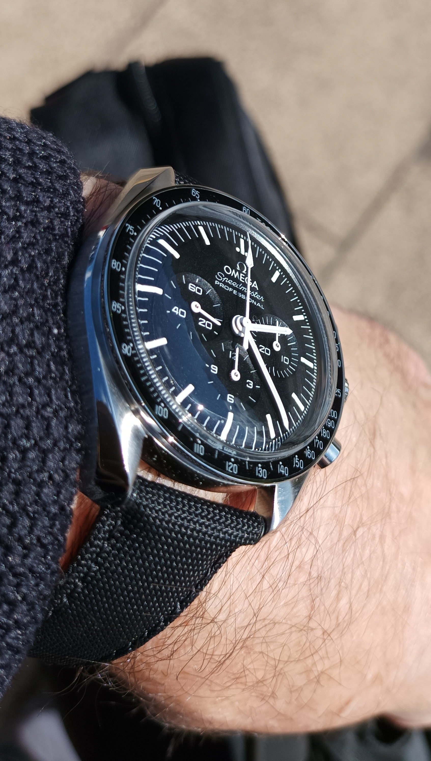 A black honeycomb seamaster - just after I stopped to actively looked for it, it popped up! Tried to show the pattern to you, which is quite difficult with the light.