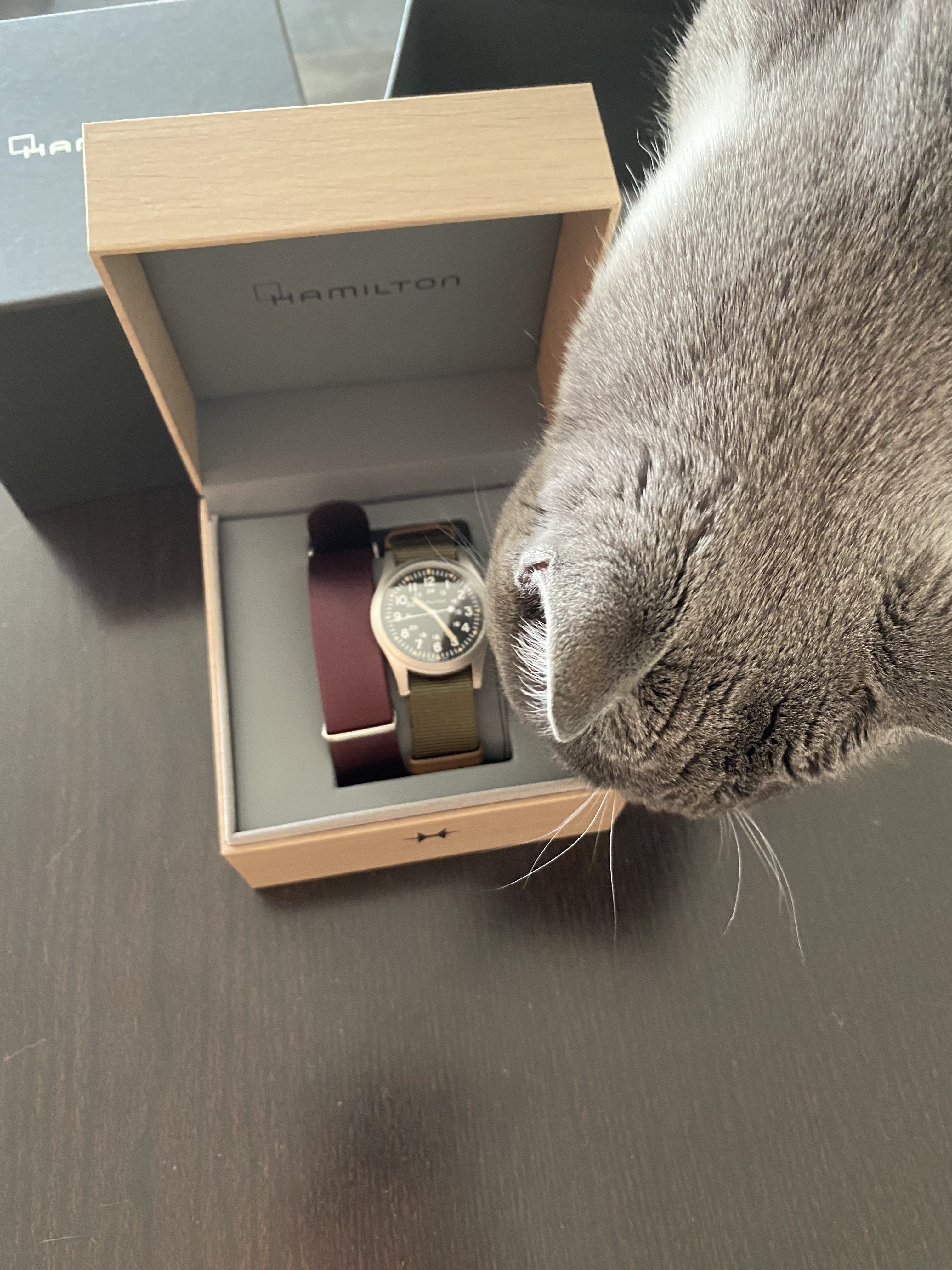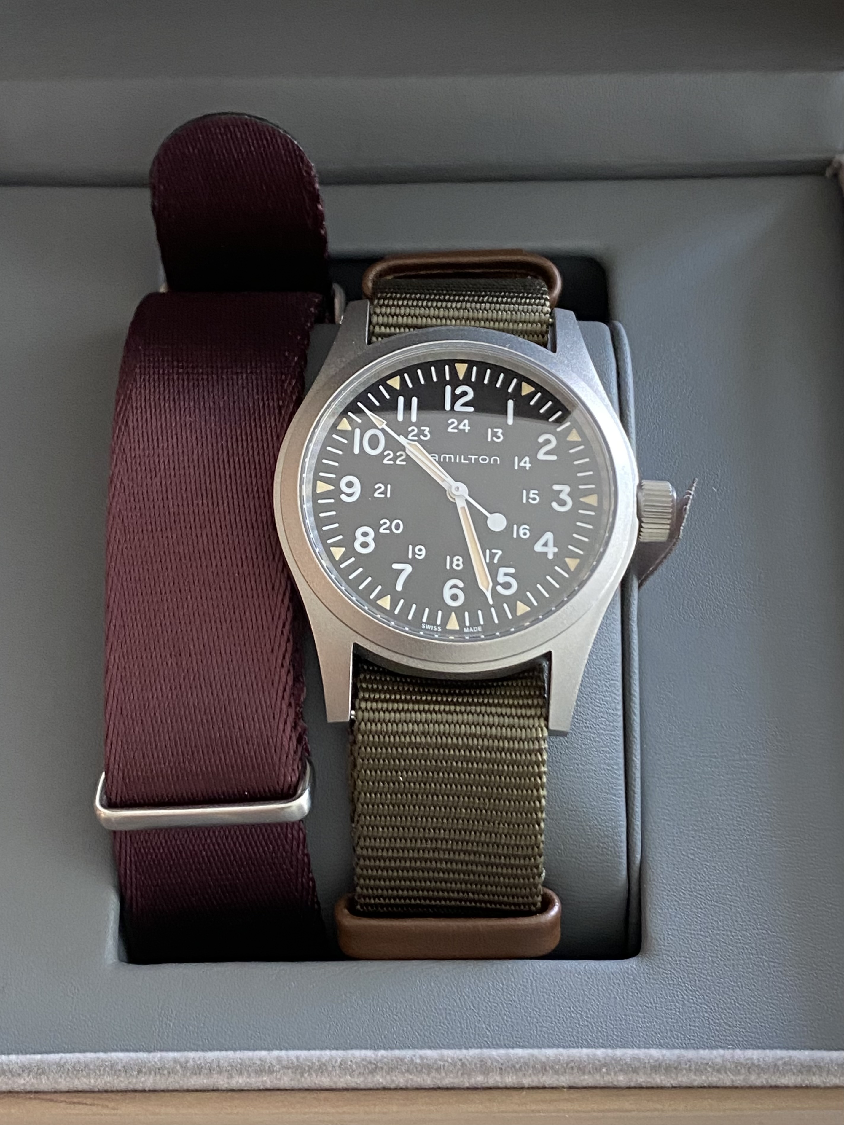 My wife and I walked into my favorite AD the other day. She really liked the Hamilton Field Mechanical 38, so I bought it. Since our anniversary is coming up, why not snag her an early gift? Presto seems to like it, too.