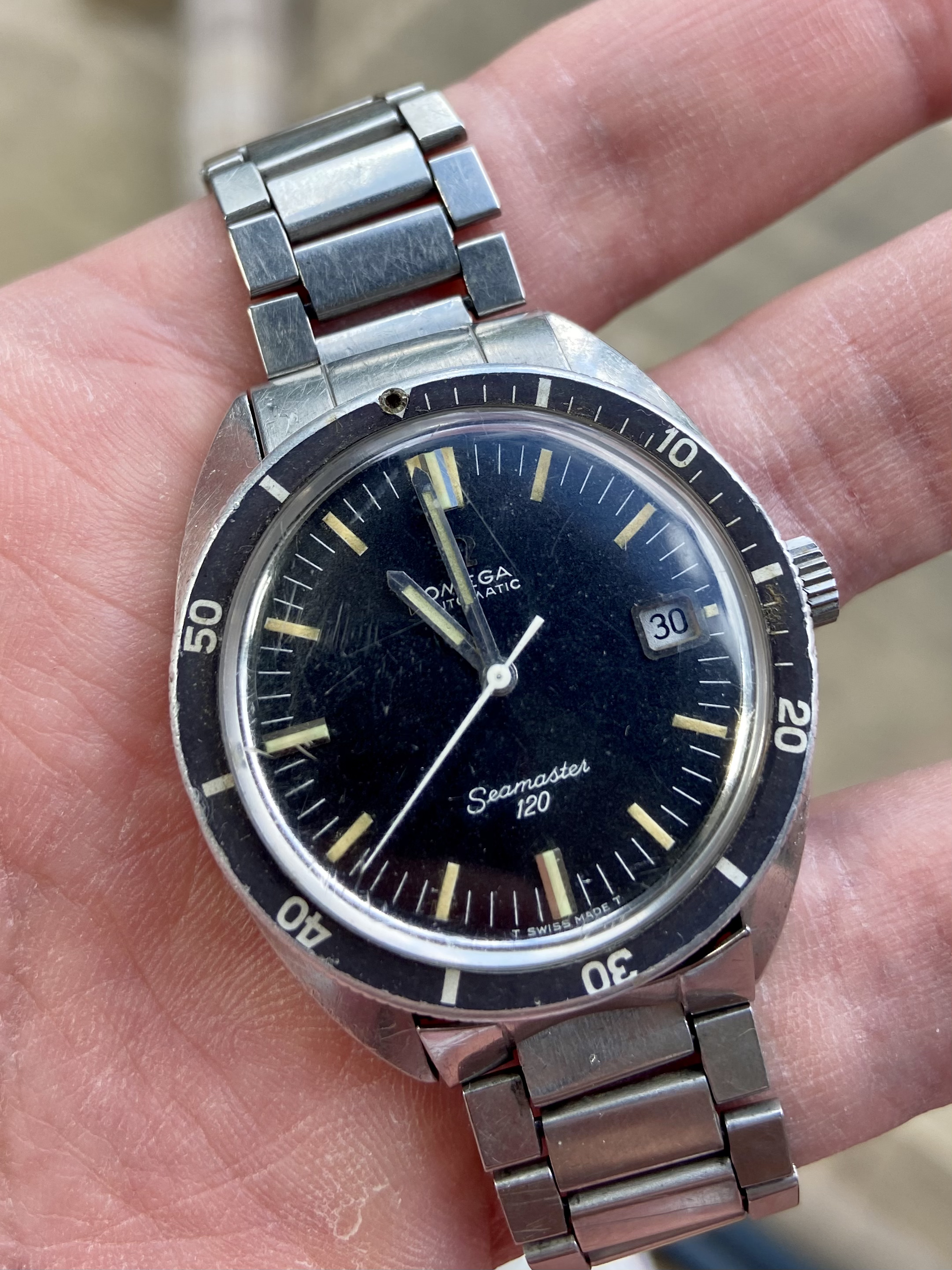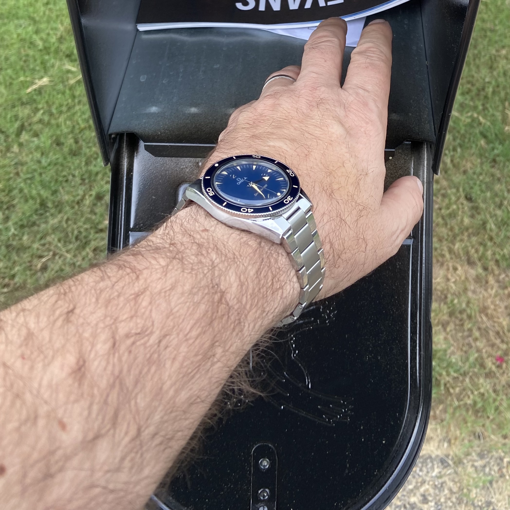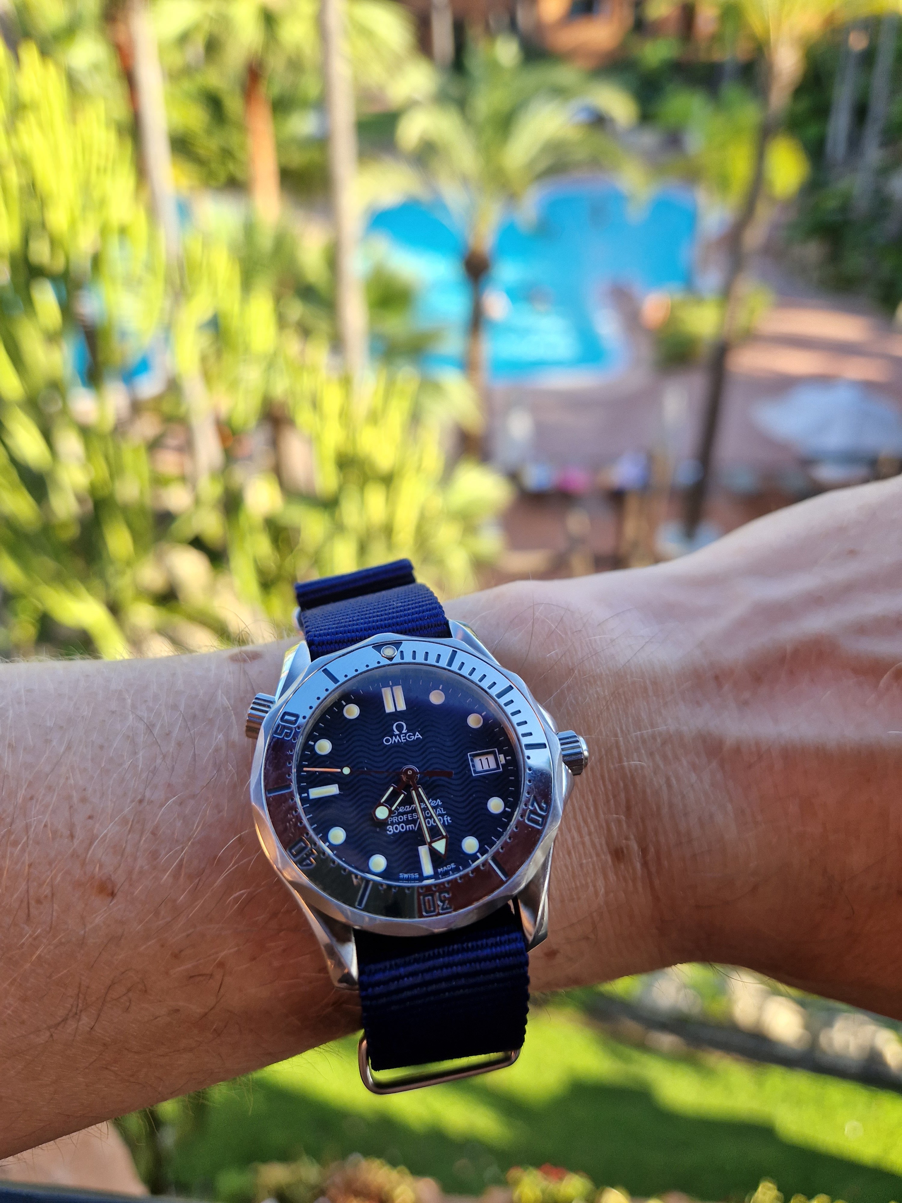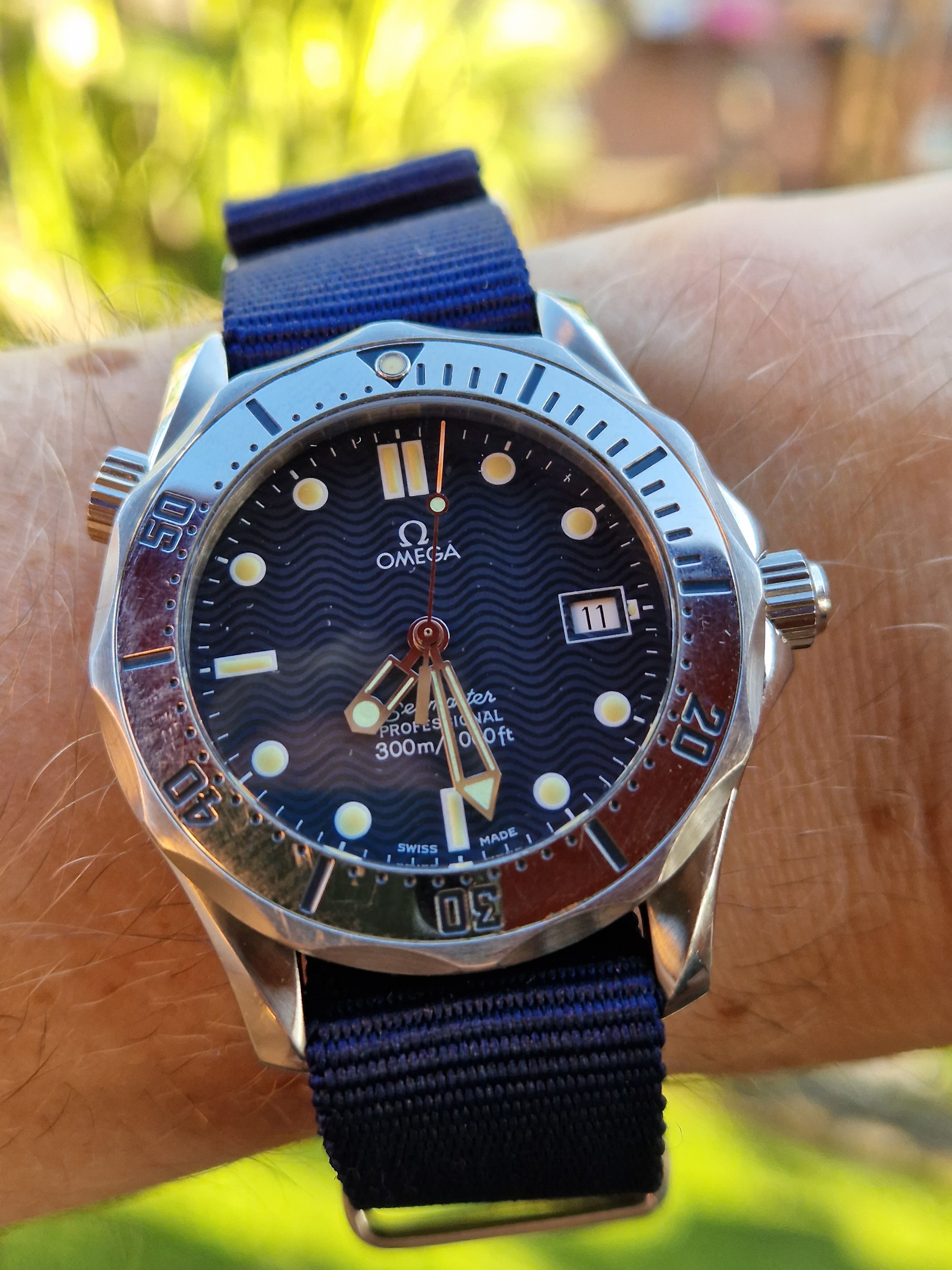 My first Omega was a Seamaster from 2011 (2221.80.00, which looks like the Goldeneye bond watch). I've worn it with pride for years, but then I got into vintage watches and accustomed to the smaller sizes. Still- I was missing a daily beater that I could wear all summer here in Barcelona, no worrying about theft, dents, water, etc.