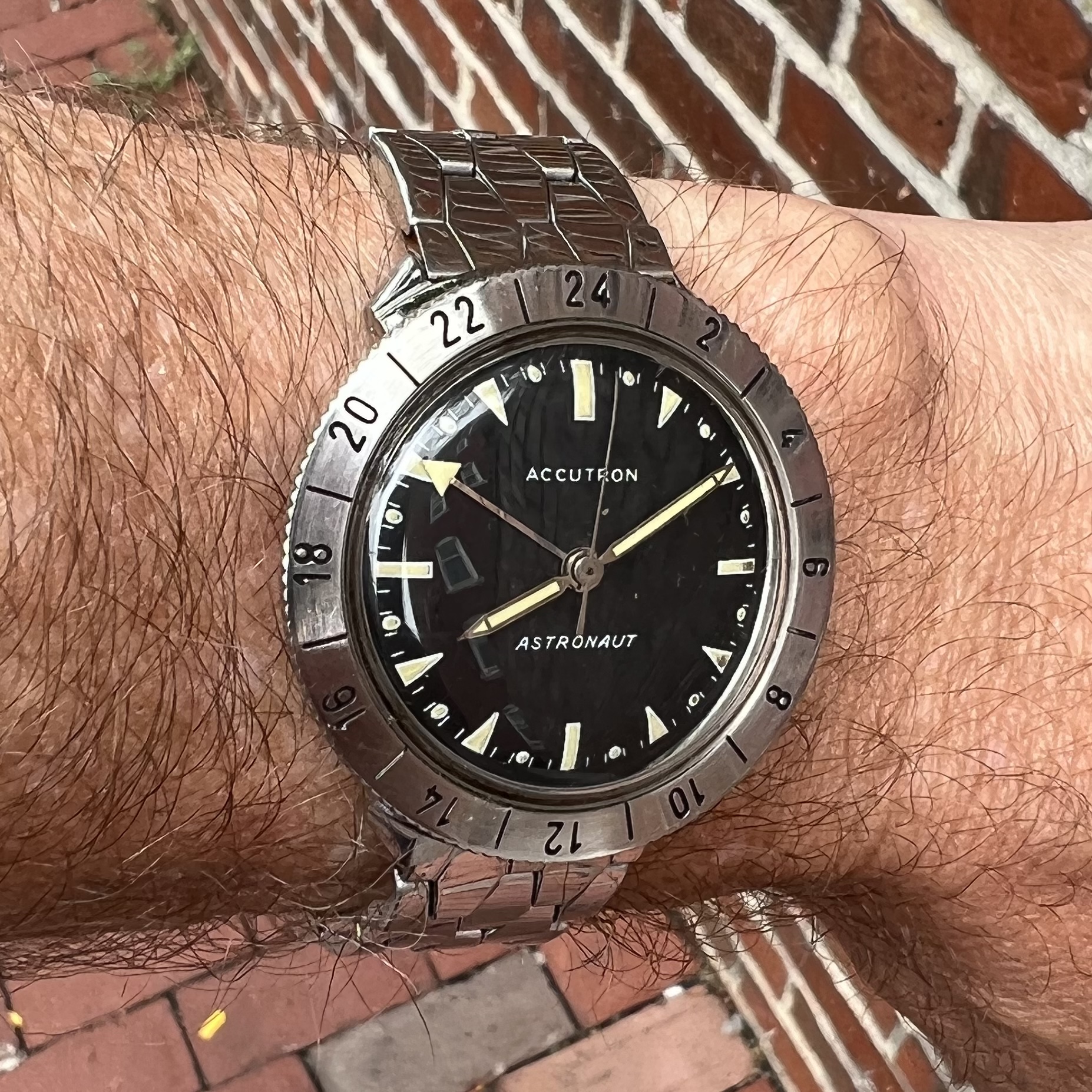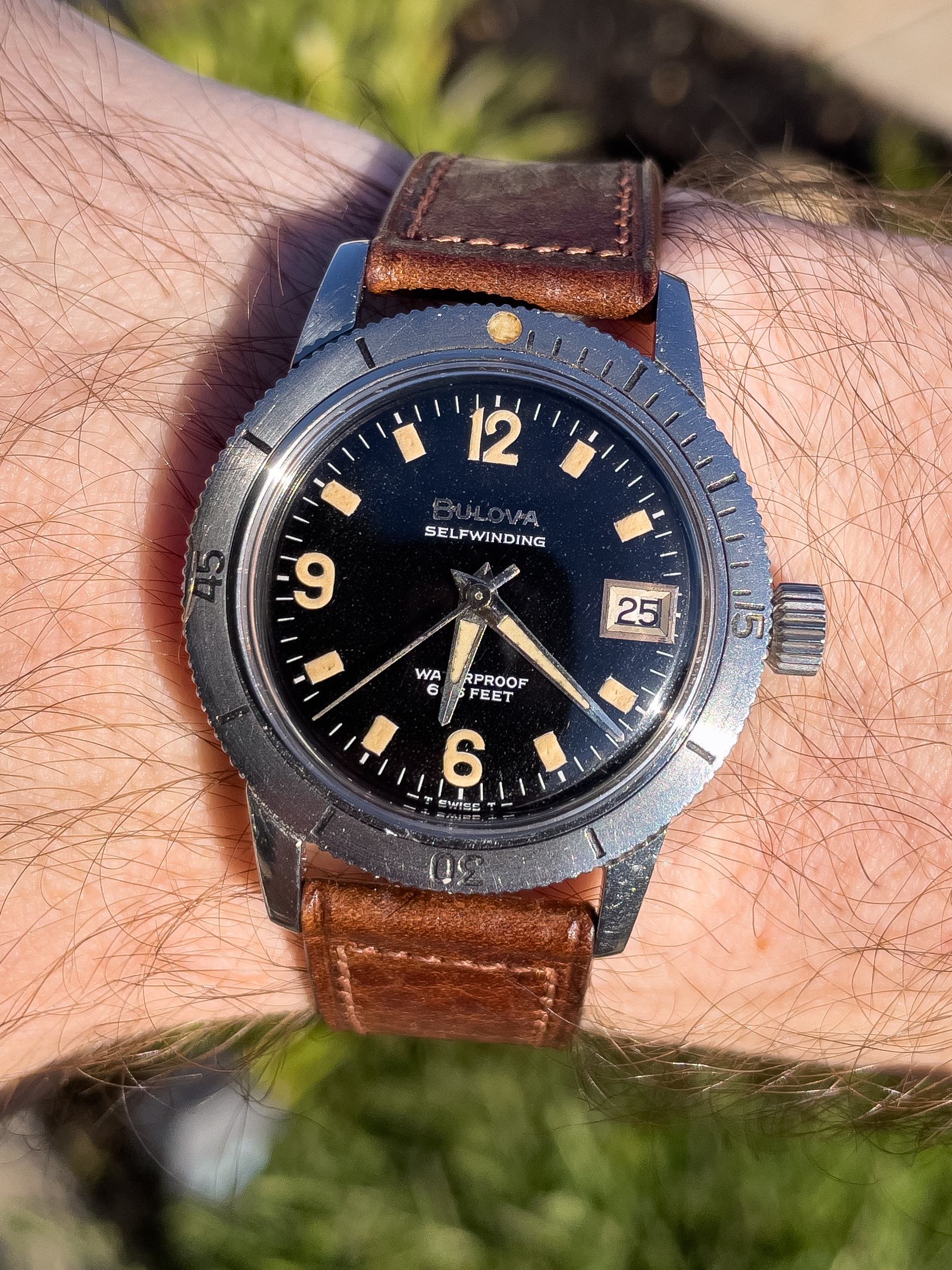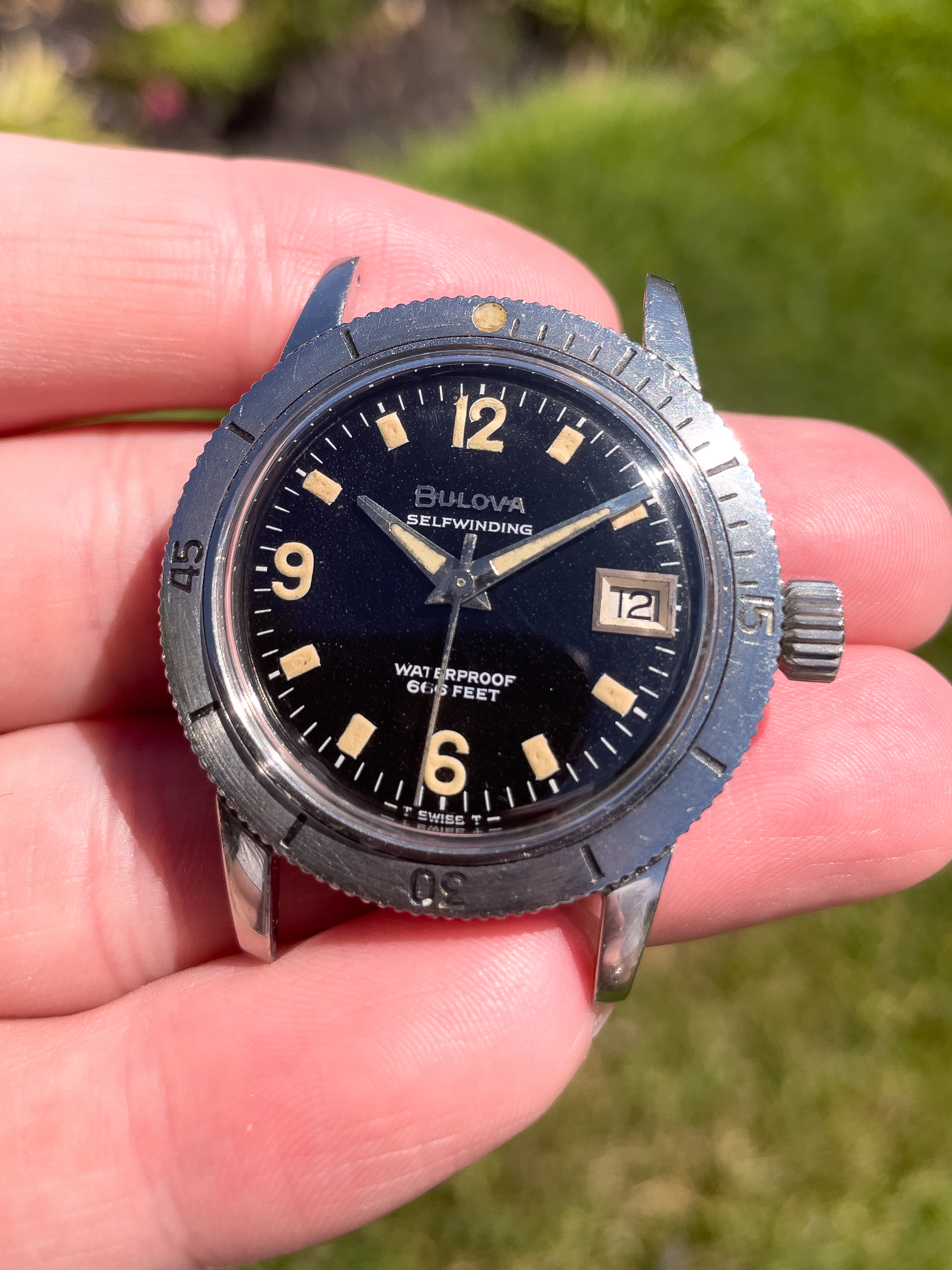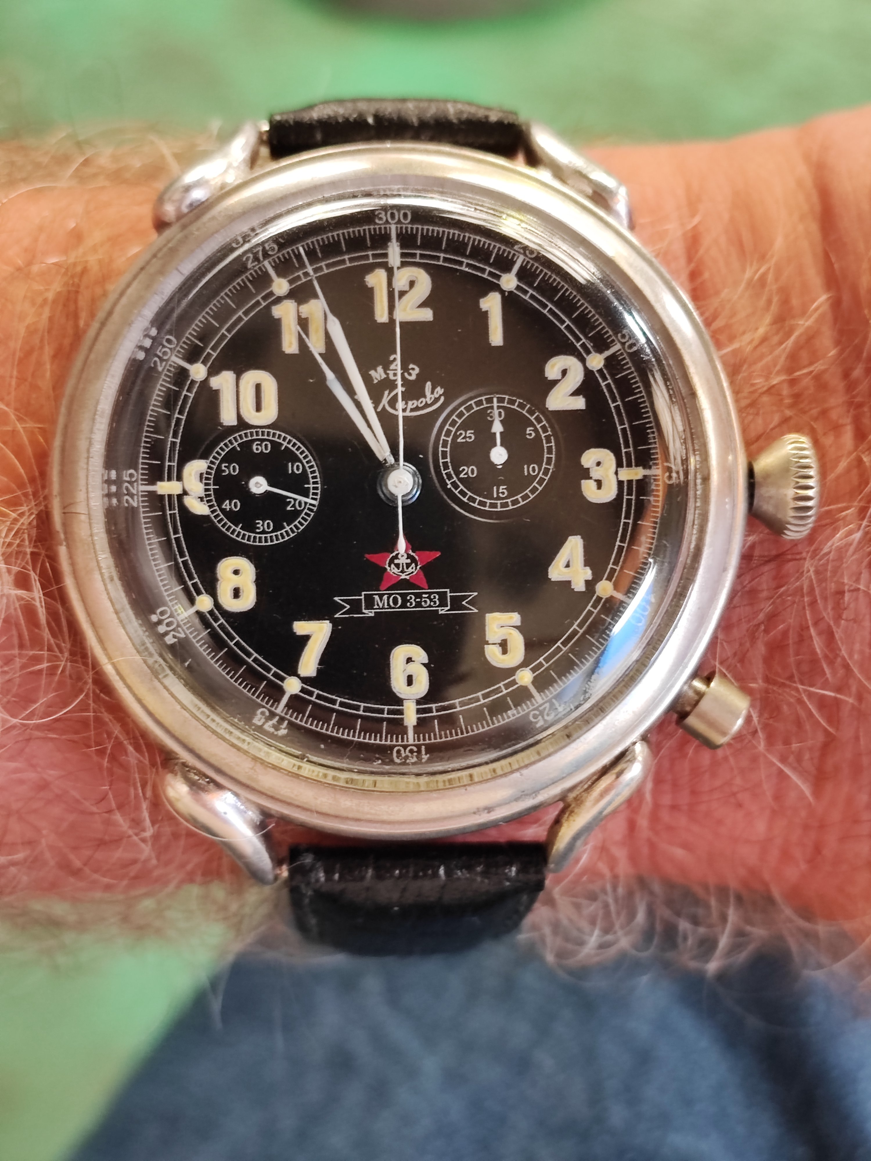 ·I found this one in an antique shop recently and it was cheap enough to take a gamble. Normally, I would label it fake based on the hands and appearance of the dial, but the lume burn is puzzling me. Also, we took it apart in the shop and the dial was quite patinated from the back and all seemed to fit well and was consistent. The movement is correct