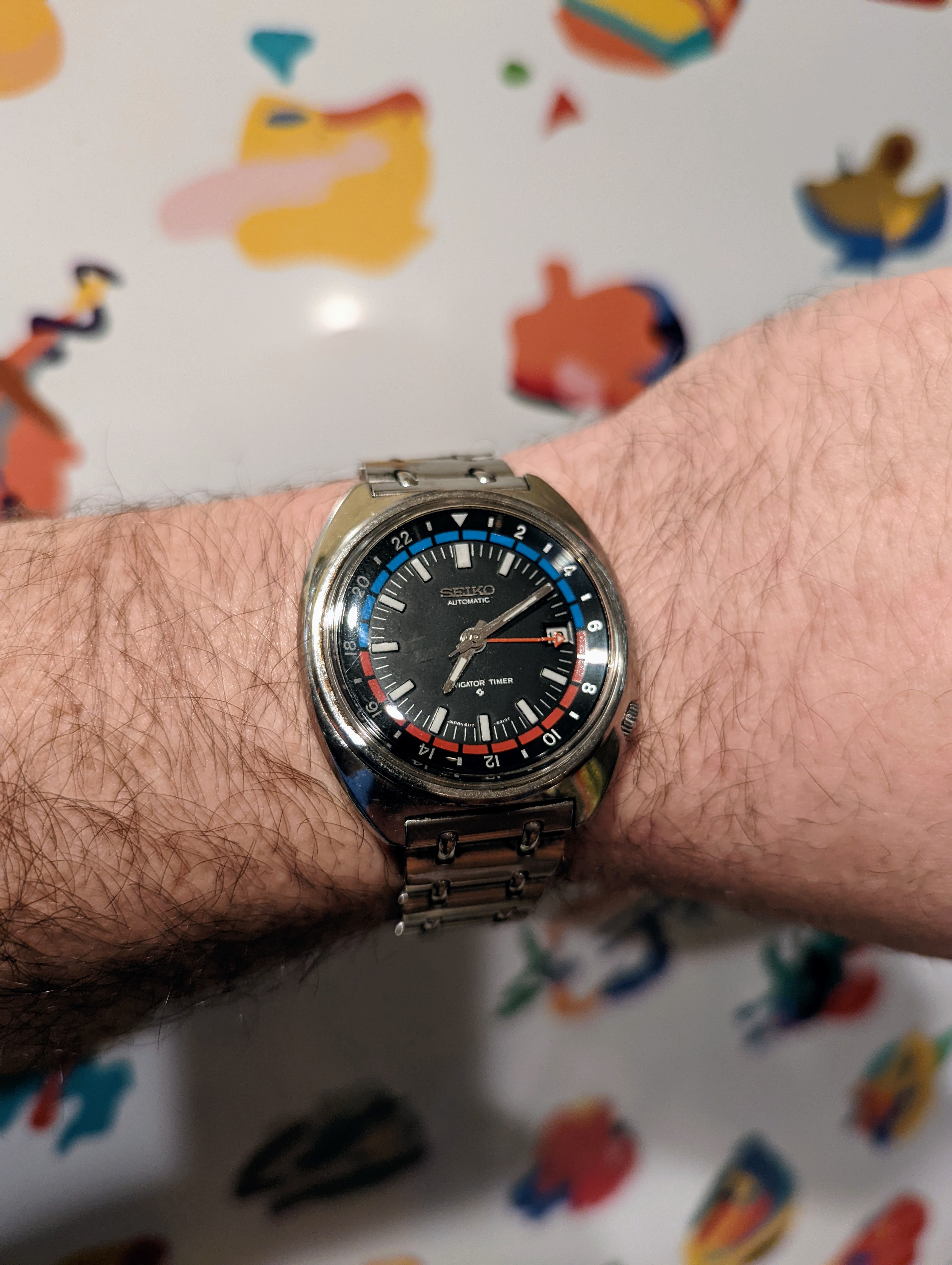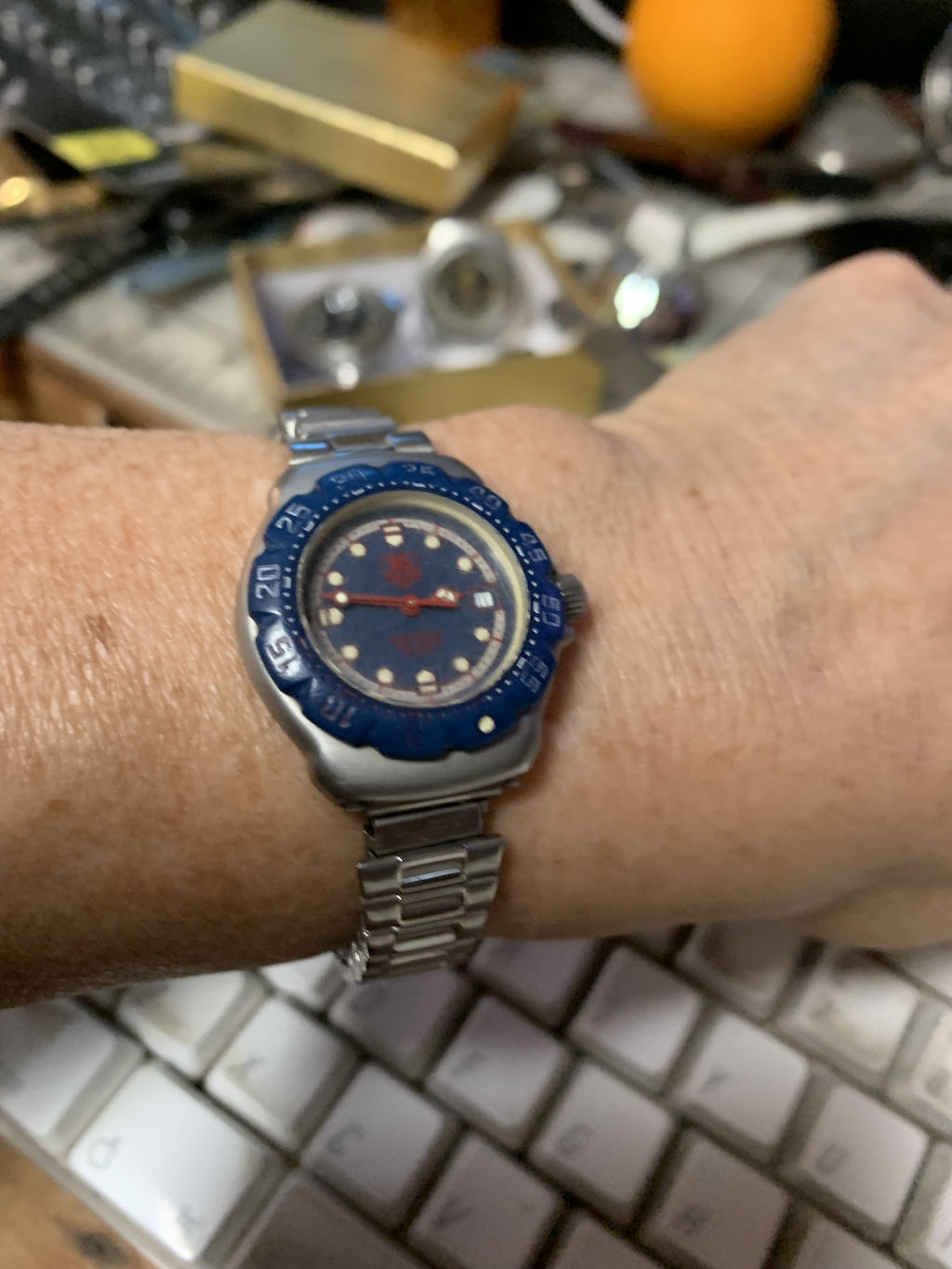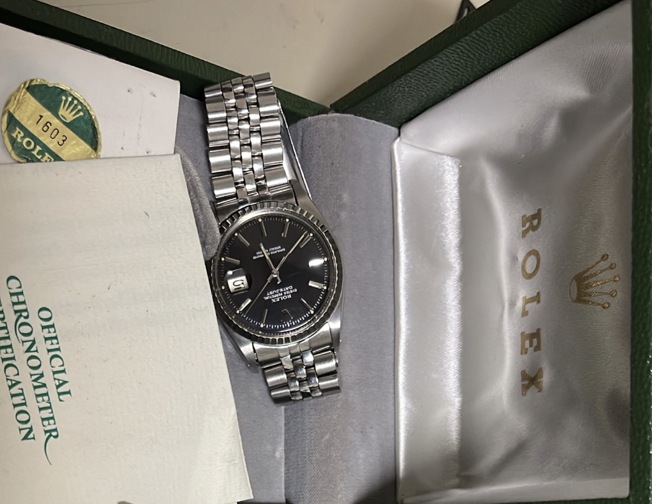 Haven't opened it yet but it is in perfect working order the only bug in the ointment is the gold plated bezel, the case itself is extremely good with zero brassing or wear other than normal use, so that challenge is where to find another matching bezel.
