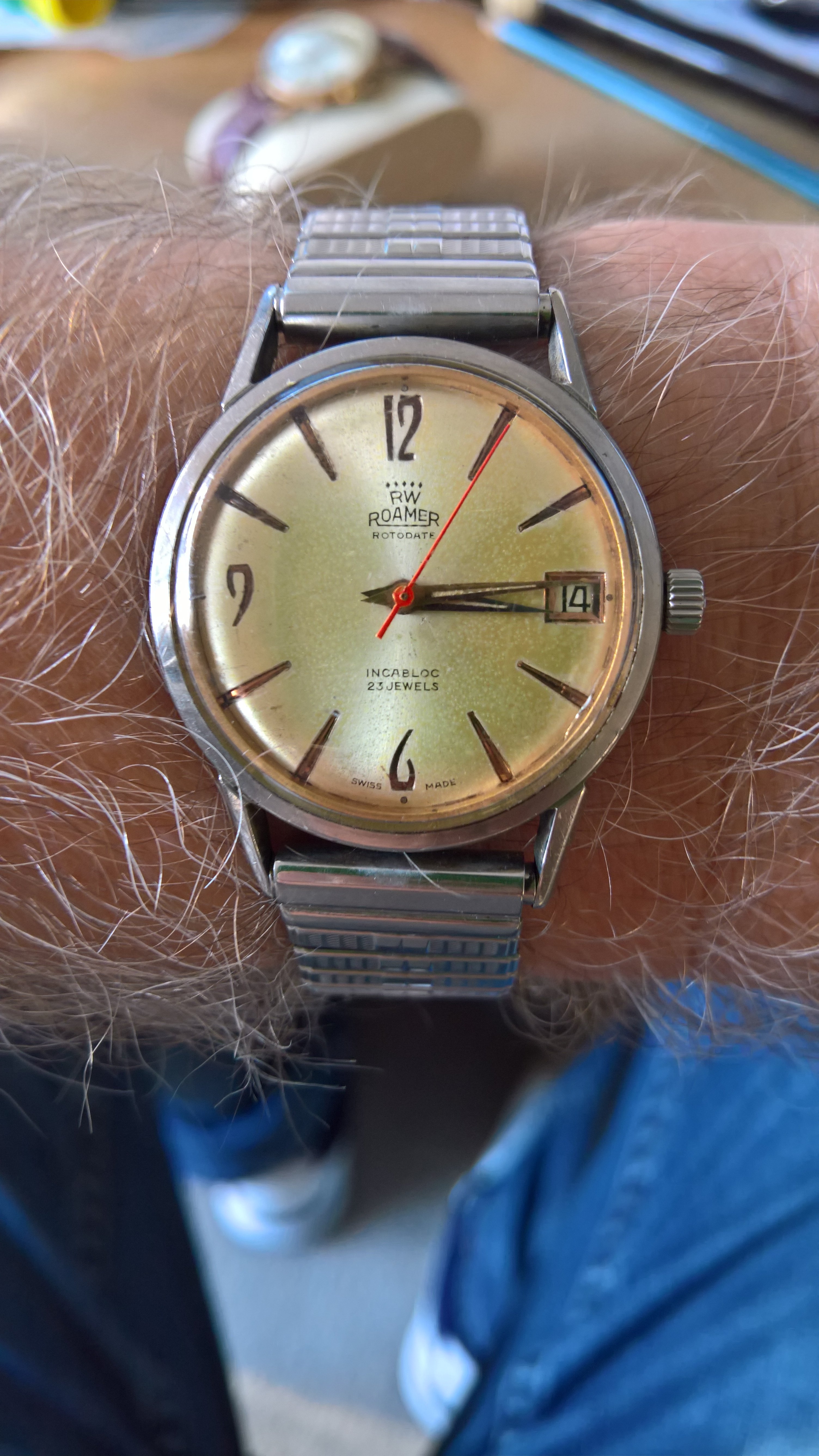 Was only buying it as the only other 23 Jewel Roamer Rotodate I had was in gold plate and this looked like it might have been stainless, really poor seller pics.