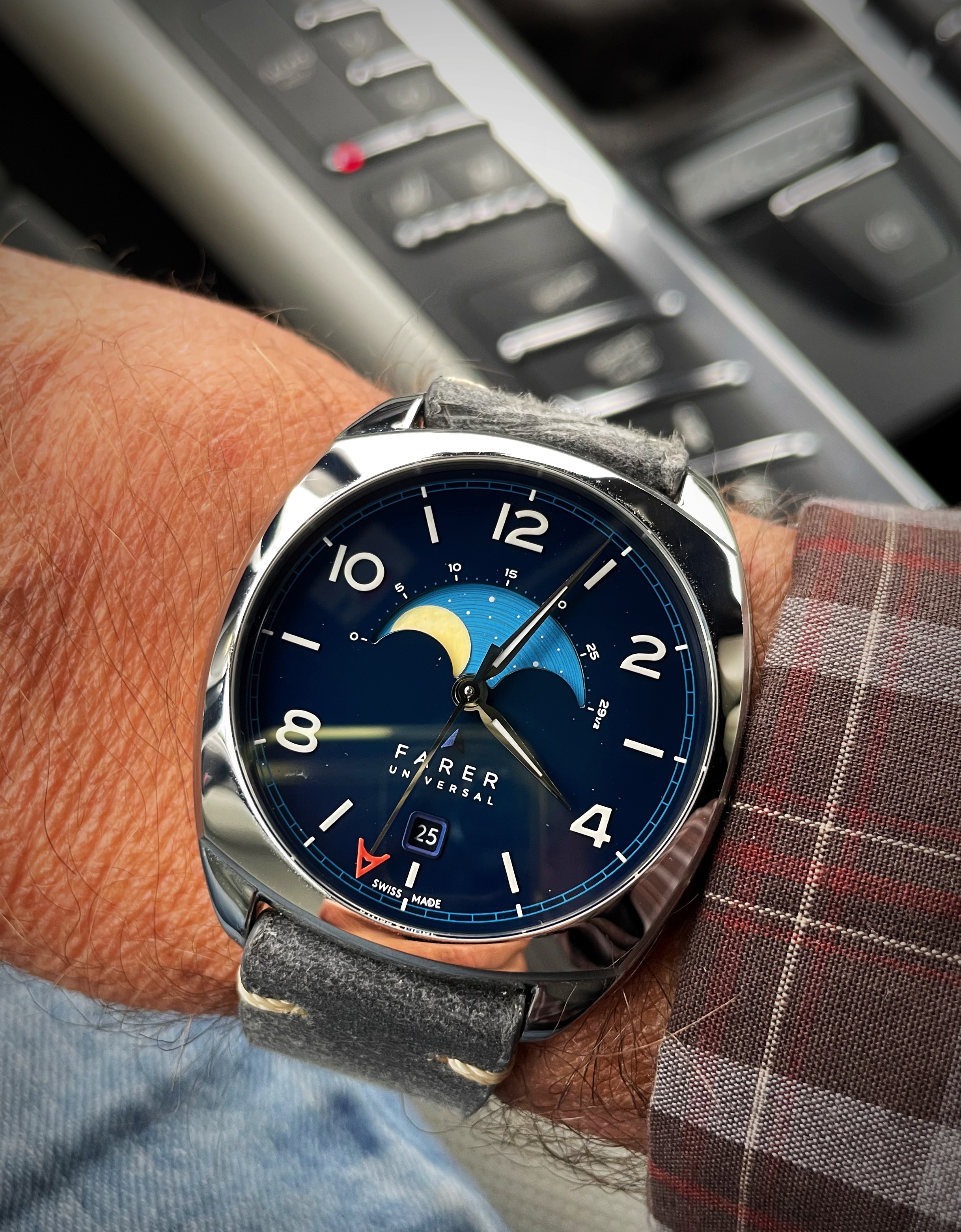 It’s a beautiful dial, and I love the luminescent yellow Moon.