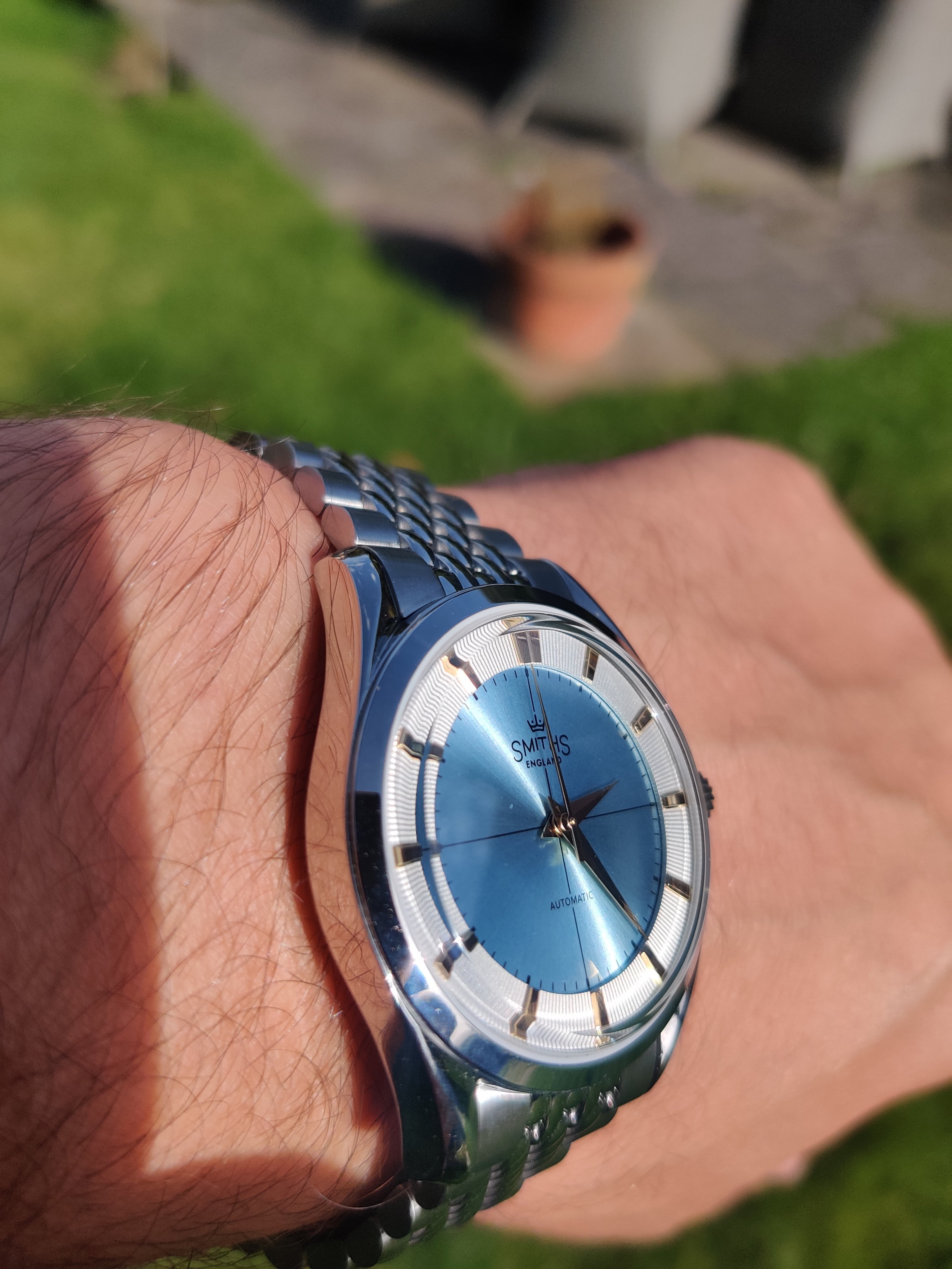 Was after a summer beater on a bracelet and when I saw this trans global from smiths I couldn't resist the chance to get an affordable polarouter that I could wear whilst cutting the grass in the rain! On the whole I like it but readability in low light is quite poor (for my aging eyes anyway). Part of me wishes I'd gone for the aventurine one instead. Still, for the money I really can't complain and it looks great in the sunlight.