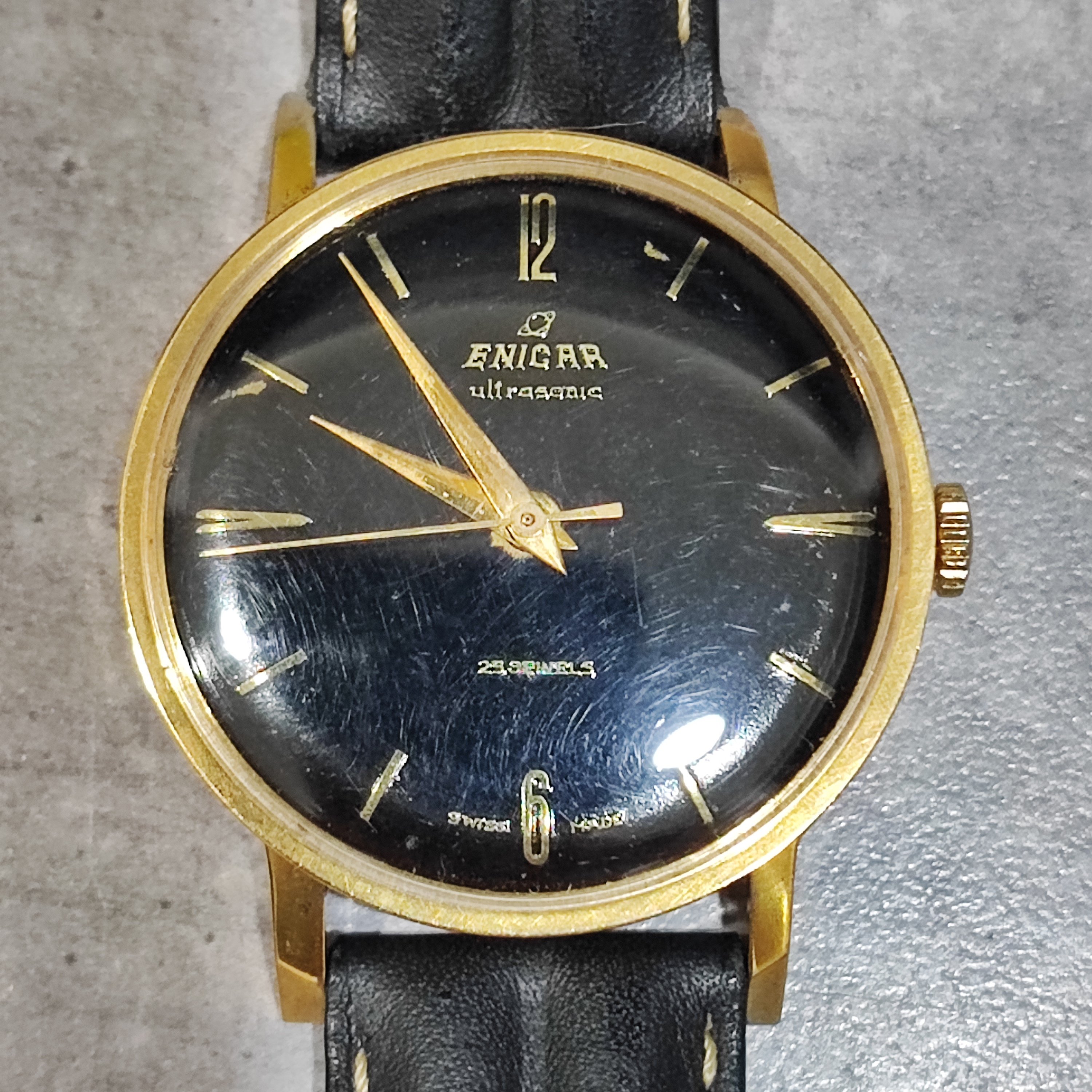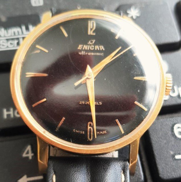This Enicar arrived in today also, near to perfect case, dial also like new but some small marks on the shiny black dial, no doubt from past services, also working perfectly, daily rate is less than 10 second per day.
