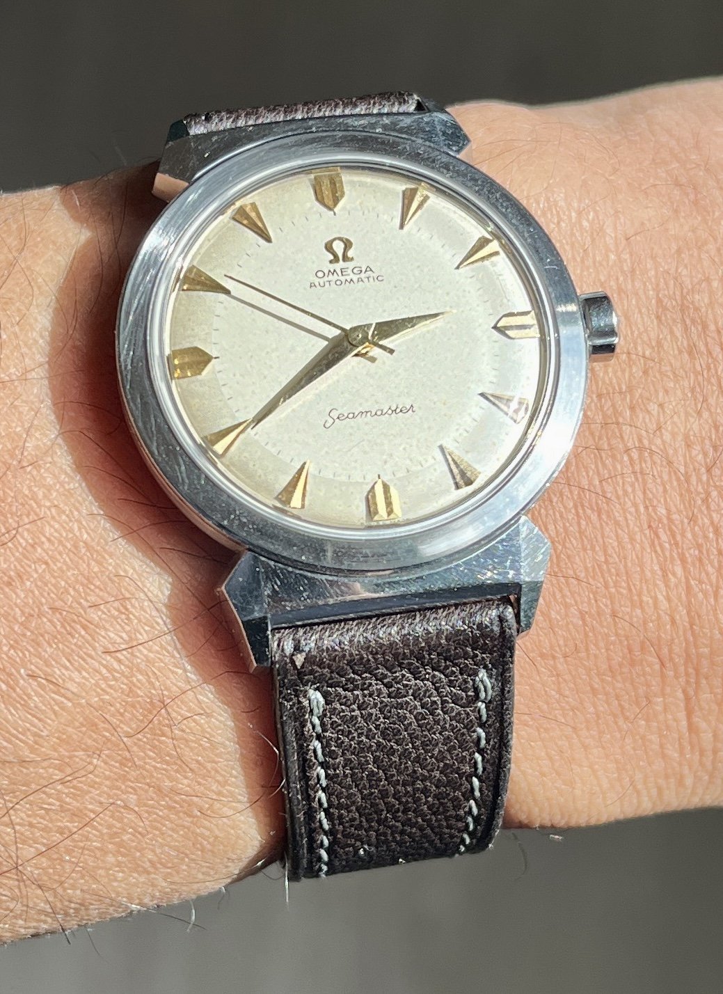 For my wrists these are a perfect size for a diver. I've always admired that vintage Submariner look, but I don't have any interest in paying that much for a watch. Plus 39mm is a bit big for my tastes. Early 90s boy-size tudors can be had for a reasonable amount, but at 36mm they are a bit small for a diver IMHO. These Tags are just perfect, but I am not quartz fan. When I found out you can do a movement swap, I was sold. This one has been upgraded with a sapphire crystal and pressure tested. It will be my sort of non-vintage, vintage watch.