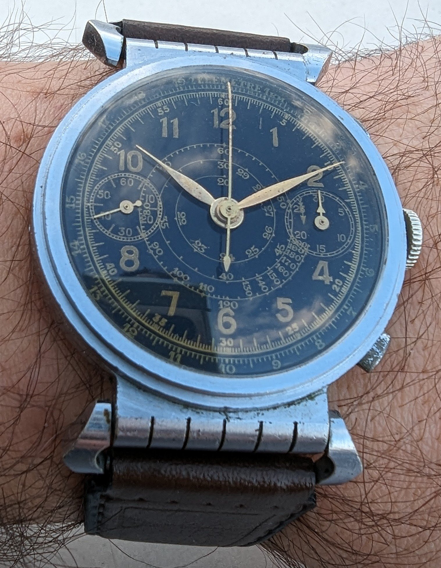 Local find. 1972 Willard. Underneath that beat up crystal appears to be an amazing dial. Running -2s/day @ an amplitude of 172潞 and 0.1ms beat error with no service history. Not bad for $800!