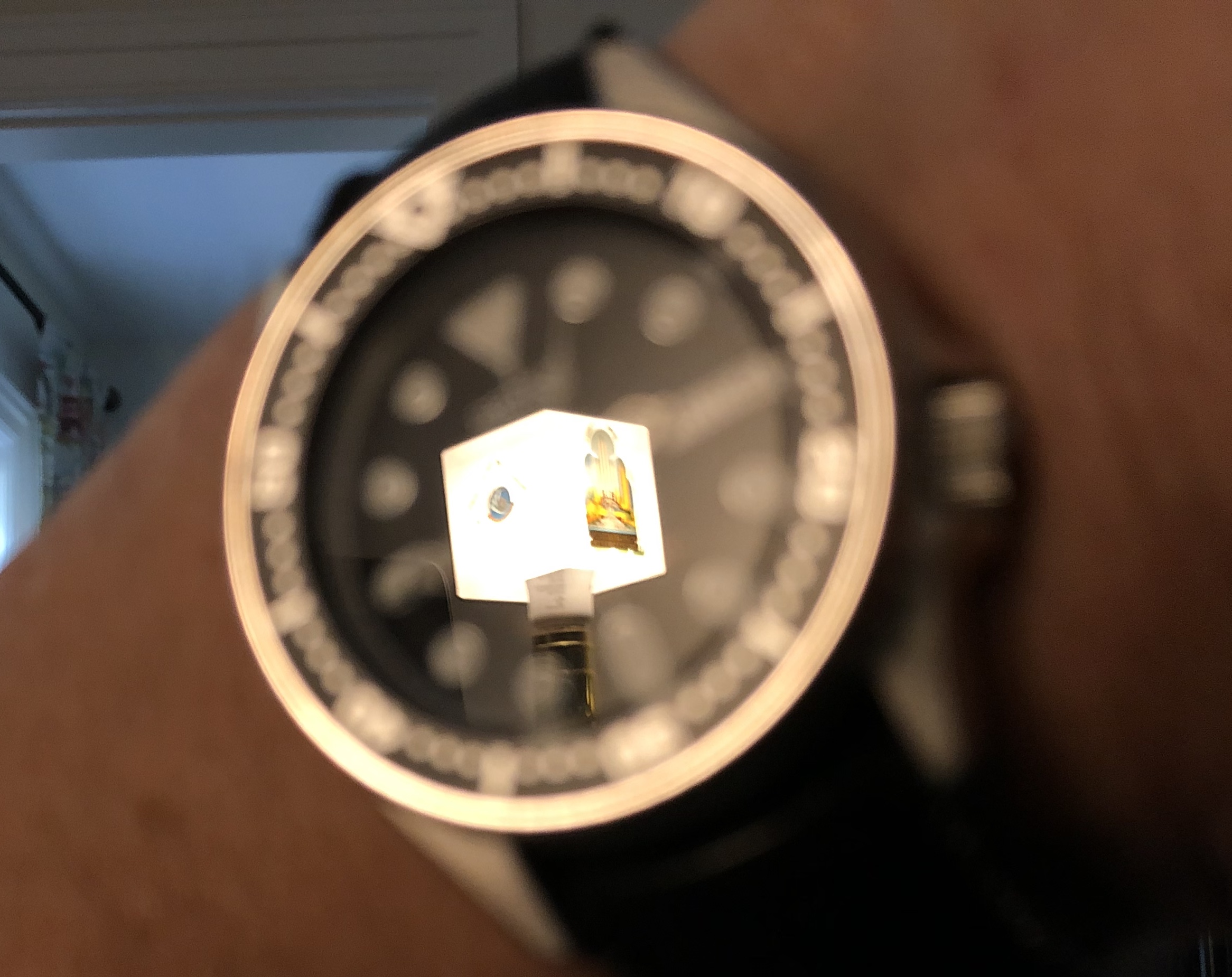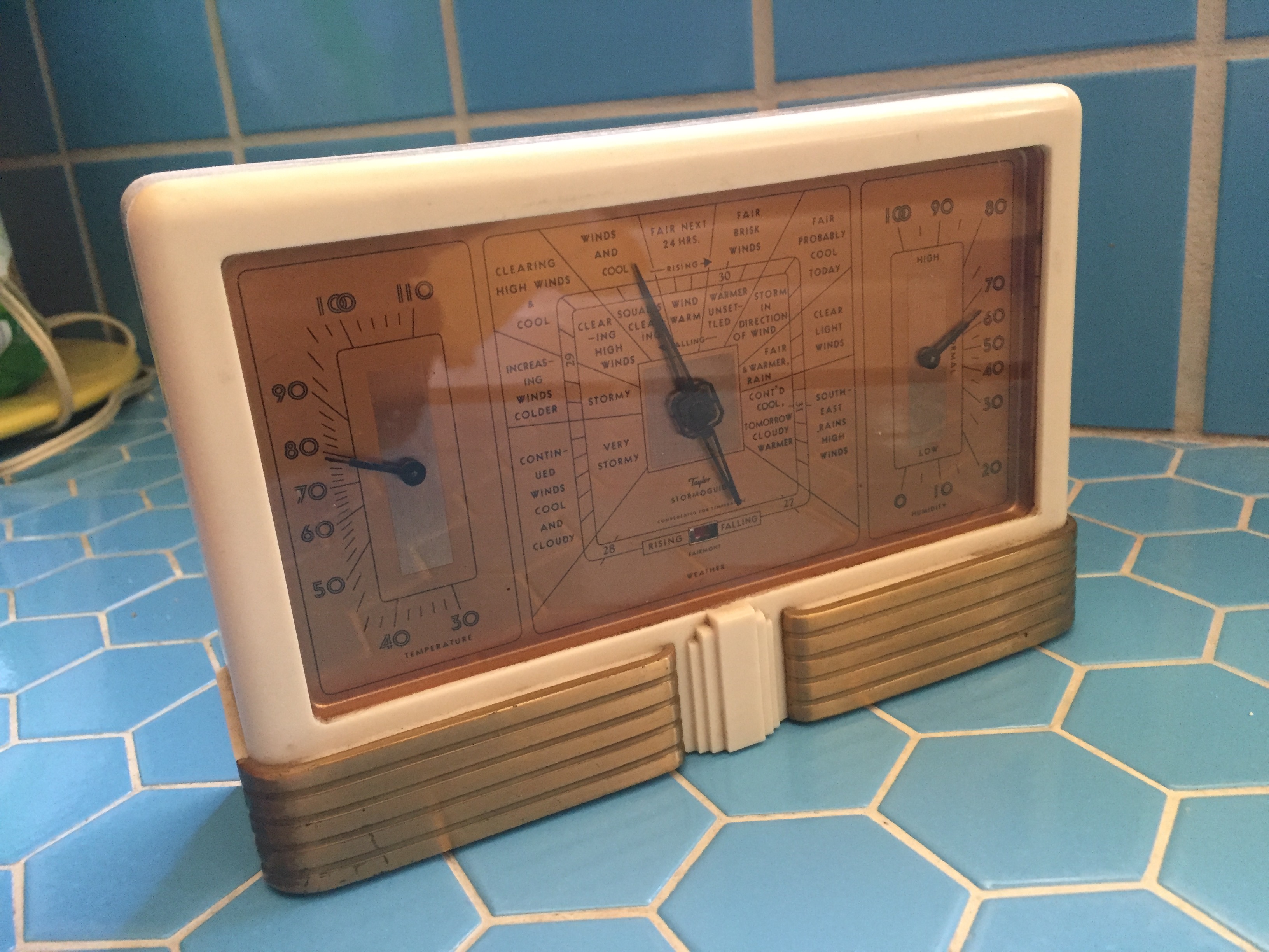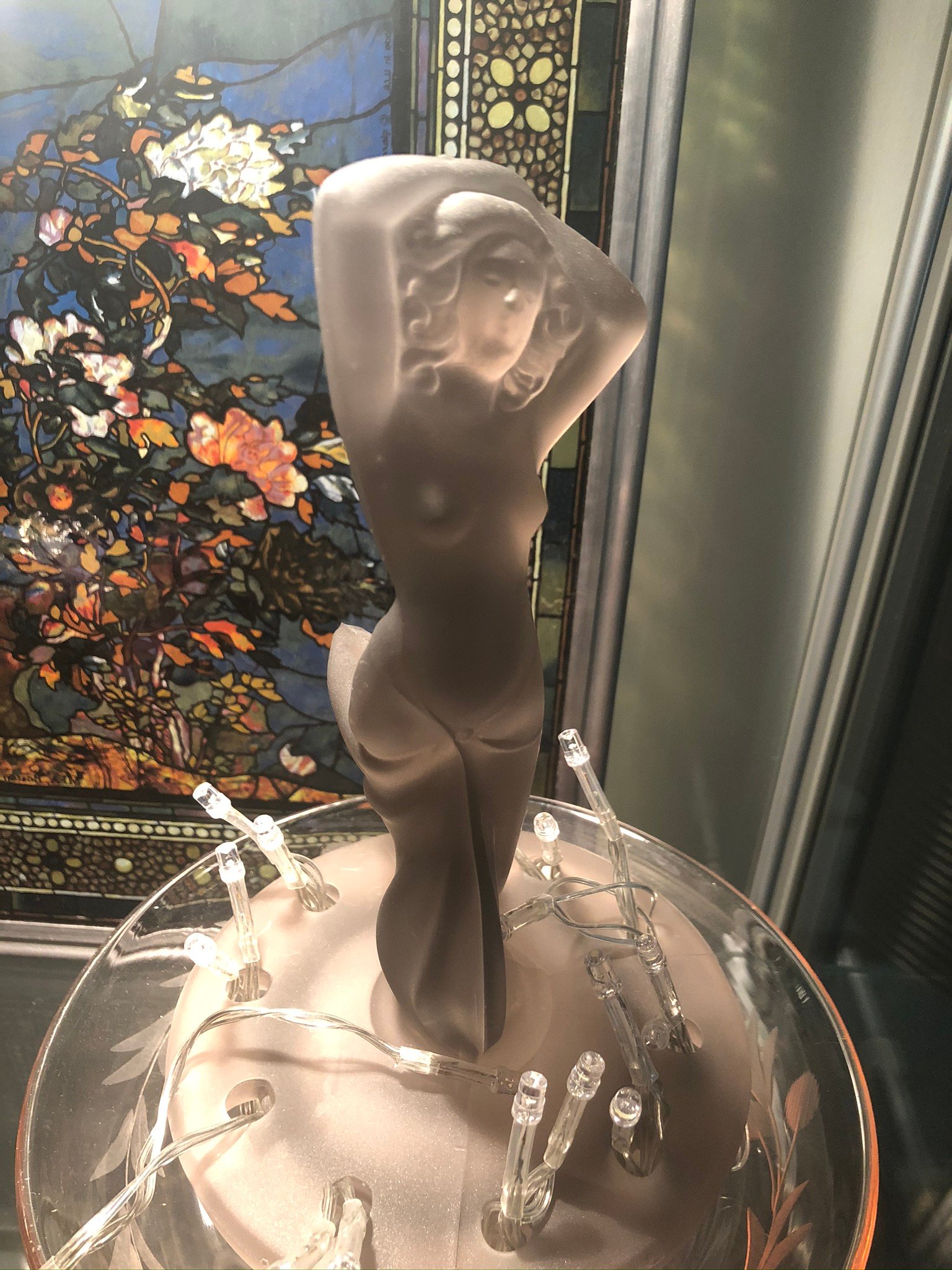 Chicago World’s Fair lamp reflected in my Seiko. The flower frog may be older than the Art Deco period. The mug qualifies, I believe. Stove clock just looked like it belonged in the photo, so I left it.