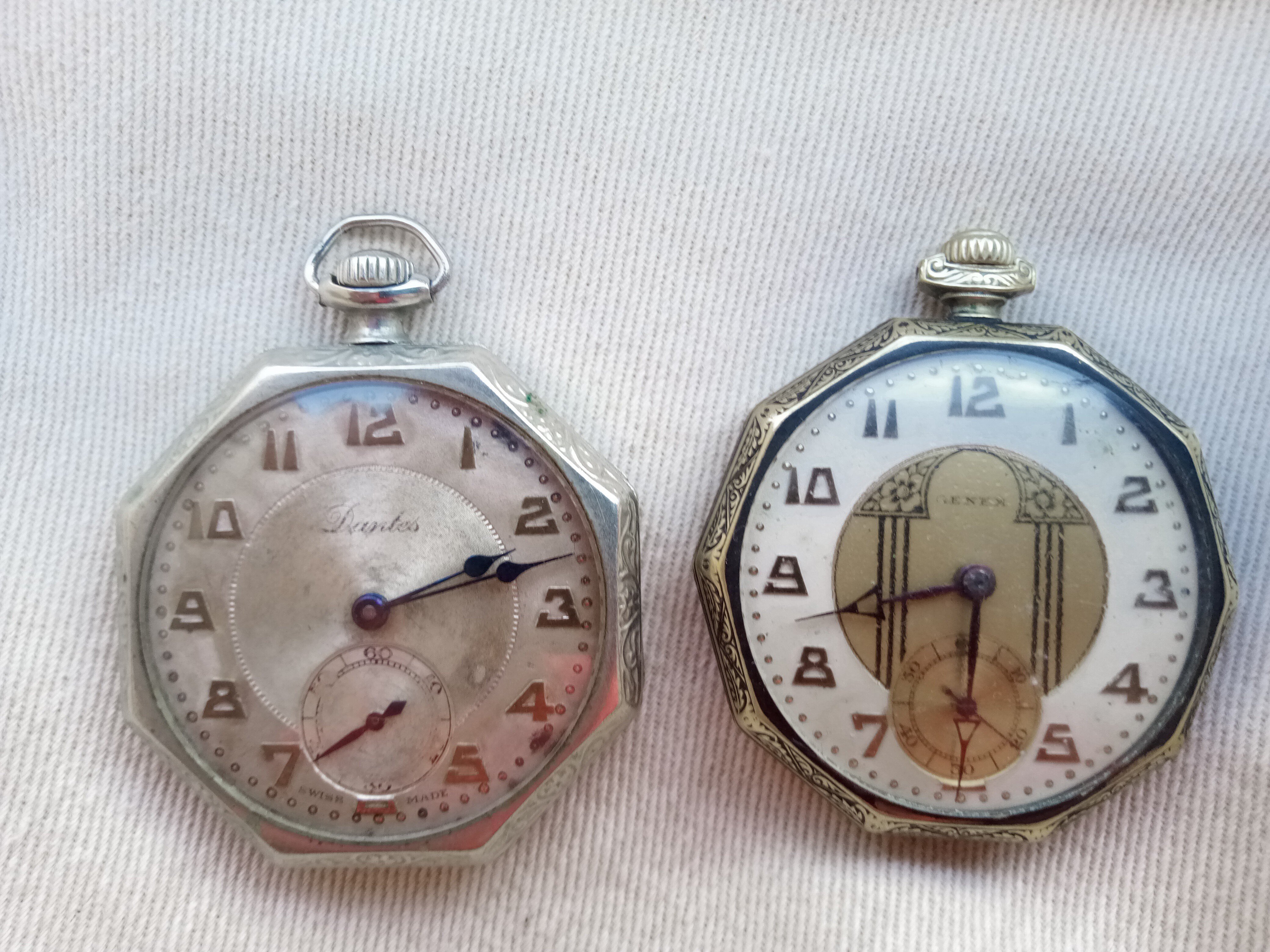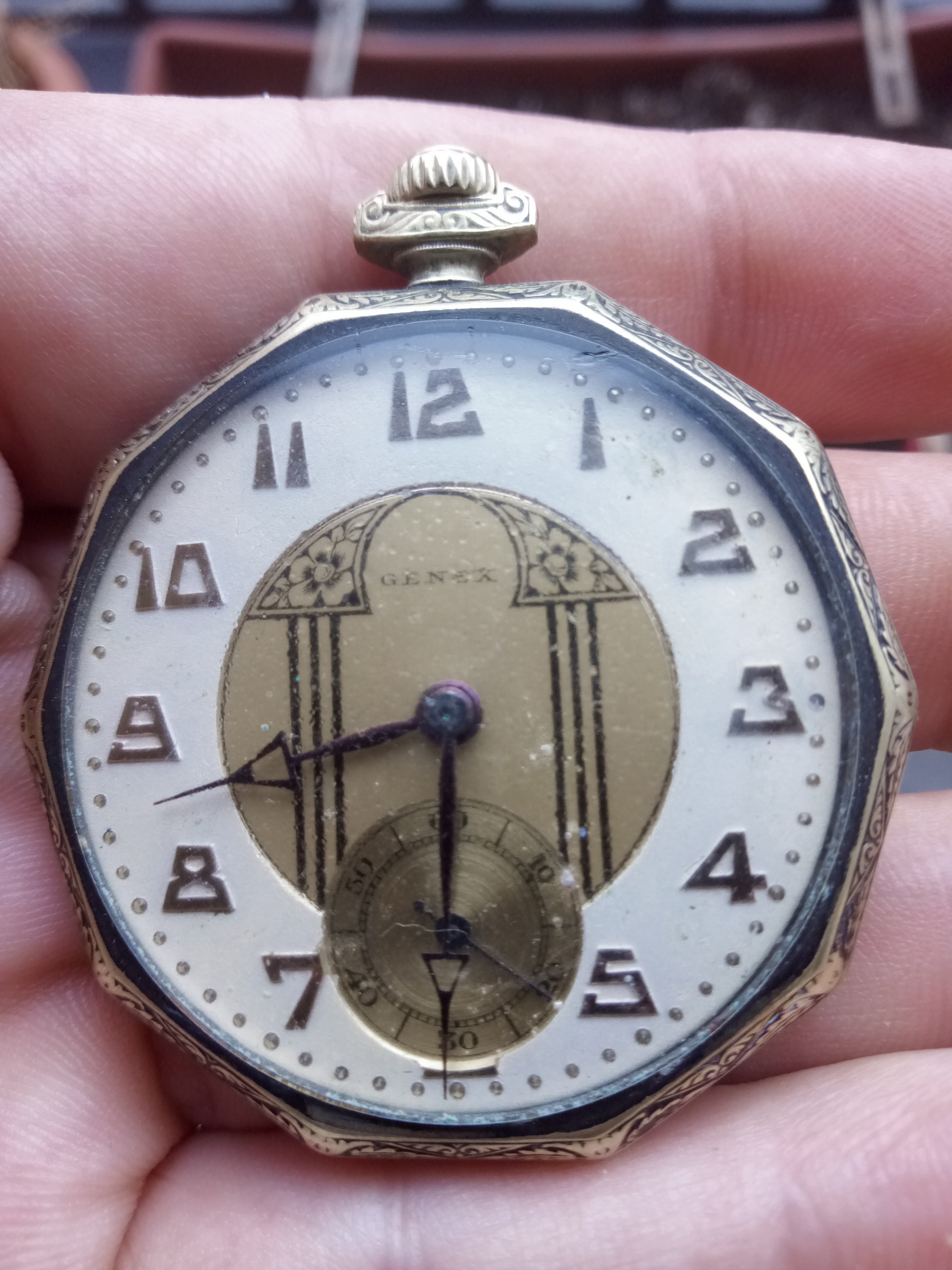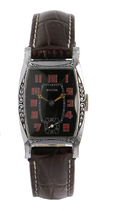 Here is a Bulova Templan from 1929/1930. Not for the first time, I have to scratch my head, because it seems to combine some Art Deco-ness (dial, case shape) with callbacks to Art Nouveau (hands, scrollwork on case). I suppose a watch in this bracket (retailed for about $37.50 at the time) was intended as a commercial proposition rather than an aesthetic statement. I'm not sure whether to celebrate or deplore the red paint on the numerals, which were originally radium - quite effective, I'd say. Any views?