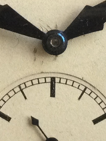 ··His Holiness Puer SurdusI suspect that both minute hands are polished at the center and one example was photographed at an angle that is not reflecting much light back.