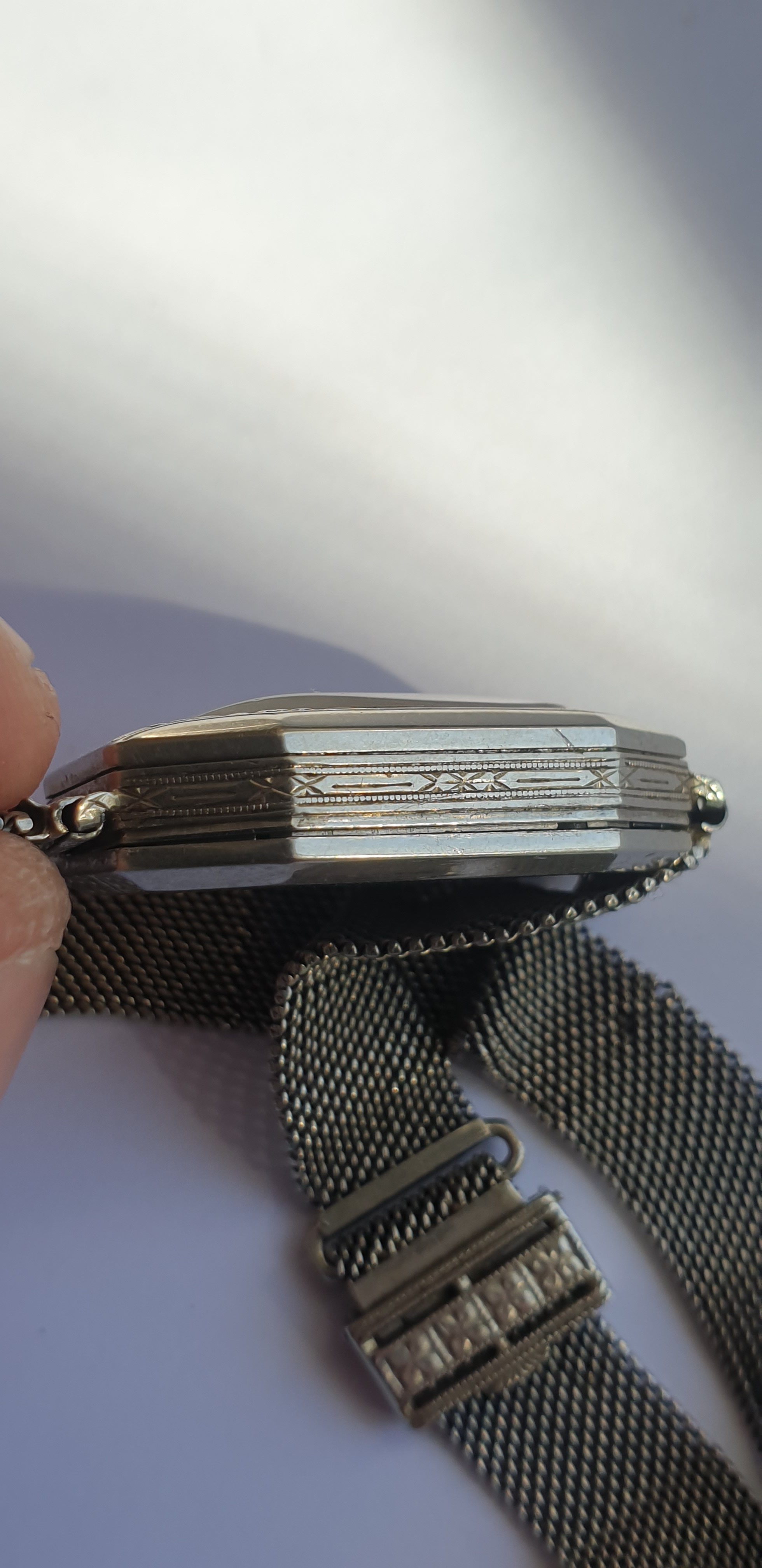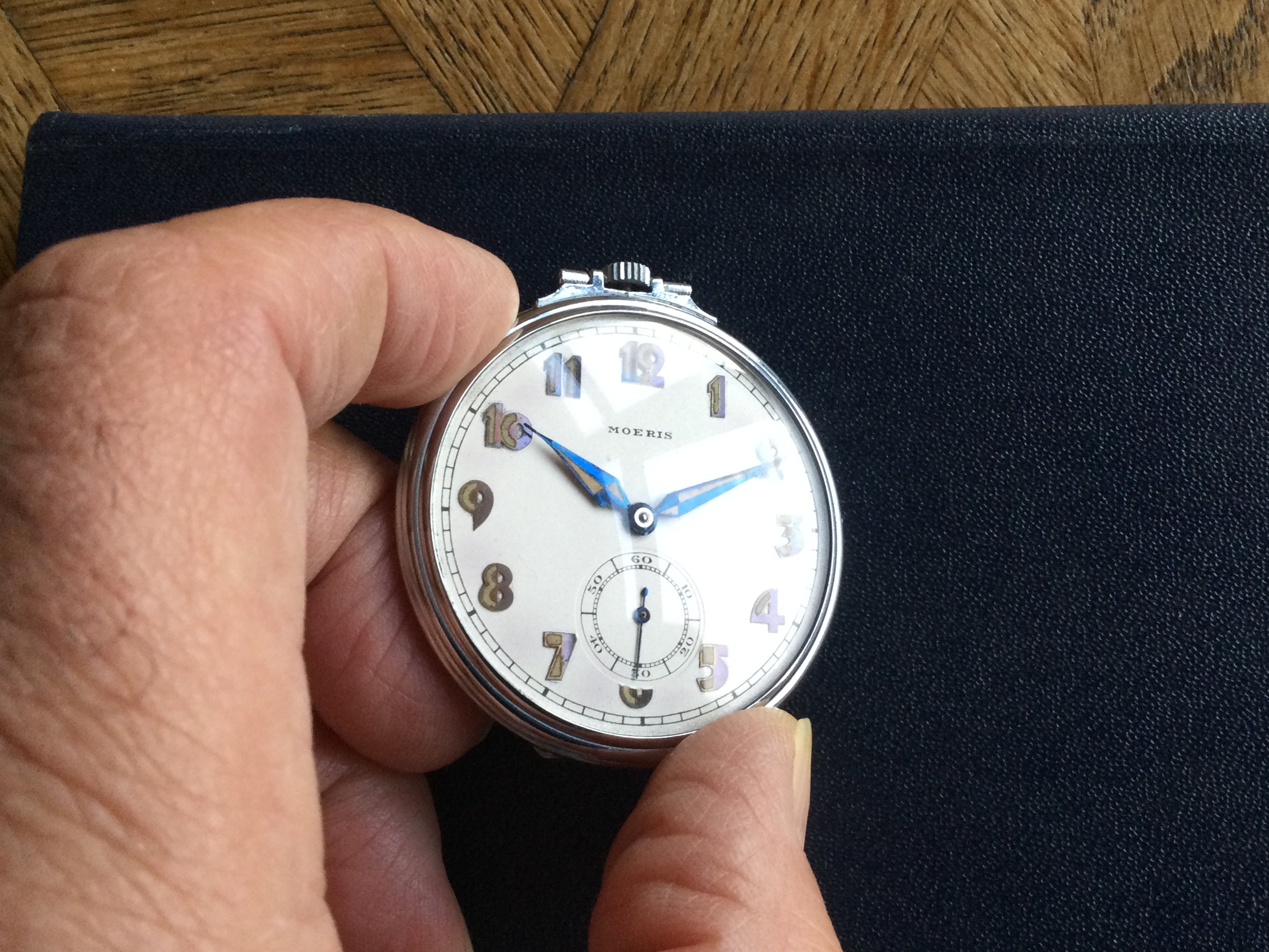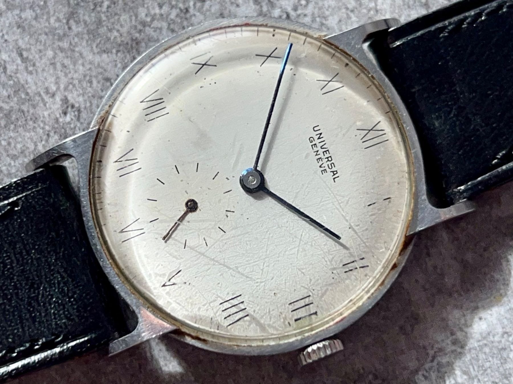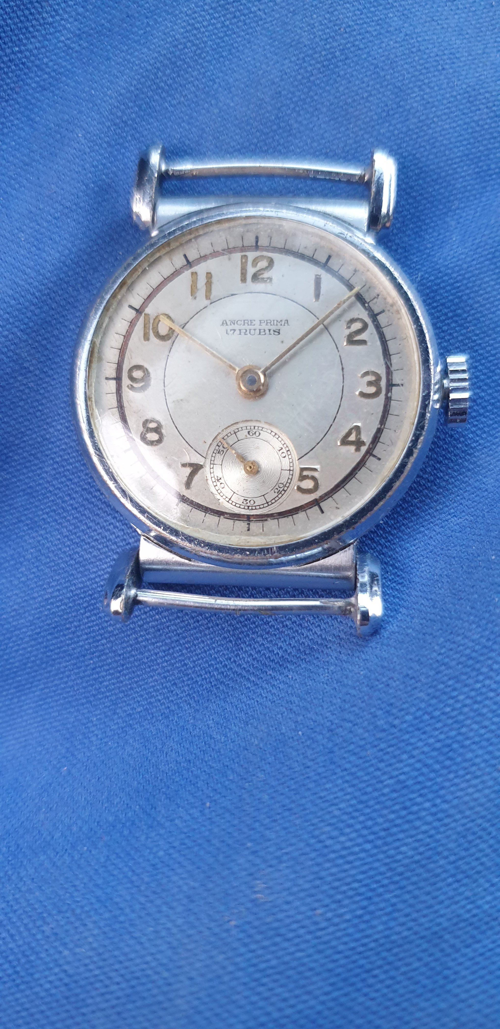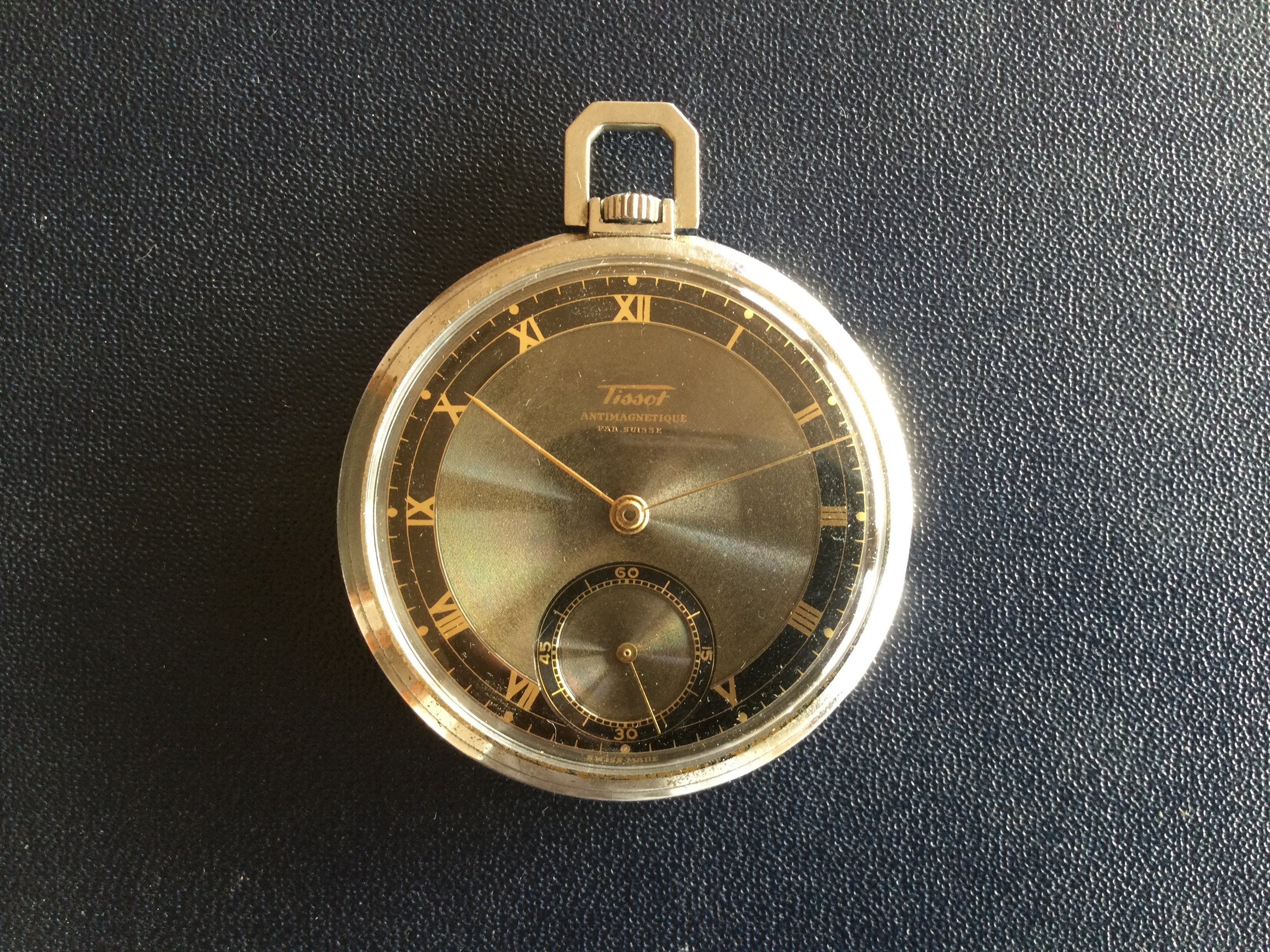 ·1940s Reconvilier with silver mirrored foil numbers in large art deco typeface. Very interesting silvered inner pattern ring. Blued steel hands. @Syrte am I okay with this one? 😀