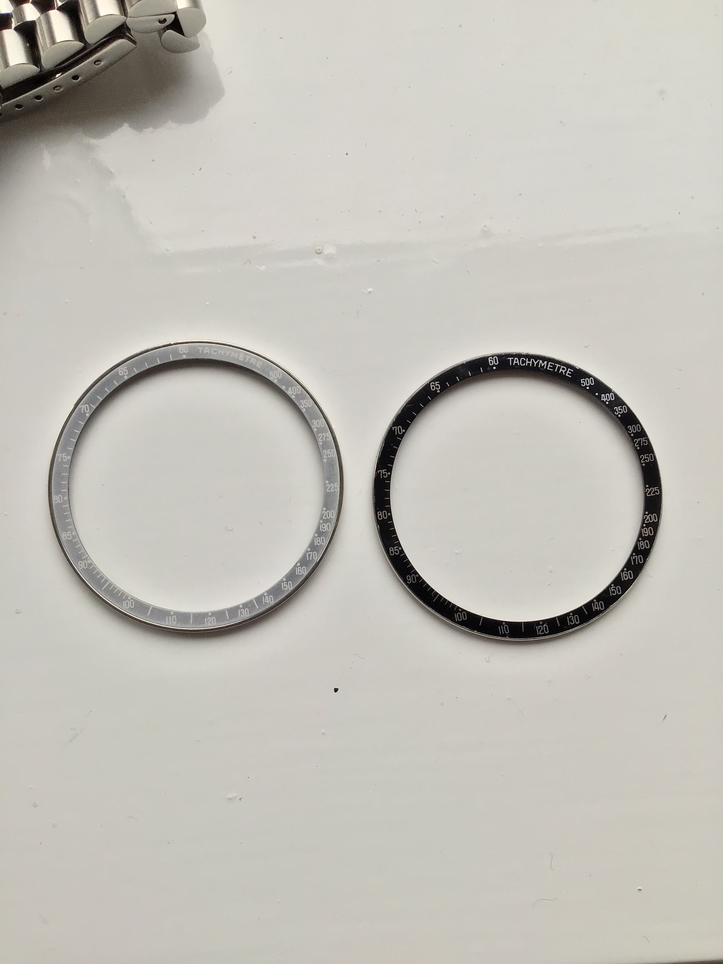 ·For sale is a modern, service replacement bezel which I faded myself with bleach. I did this a number of years ago and enjoyed the look but have now purchased a more Period appropriate bezel for my Speedmaster.