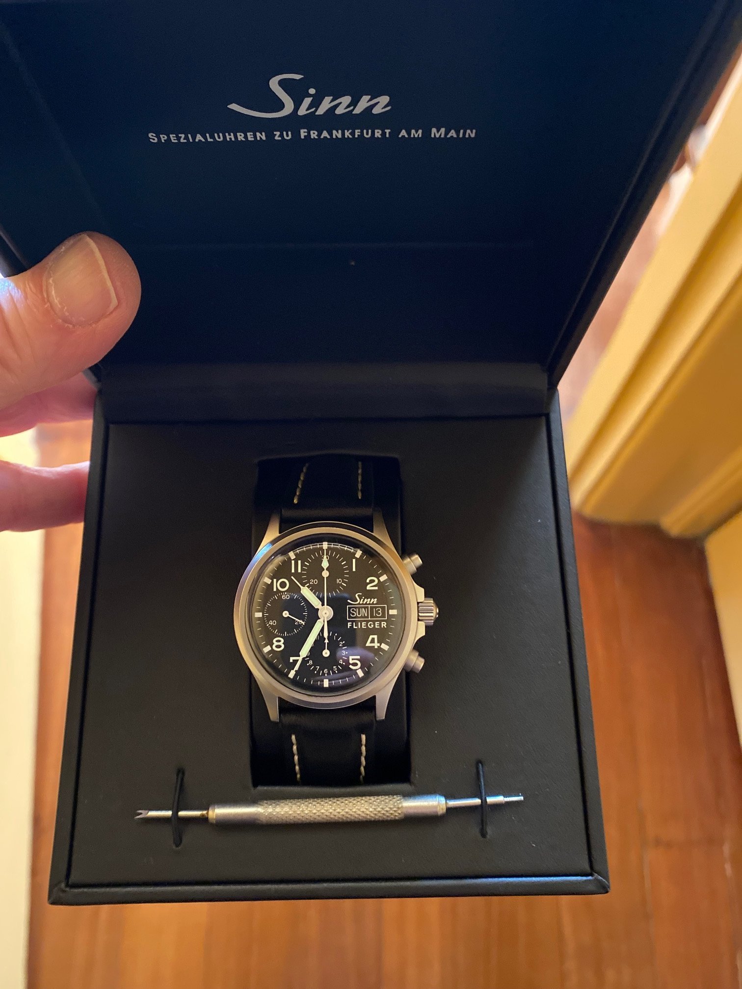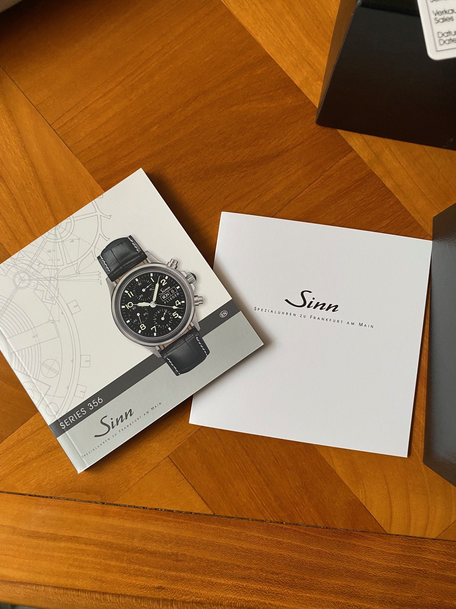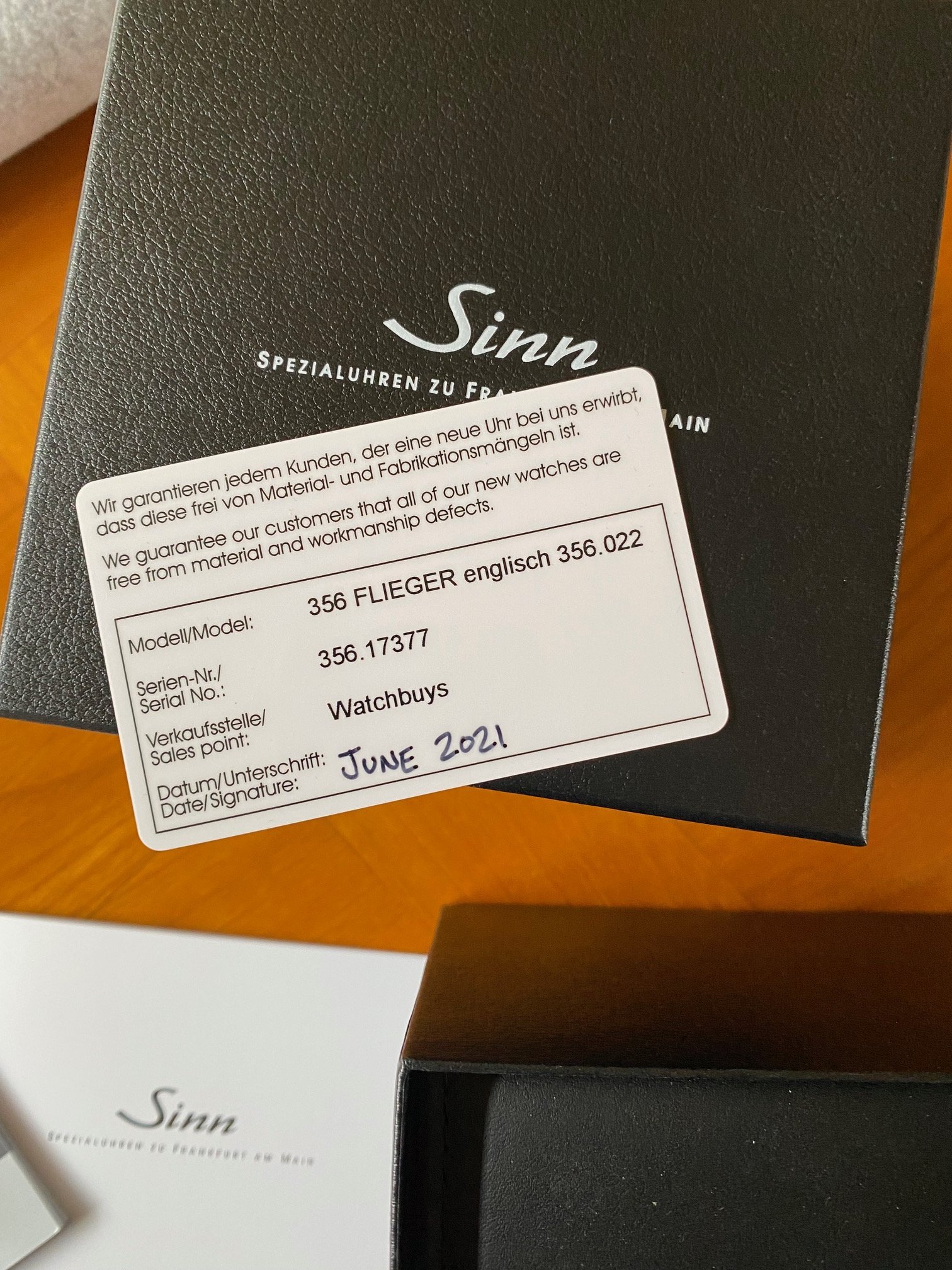I have for sale a near new and little worn Sinn356 and as such is virtually unmarked except for a small scratch on the plexi which I have circled in one of the attached photos. All papers and boxes included and will be shipped on the OEM calf strap.