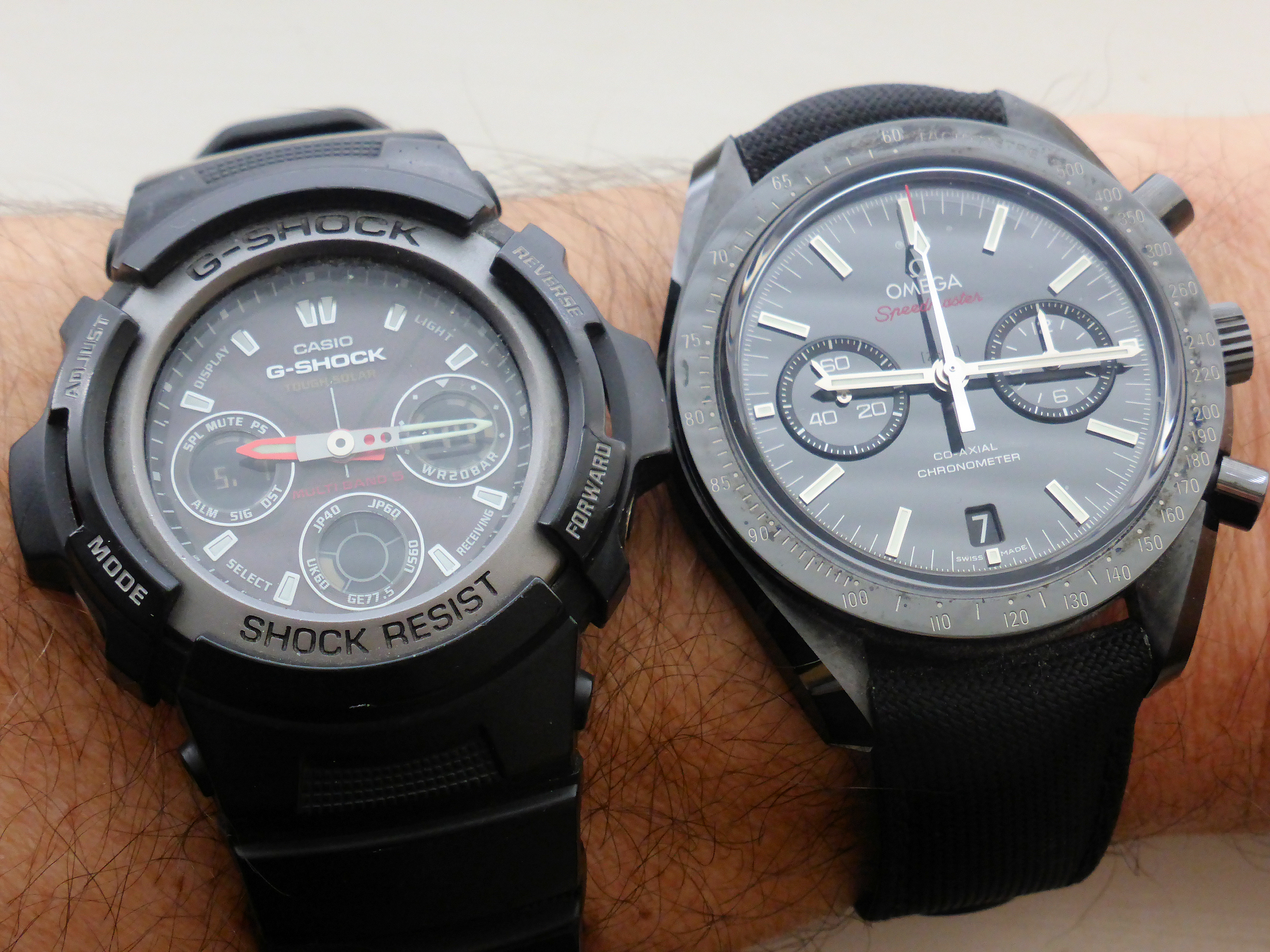 I’d take the G-Shock. No light giving my position away unless I ask for it, good enough water resistance, and the battery will last long enough that either I’ll be dead or there will be Rolexes and Omegas available all over the place, assuming that living in a post apocalyptic world anyone cares about anything other than the moon phase and the season.