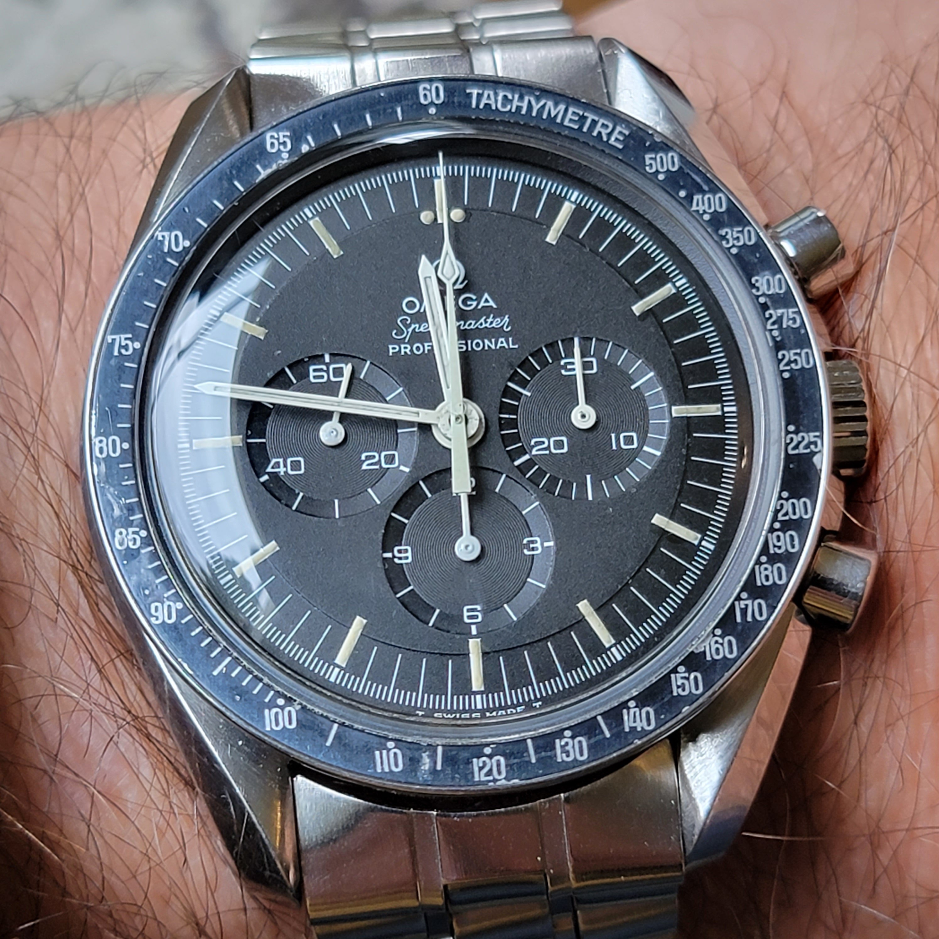 This just arrived from Tokyo. A polished case, but not badly. Nice faded bezel, clean dial, original 1116 bracelet. Hard to capture in photos, as it changes based on the angle (as we've all experienced.)