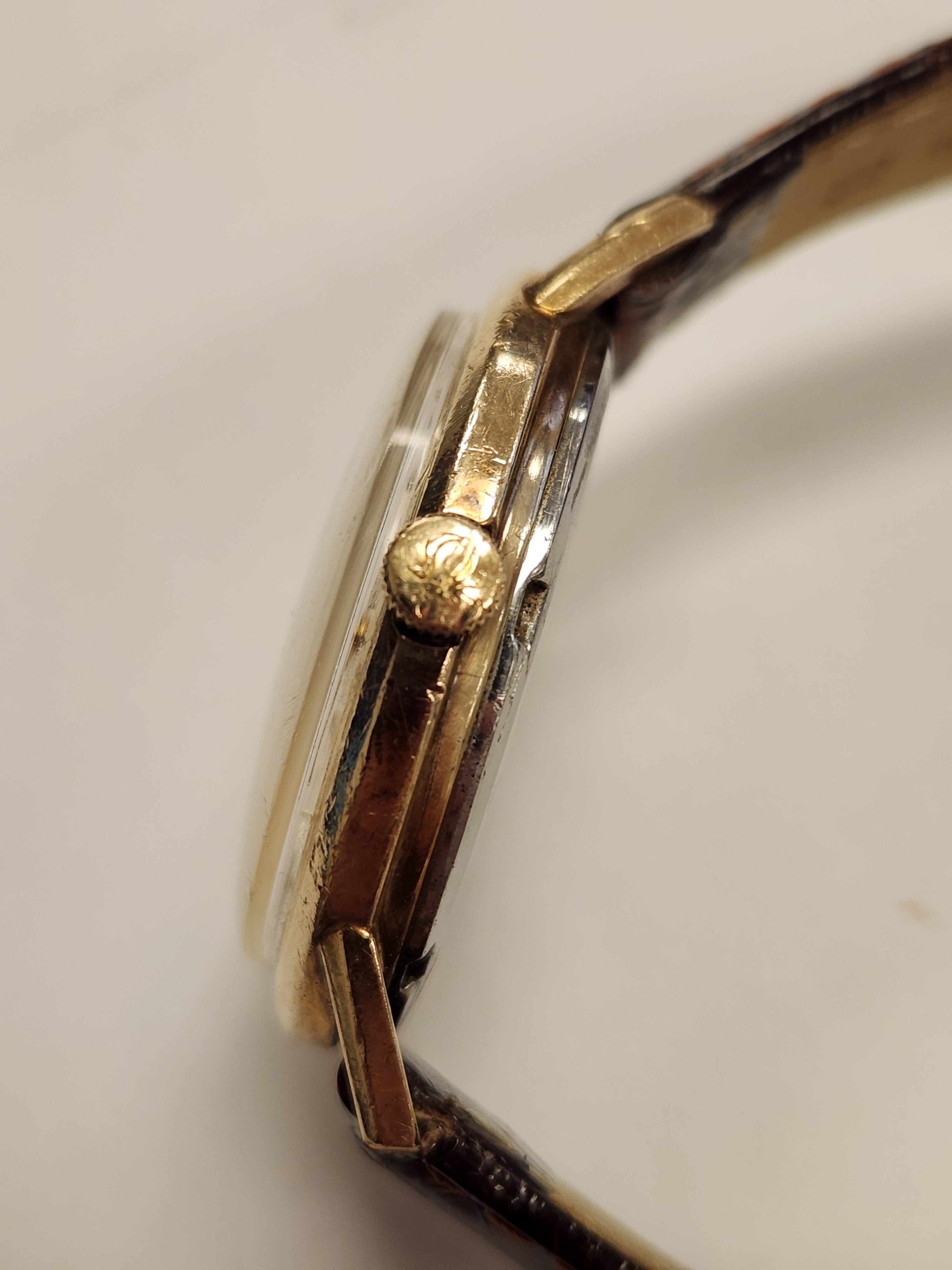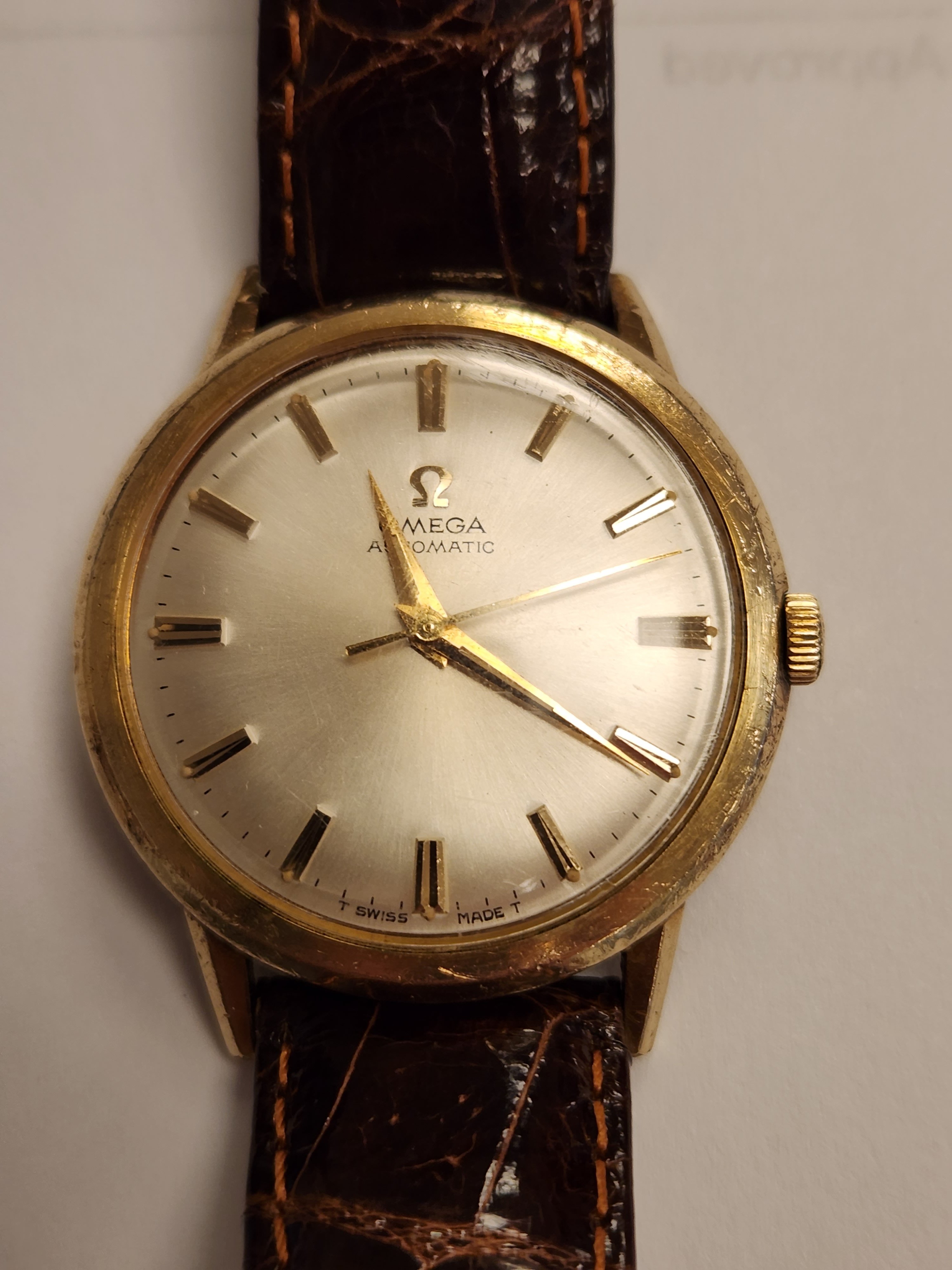 It's about 34 to 35 mm, an unsigned Omega dress watch, probably 1950s or early 1960s. If I recall correctly, there were some Seamasters that weren't necessarily labeled as such on the dial. But this may not be one, as the caseback doesn't indicate it either.