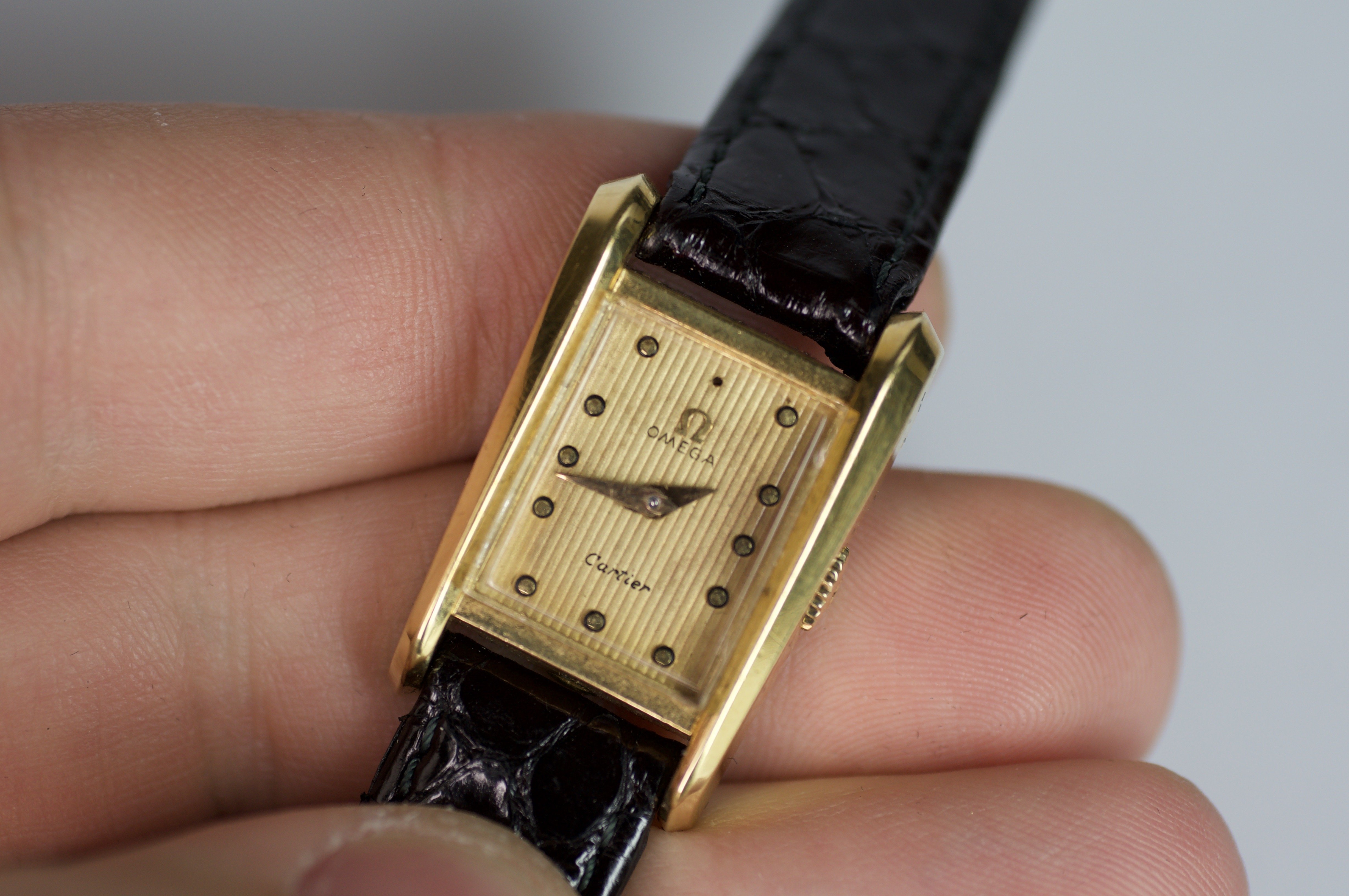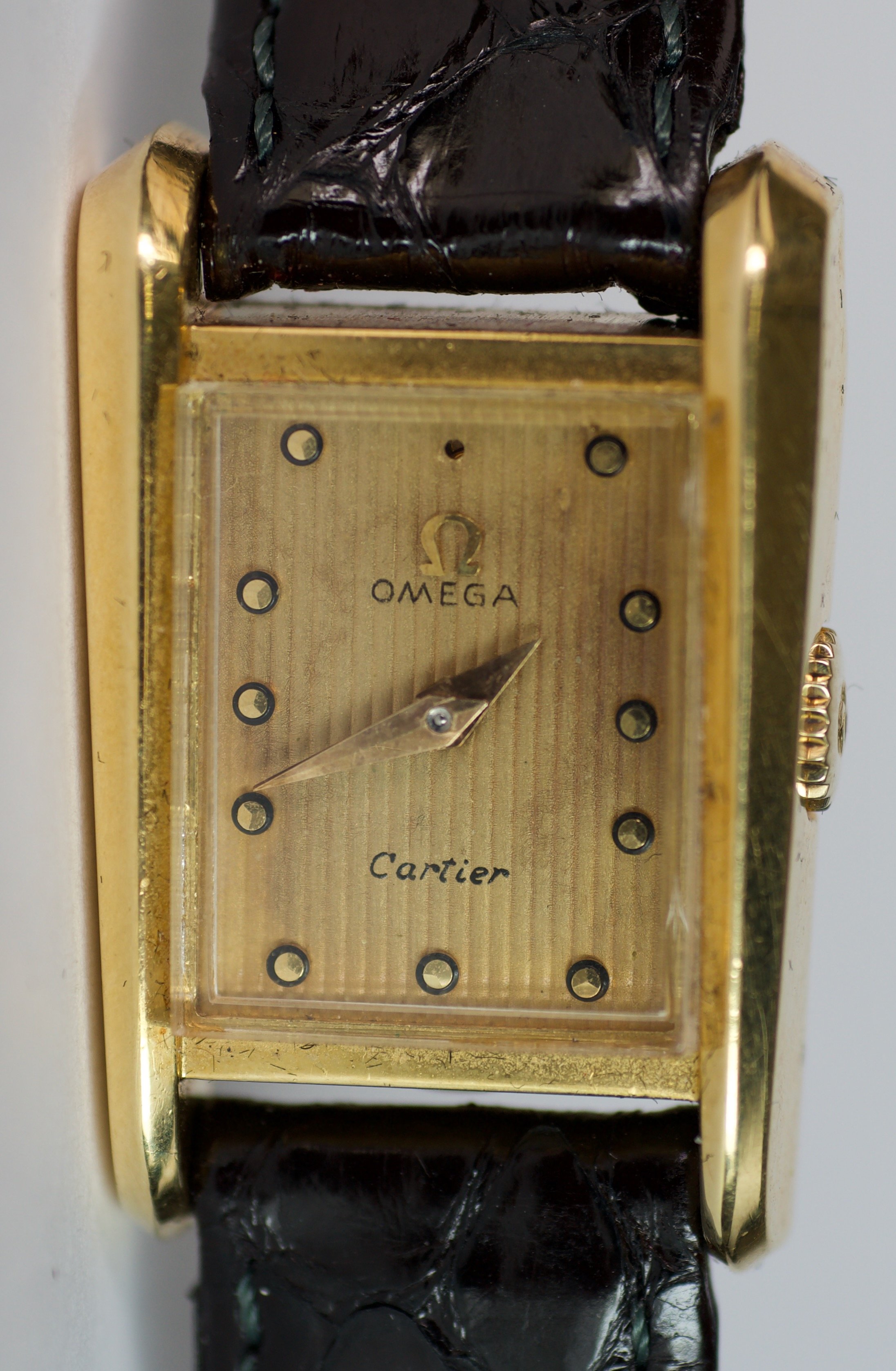 I recently bought a ladies Omega in solid 18K gold with "Cartier" on the dial and an asymmetrical case. It is about 19mm wide at the top, and tapers to 16mm. I tried looking this model up on the internet but couldn't find a reference. Can anybody help me?