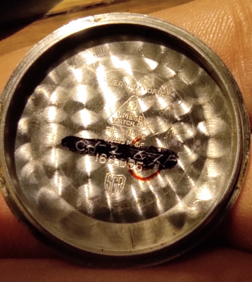 - it is for sure a french cased 18k omega : old omega logo on inside of the case, case maker’s logo : probably PGF, seller confirms that the watch has an Eagle hallmark on the exterior of the case (and I think I can see it on the 3rd picture), on the exterior of the case there is a reference : 645307 (but I know that this will likely not help as french case references are something appart and don’t match with Swiss cases references).