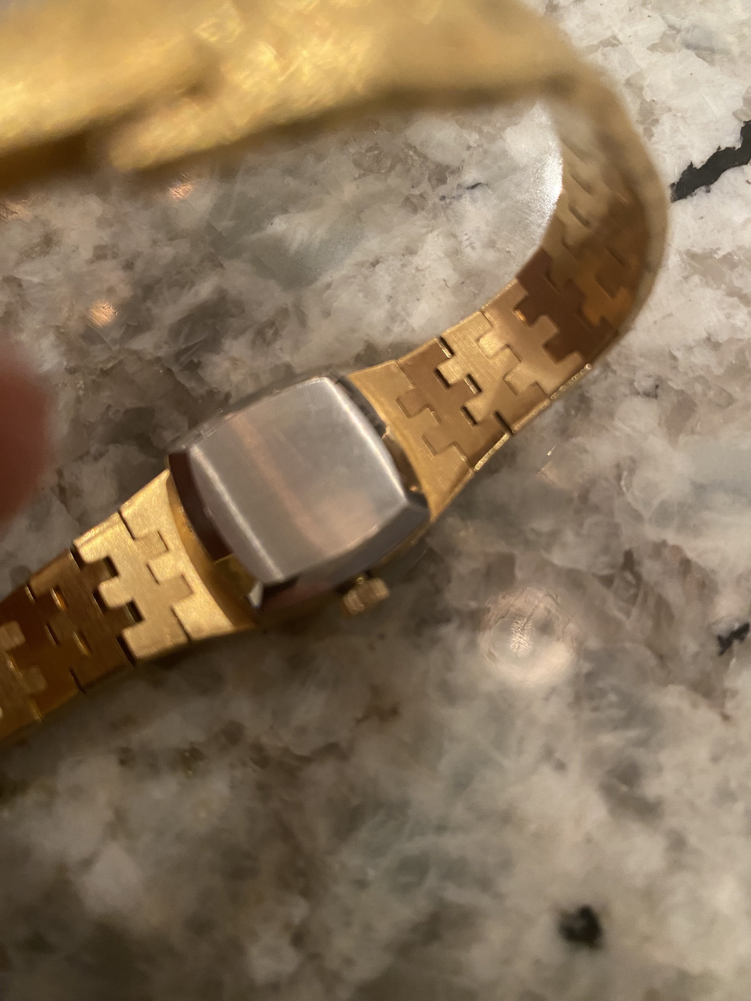 Certainly golden in color. Could be plated, filled or solid.