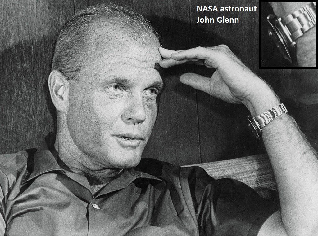 Note in this JUne 1967 photo, Lovell wore his personal Rolex GMT-master 1675 aviator wrist watch on an Oyster bracelet, standing next to US President Lyndon B. Johnson.