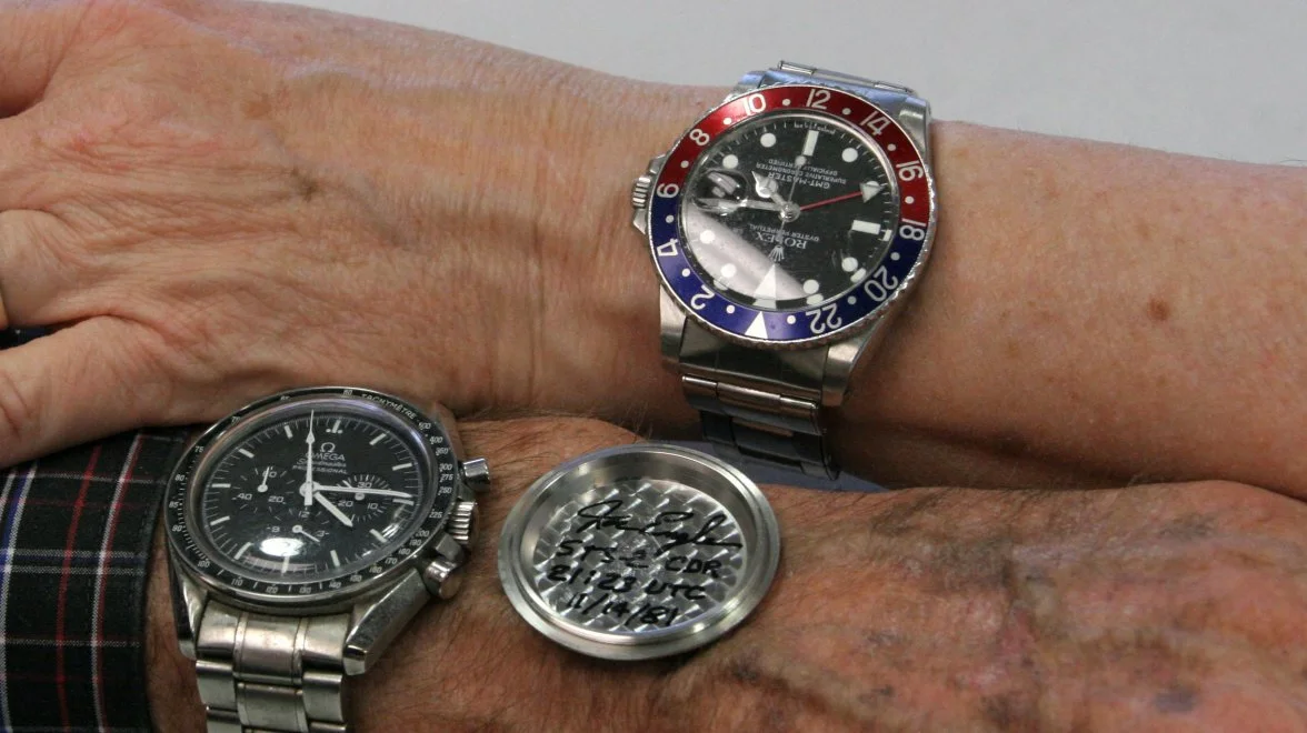 In February 1971, Edgar Mitchell became the first astronaut to wear extra wrist watches on the Moon, wearing one for each of his two daughters. His beloved